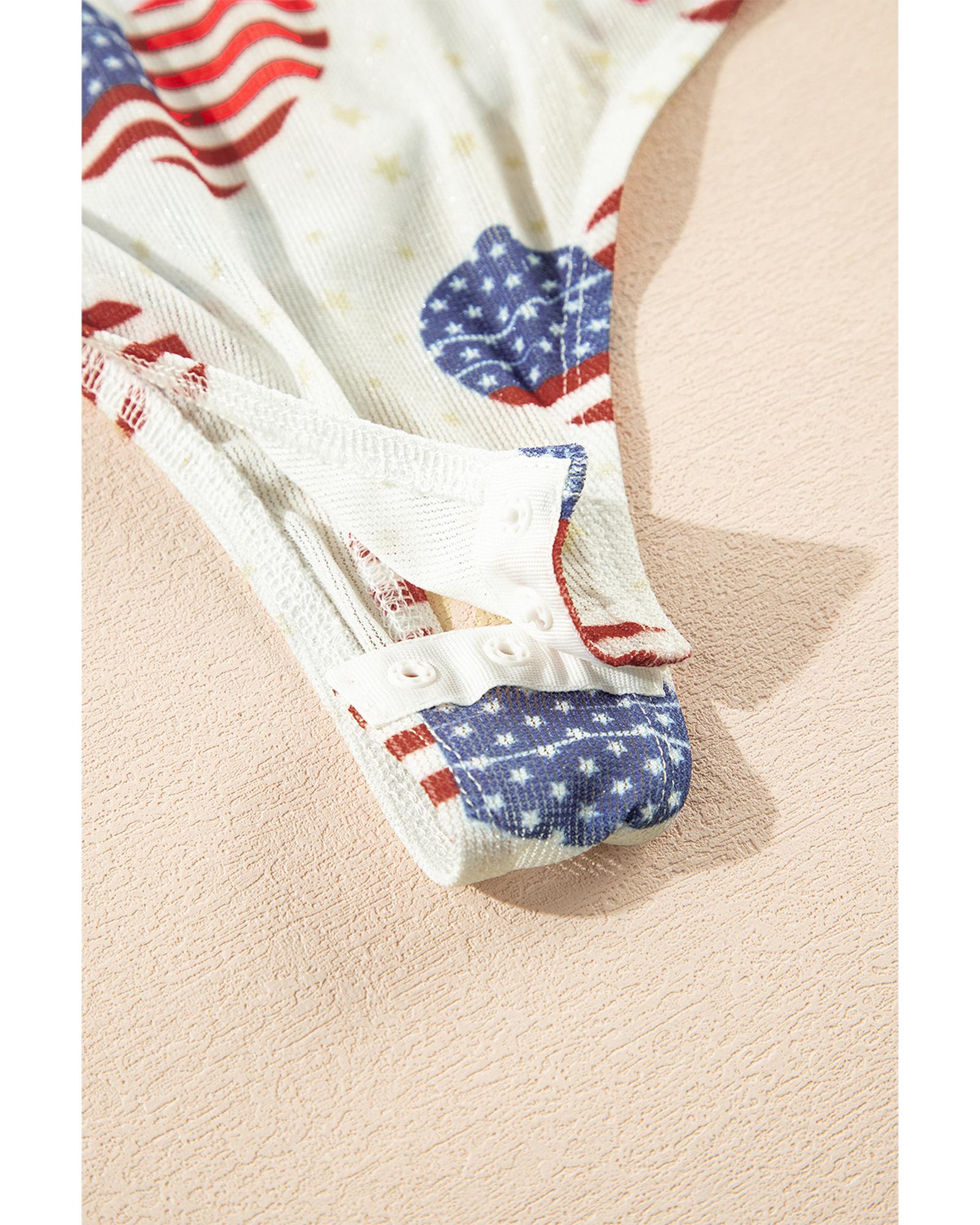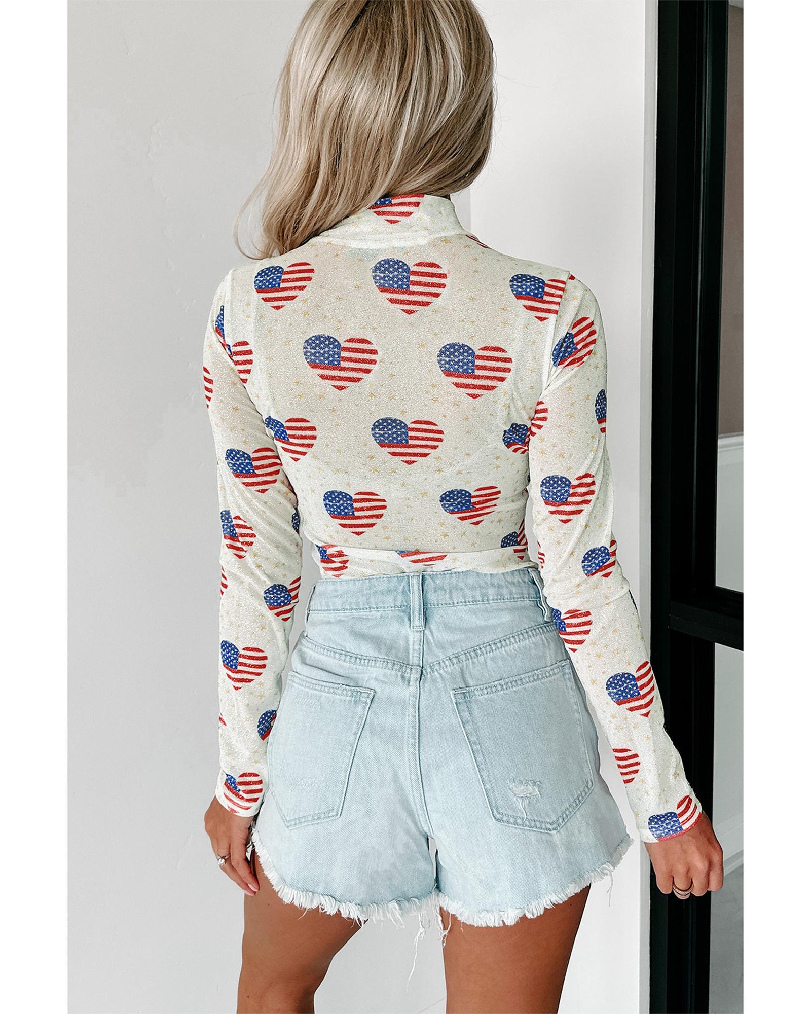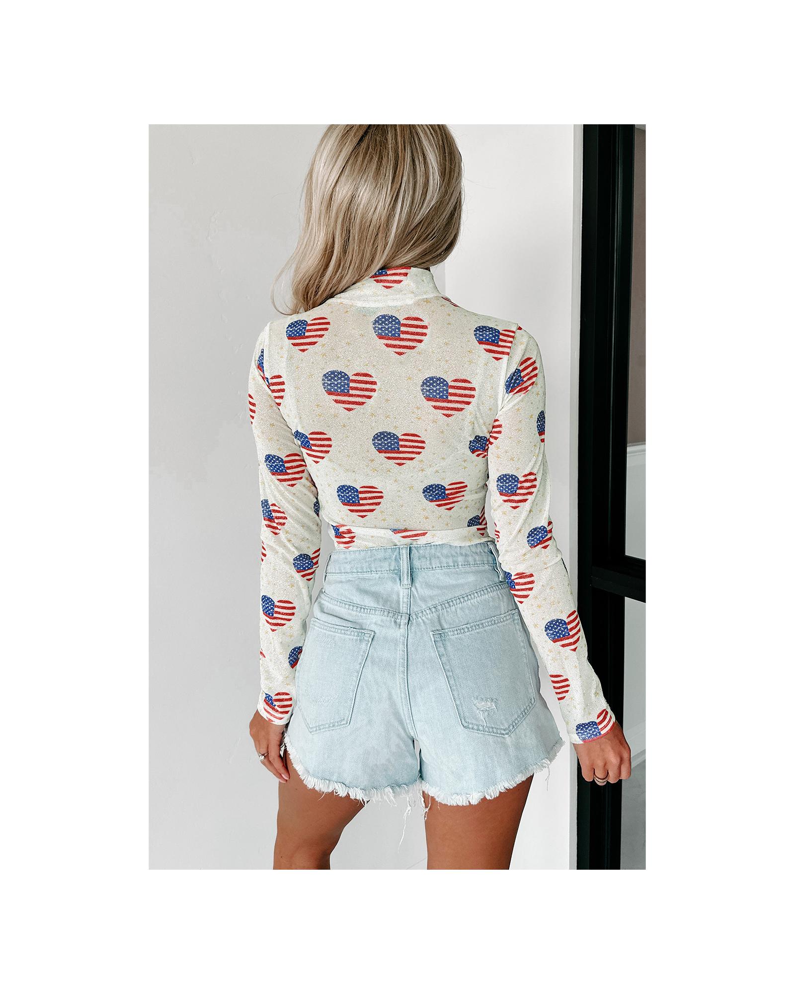 White Americana Glitter Mesh Long Sleeve Bodysuit – XL