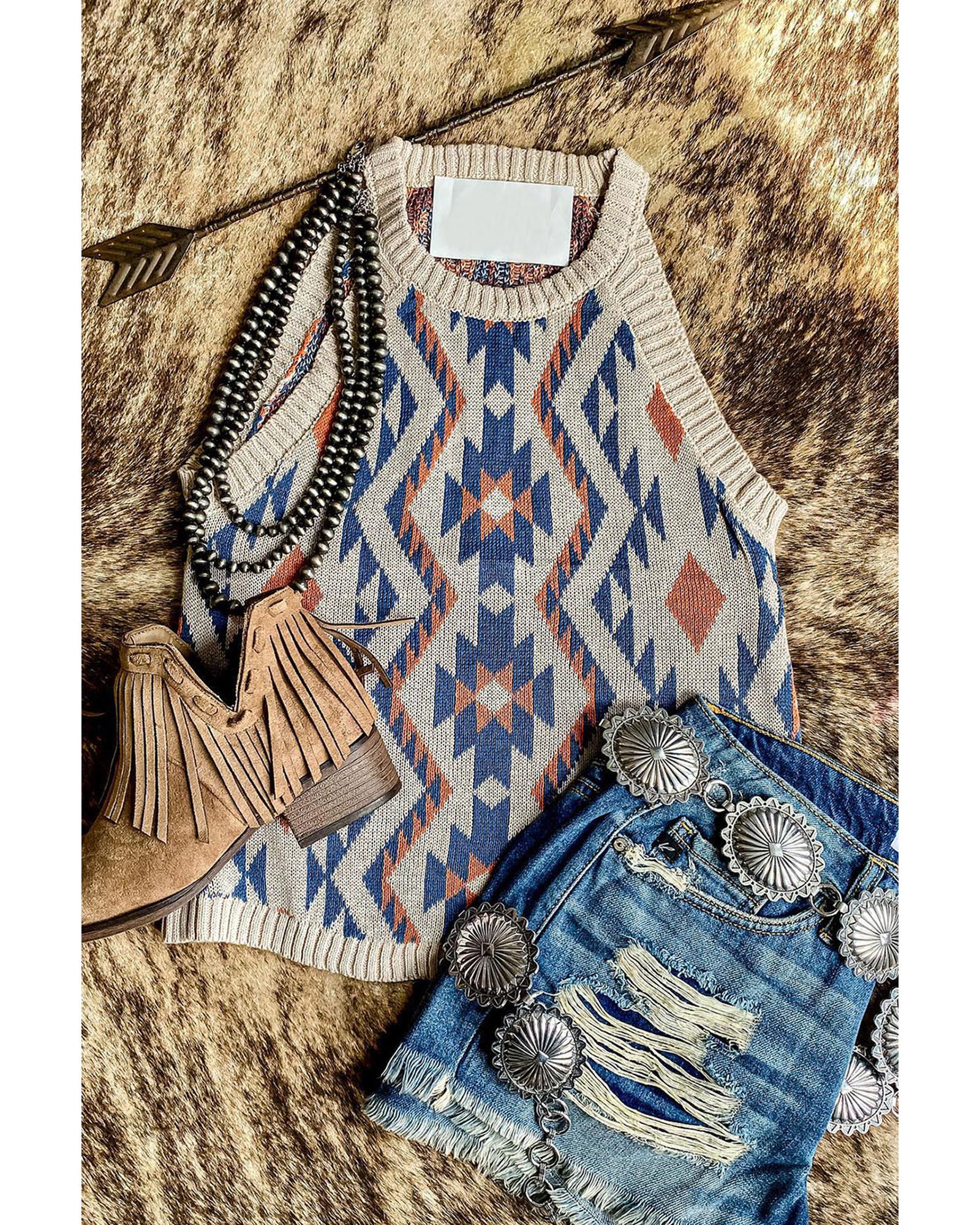 White Bow Pattern Buttoned Side Cropped Sweater Vest - L
