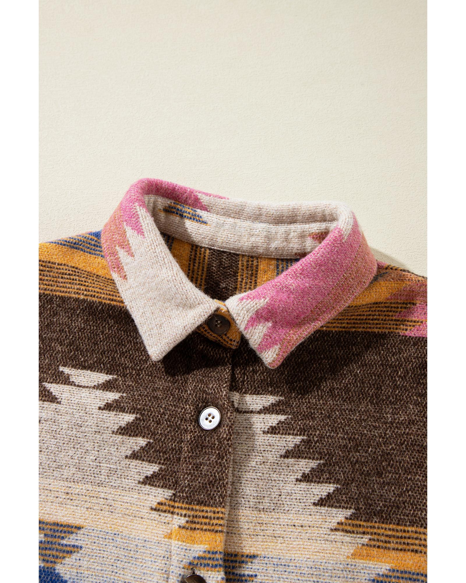 White Aztec Print Button Up Shacket – S