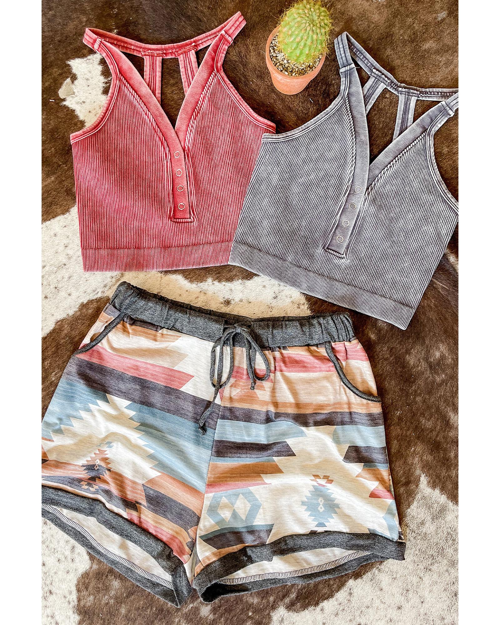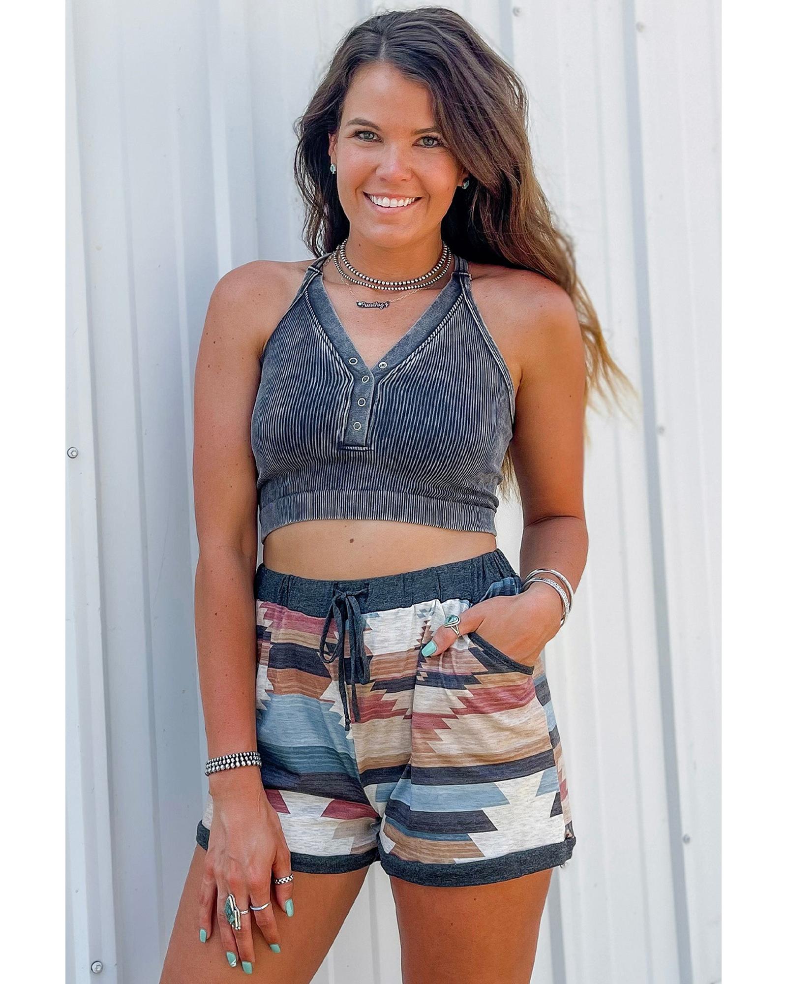White Aztec Print Drawstring Waist Casual Shorts – L
