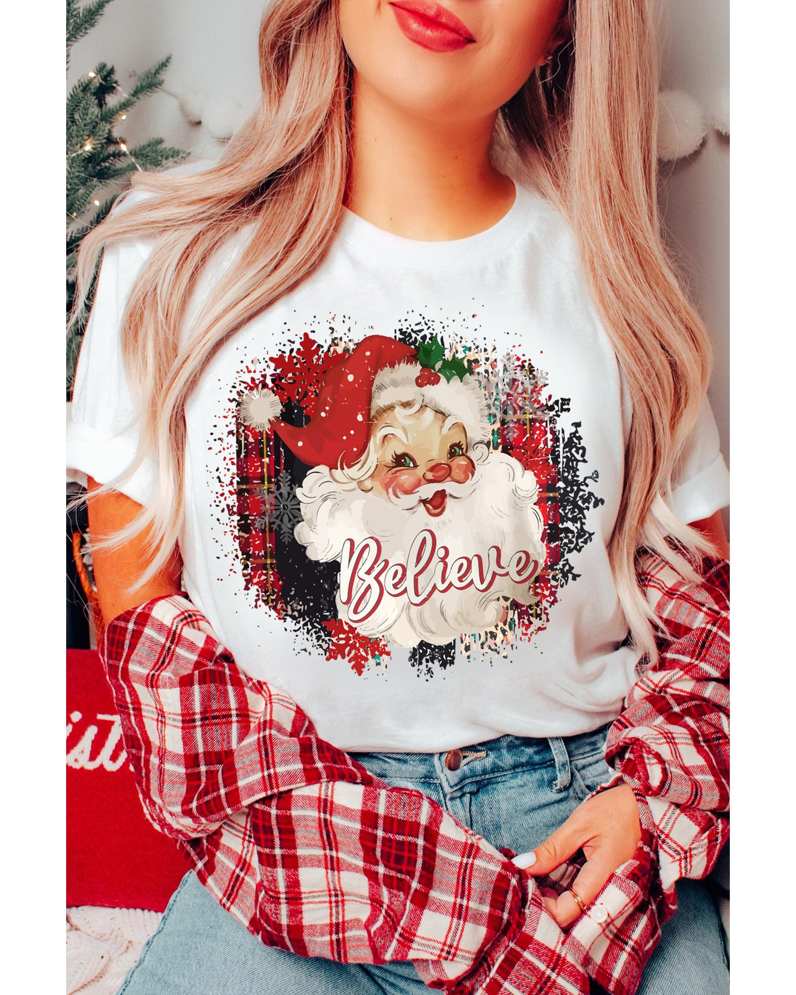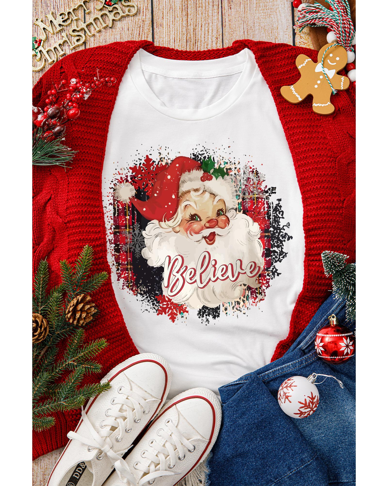 White Believe Christmas Father Graphic Crewneck T Shirt – 3XL
