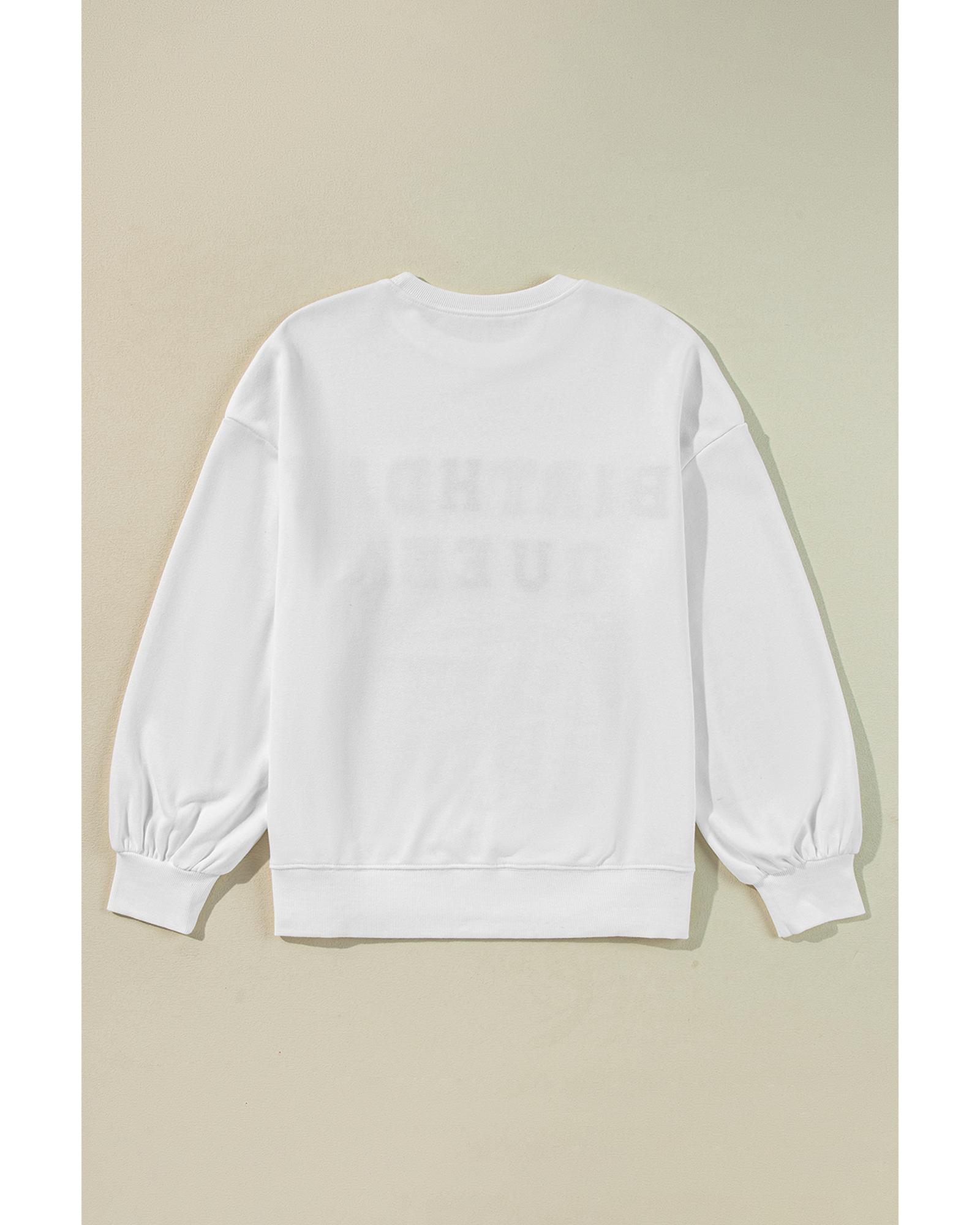 White BIRTHDAY QUEEN Graphic Balloon Sleeve Sweatshirt – L