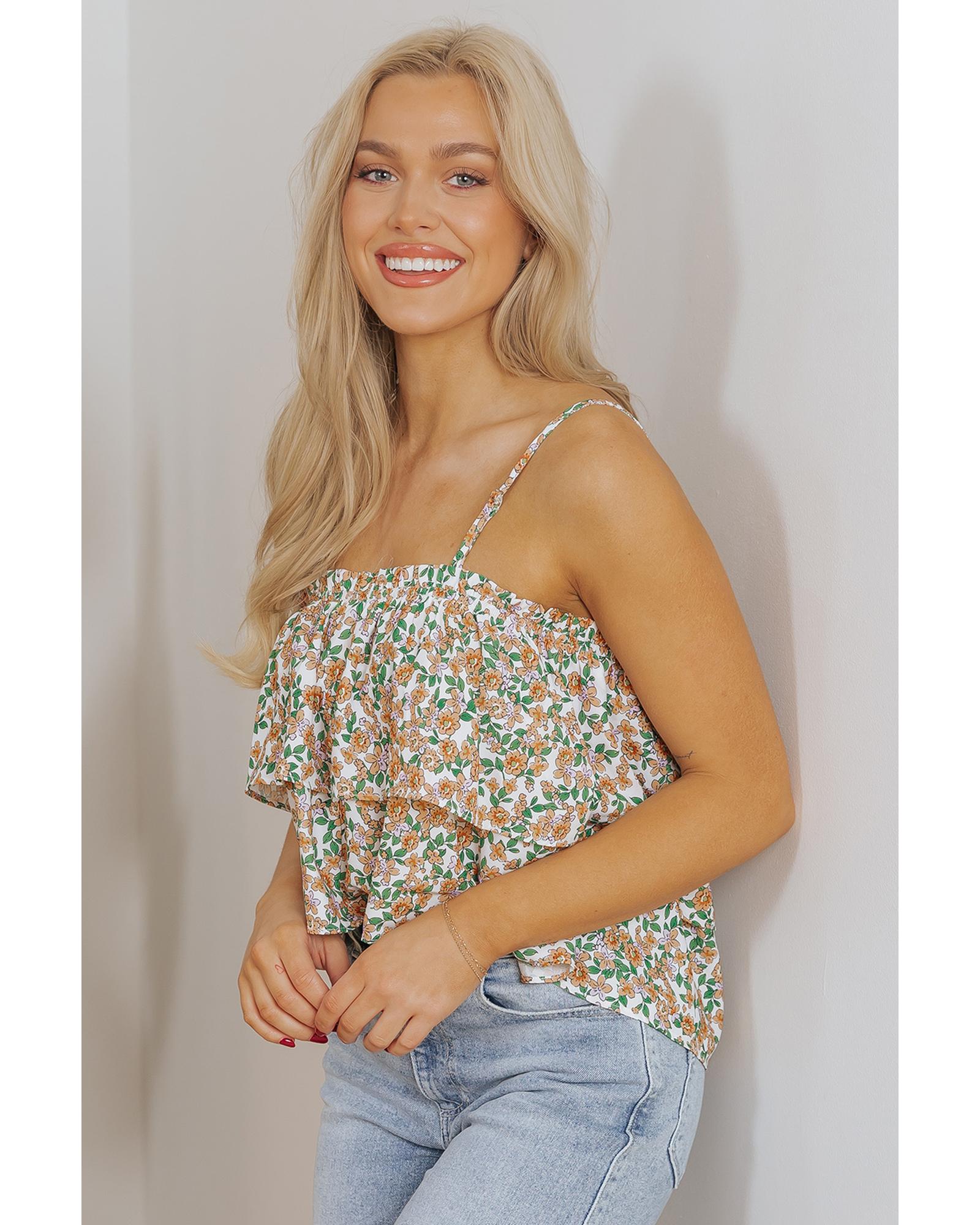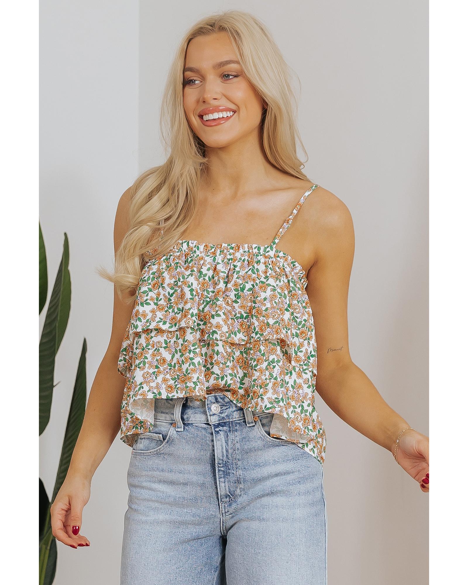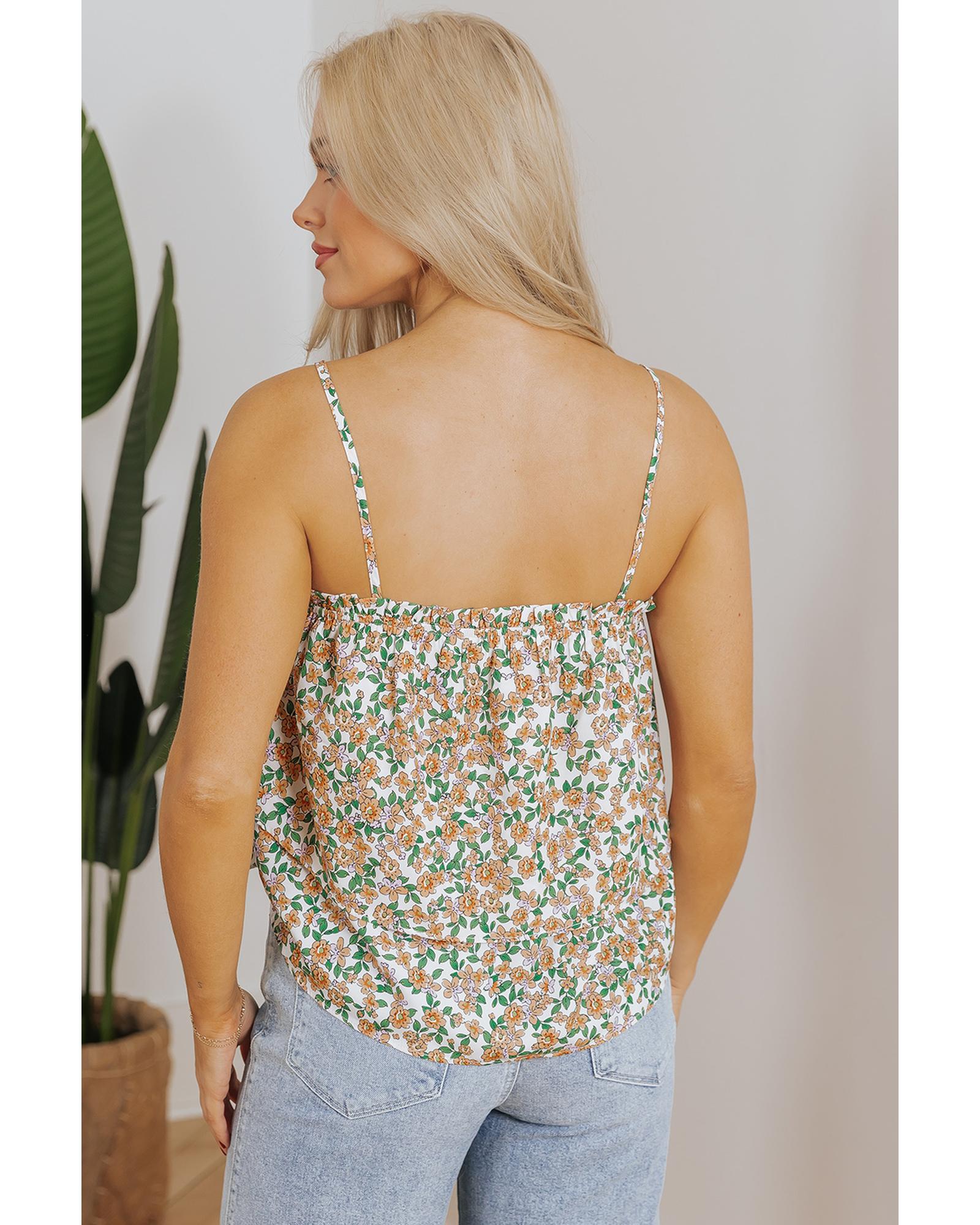 White Boho Floral Spaghetti Strap Ruffle Summer Tank Top – M