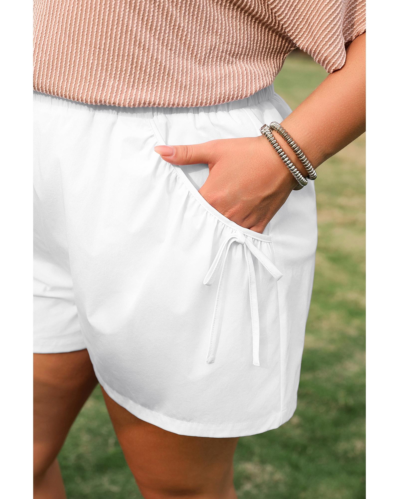 White Bow Decor Pockets Plus Size Shorts – 1X