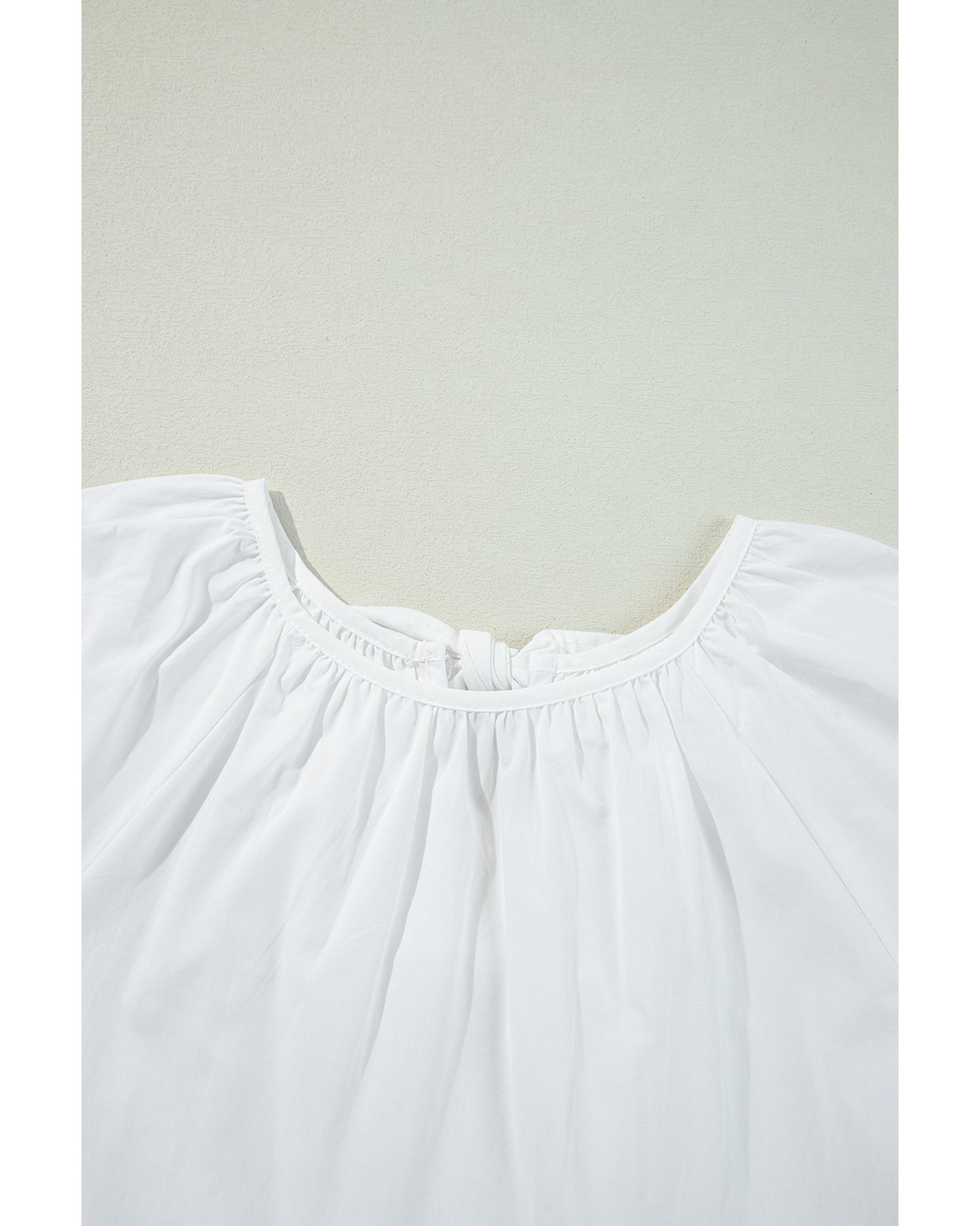 White Bow Knot Cutout Back Loose Fit 3/4 Sleeve Blouse – M