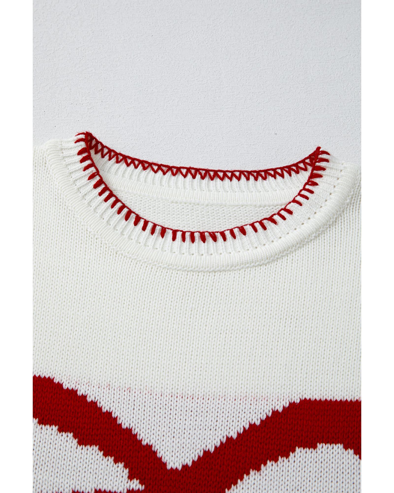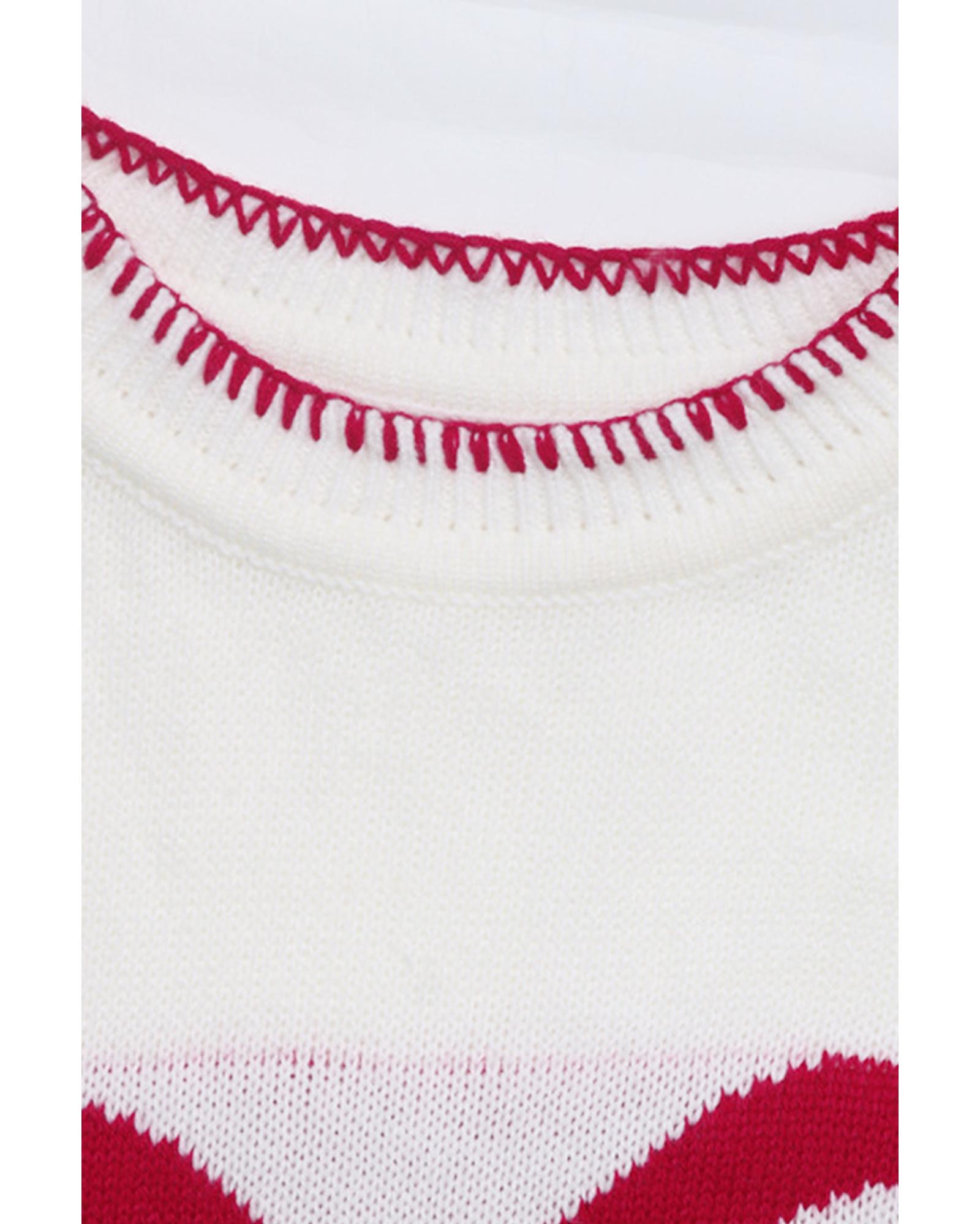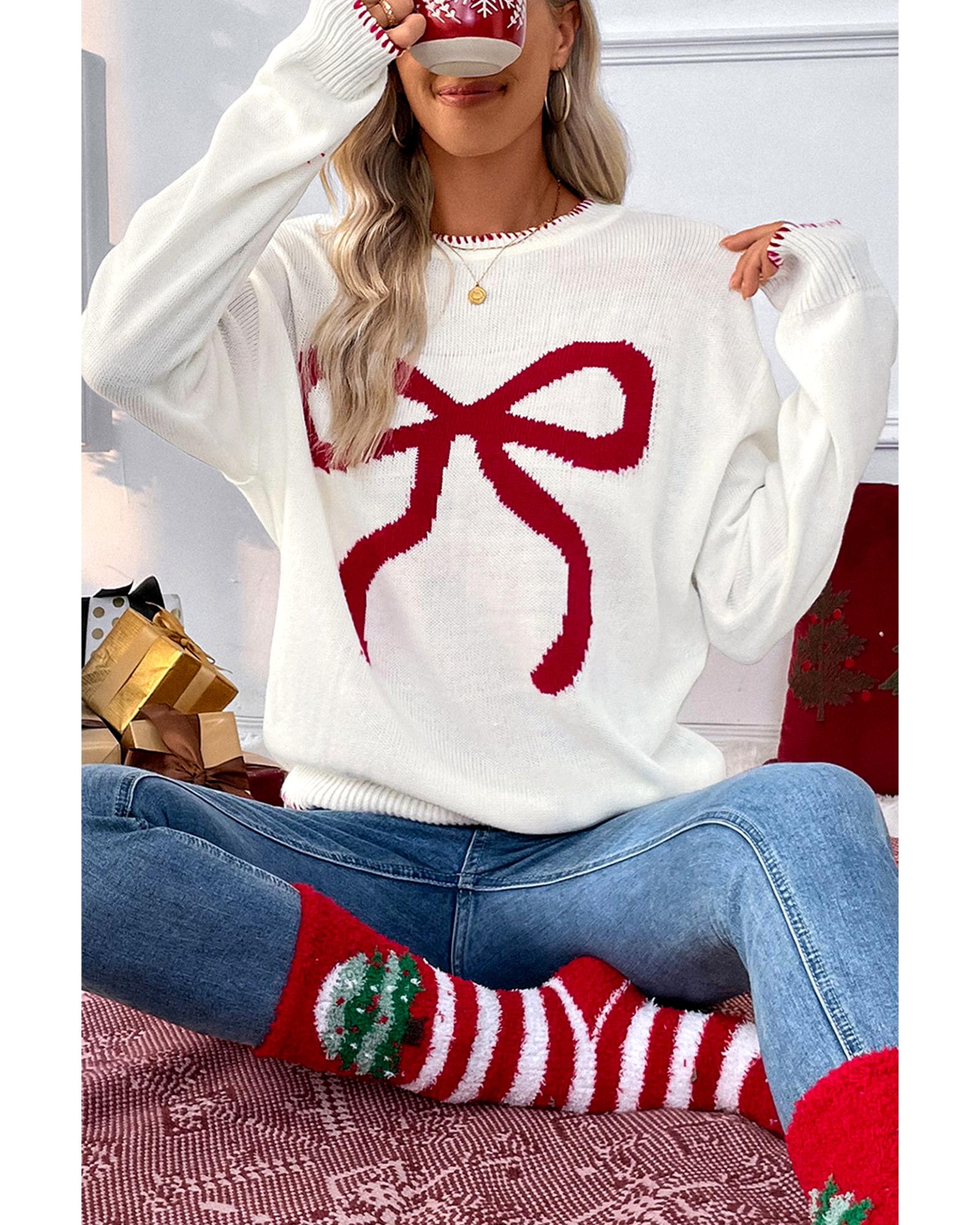 White Bow Pattern Contrast Trim Christmas Loose Graphic Sweater – XL