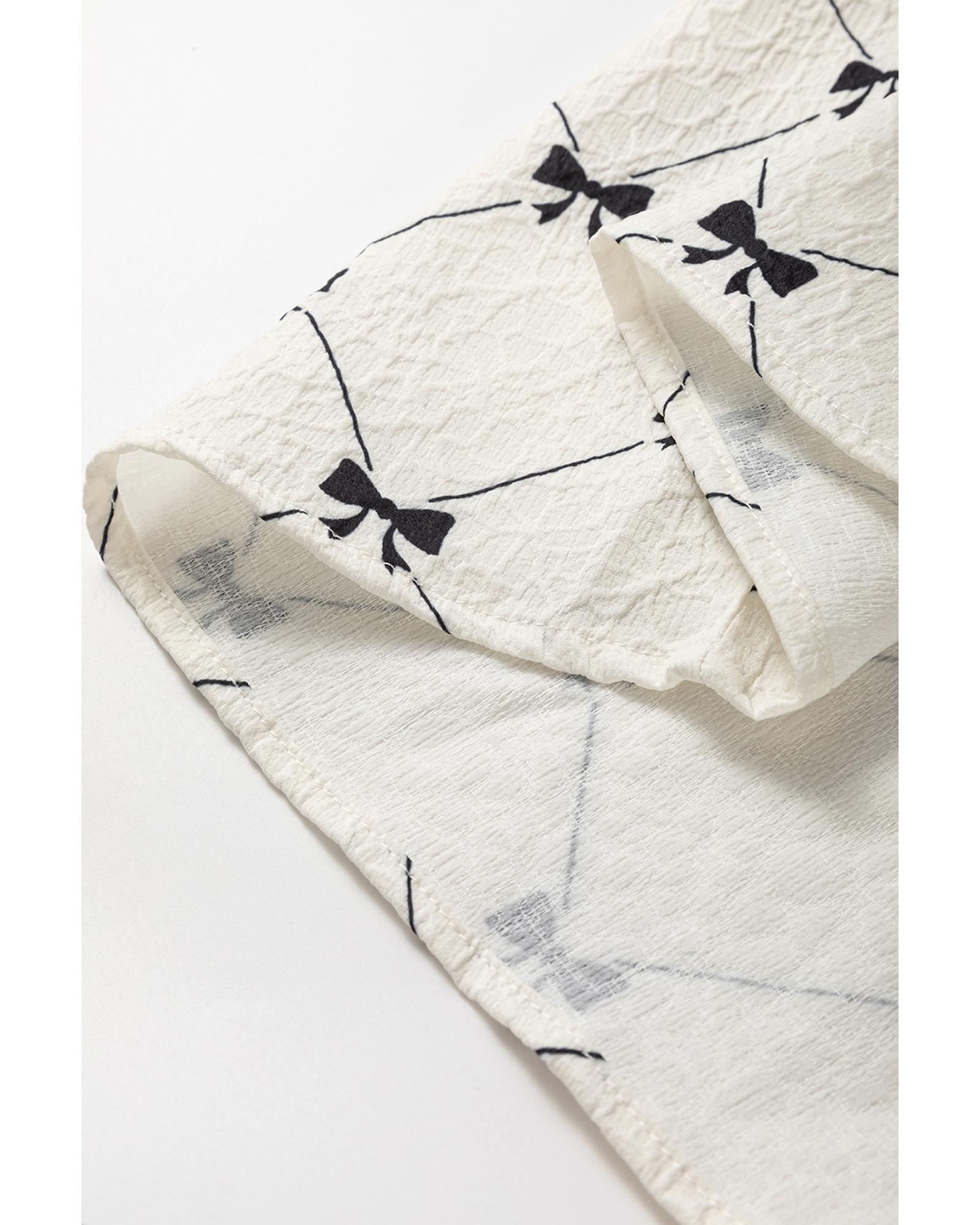 White Bowtie Pattern Textured Puff Half Sleeve Loose Mini Dress – XL