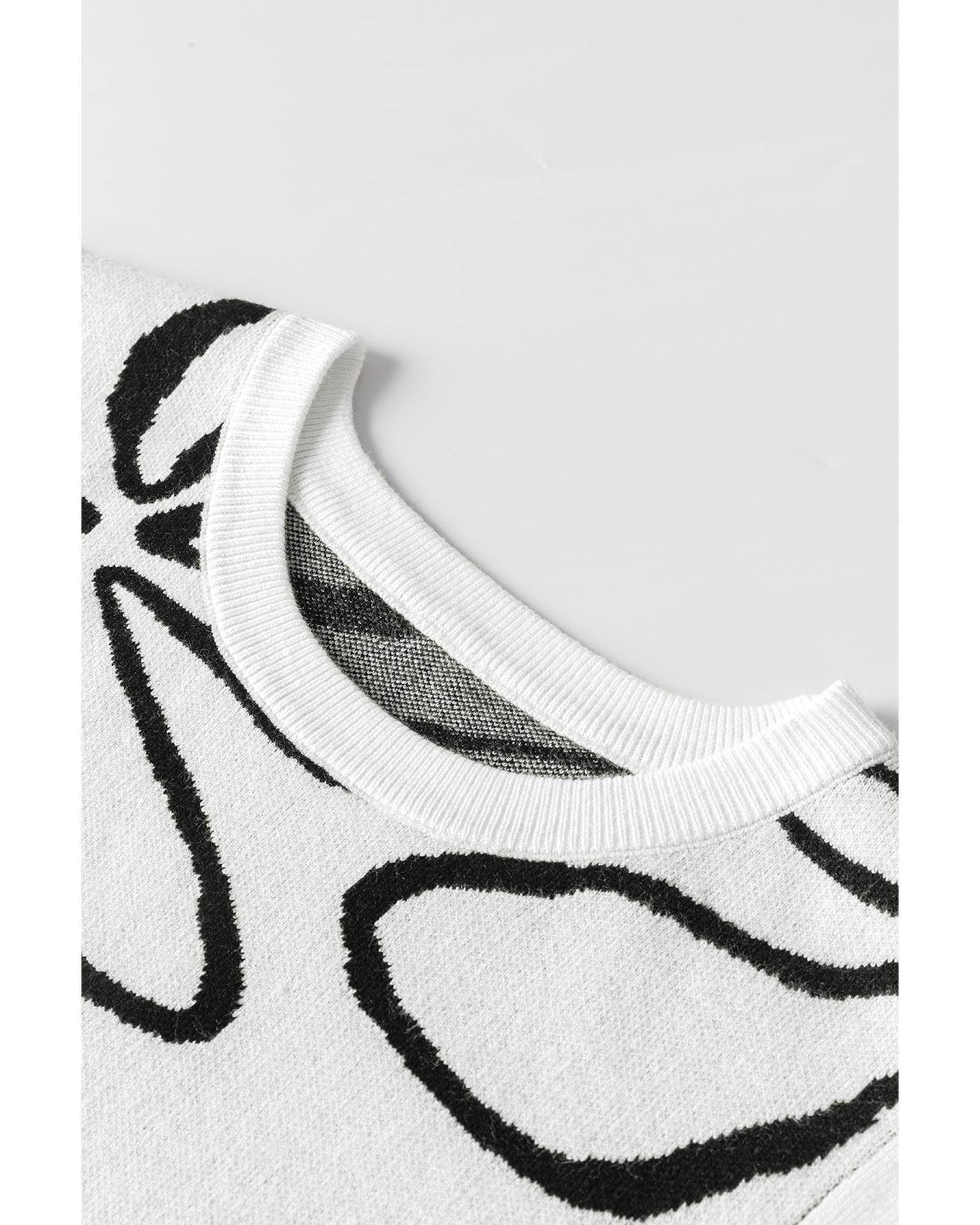 White Bow Pattern Contrast Trim Christmas Loose Graphic Sweater - XL
