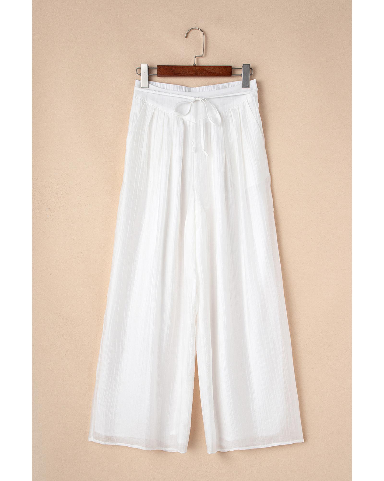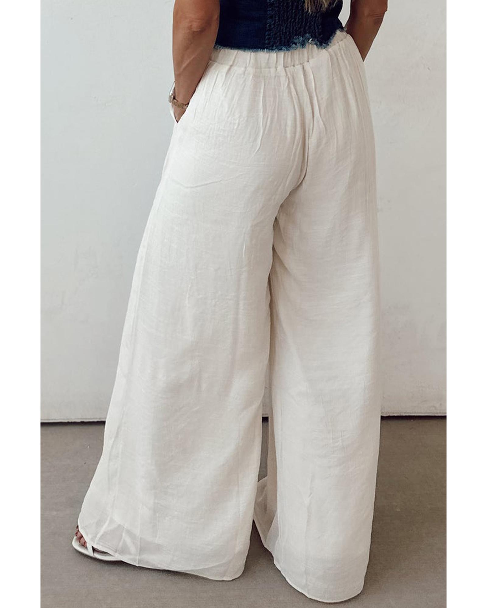 White Casual Tie Waist Pleated Wide Leg Pants – XL