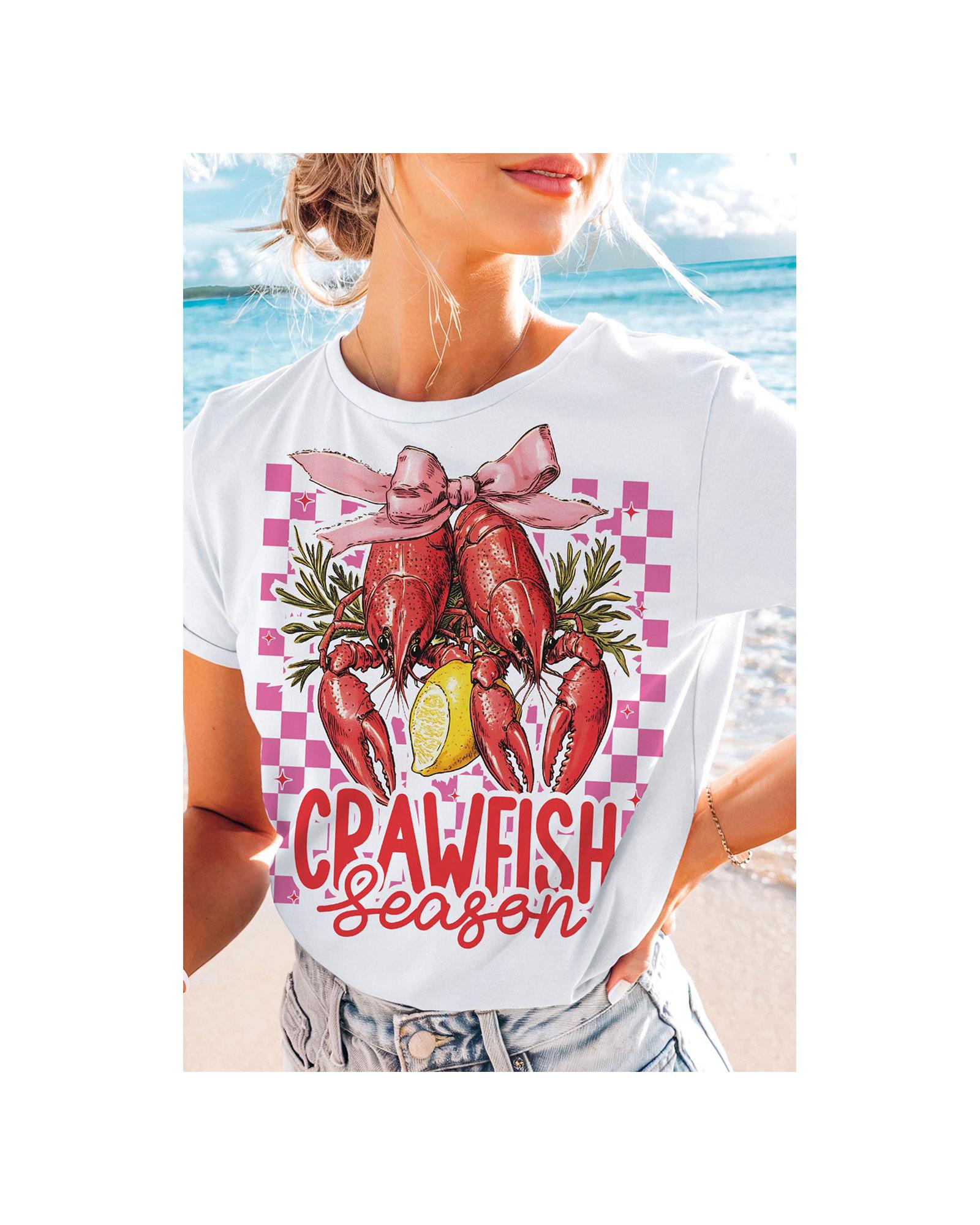 White Checkerboard Bow Crawfish Season Printed Crewneck T Shirt – M