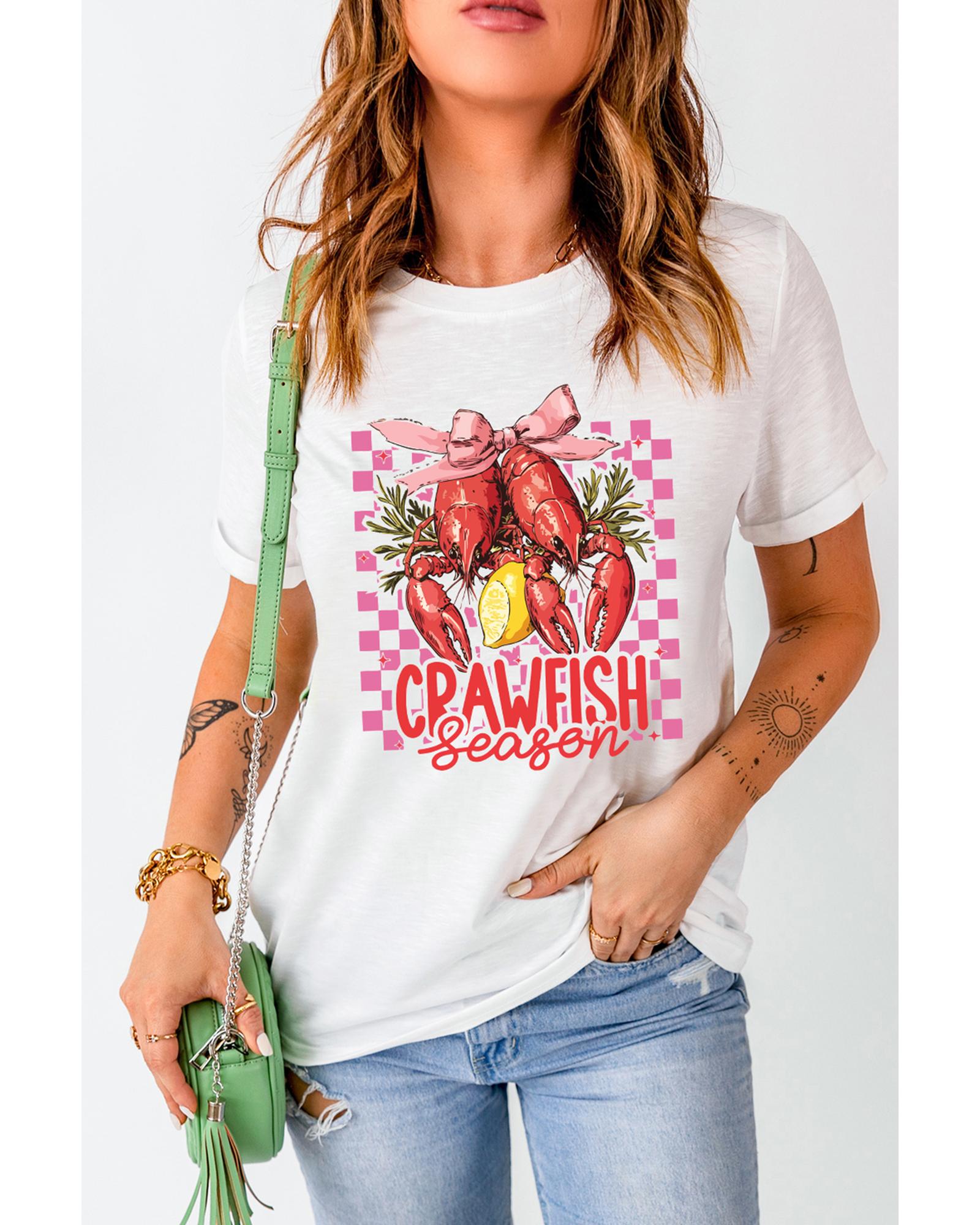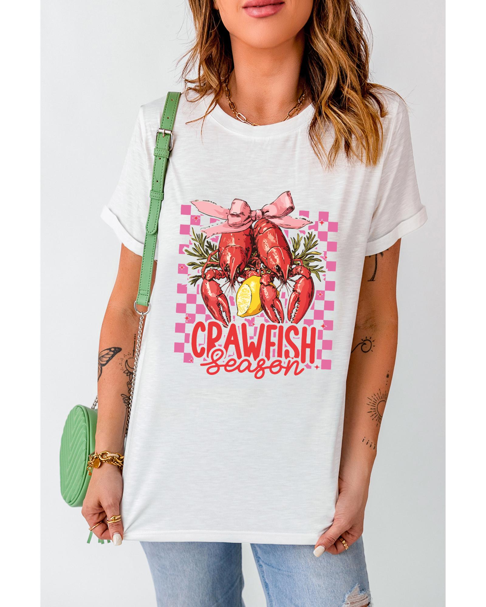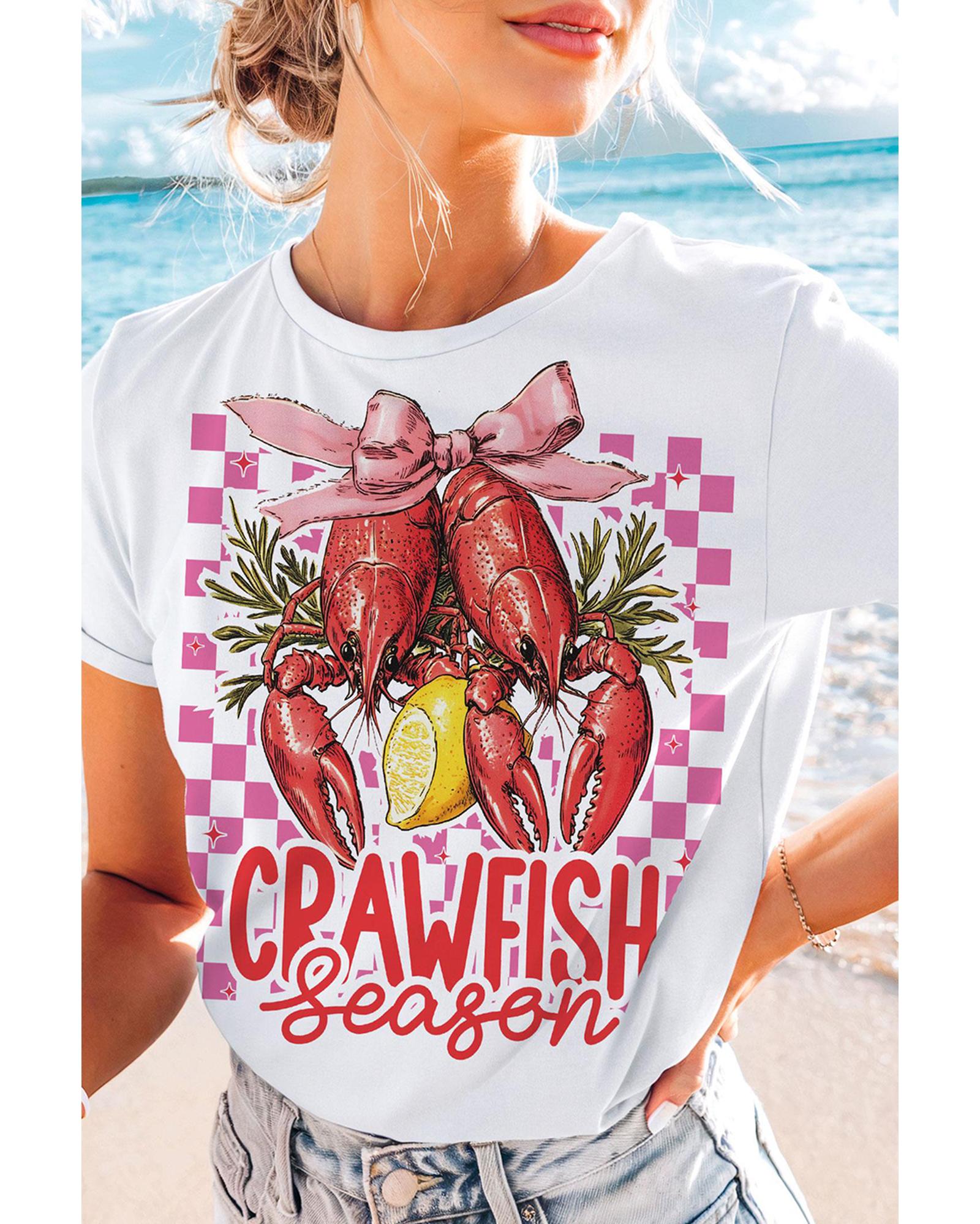 White Checkerboard Bow Crawfish Season Printed Crewneck T Shirt – XL