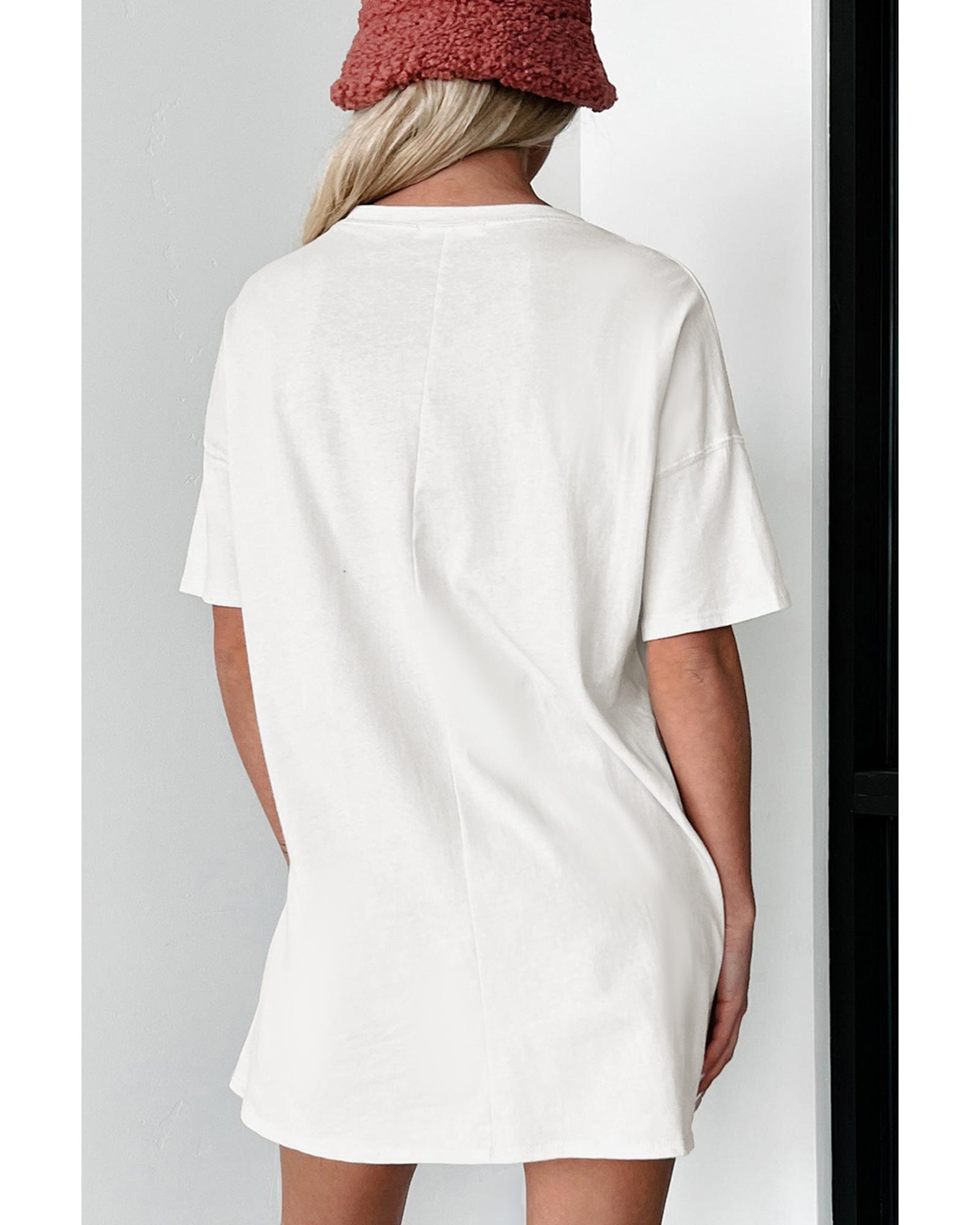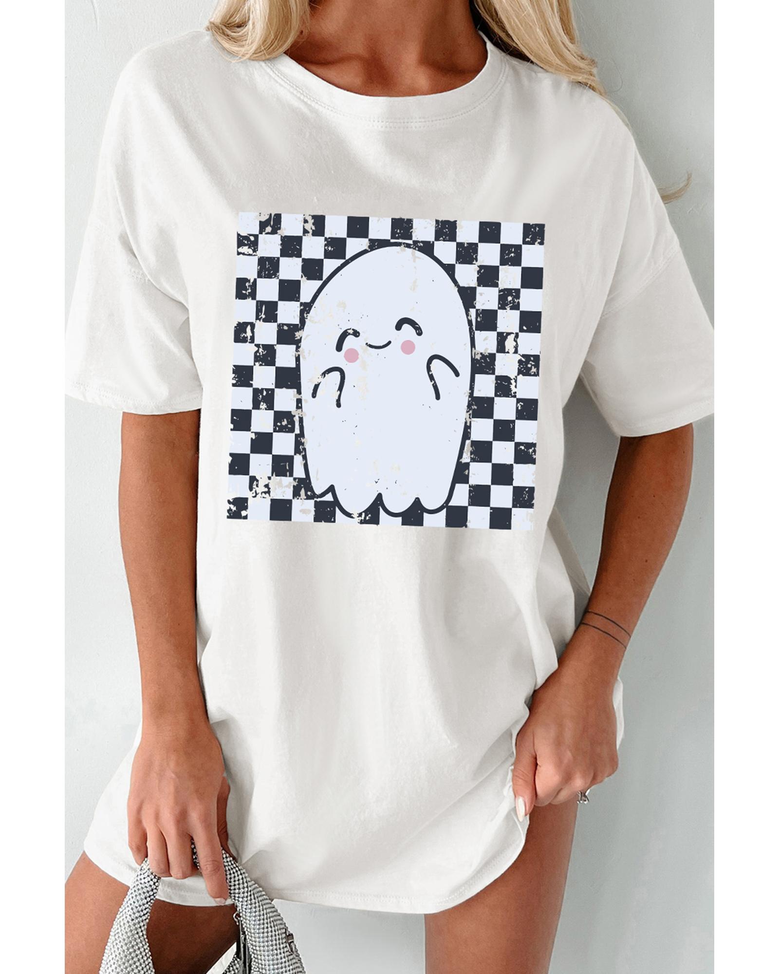 White Checkered Ghost Print Crew Neck Oversized T Shirt – M