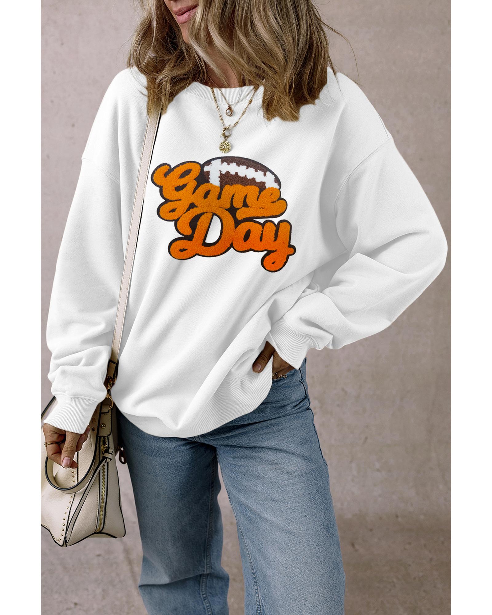 White Chenille Game Day Rugby Football Pattern Pullover Sweatshirt – XL