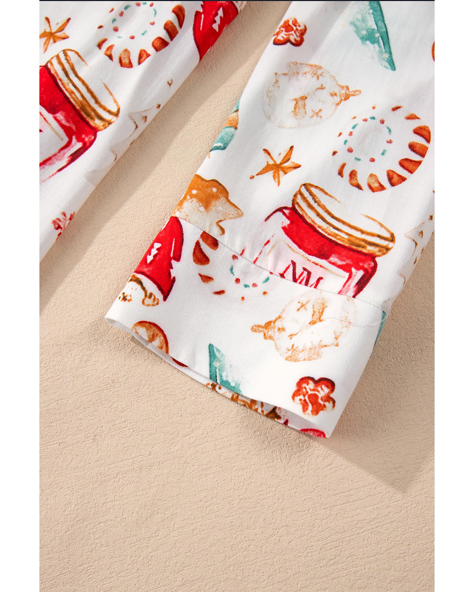 White Christmas Pattern Long Sleeve Shirt and Pants Pajama Set – XL