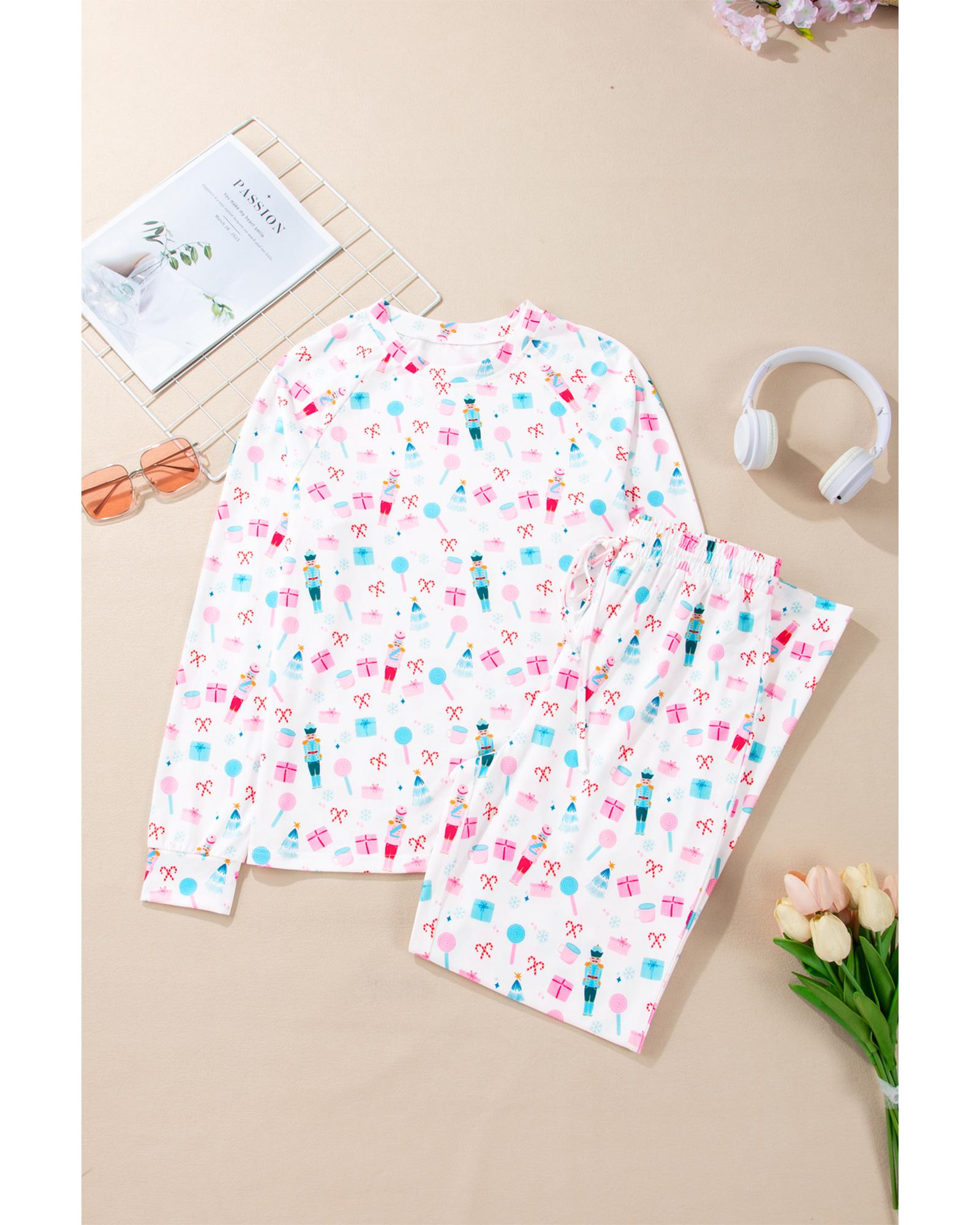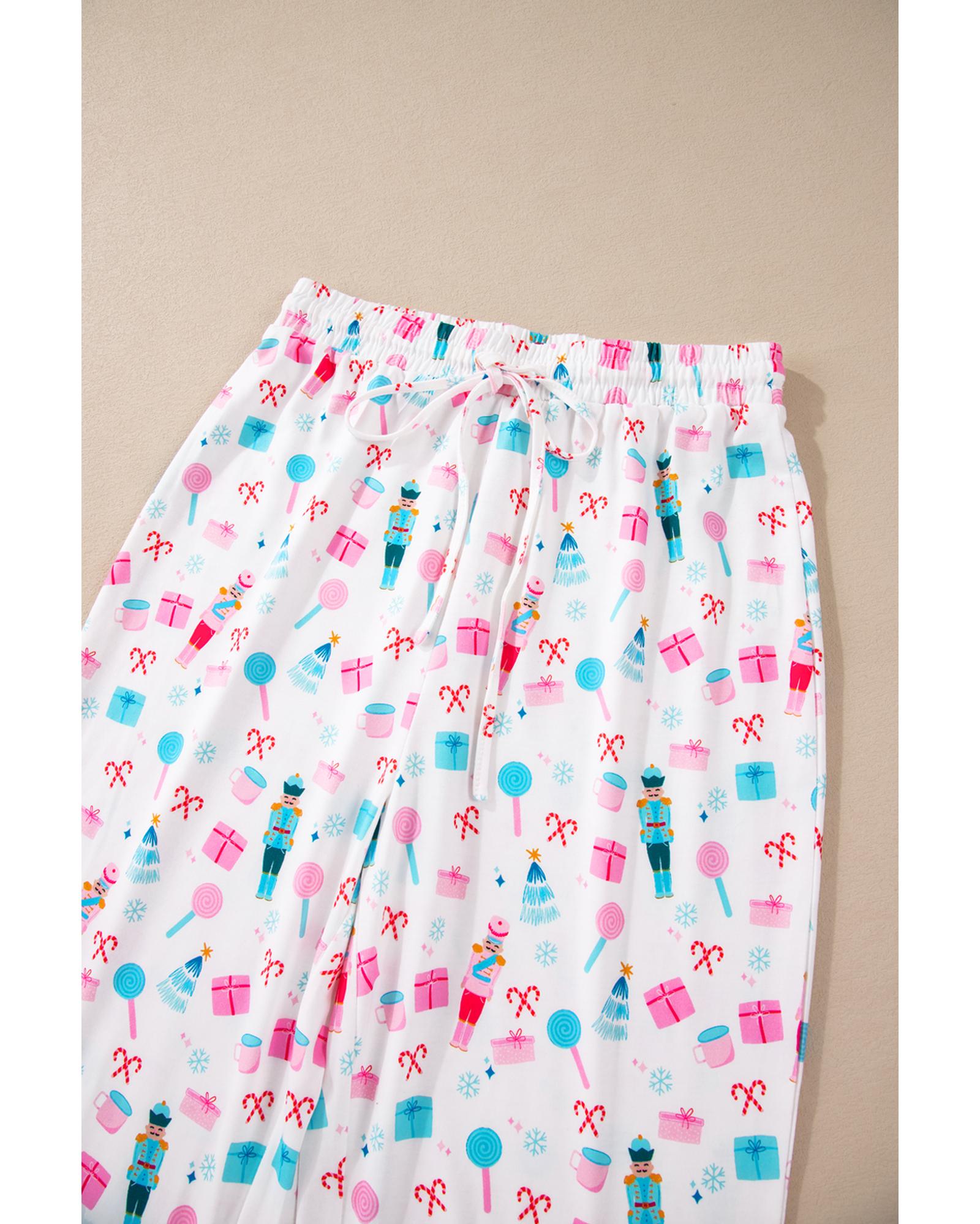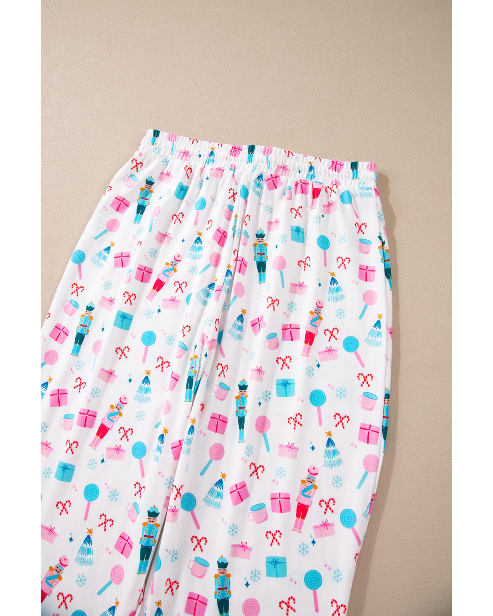White Christmas Pattern Long Sleeve Top and Wide Leg Pants Set – XL