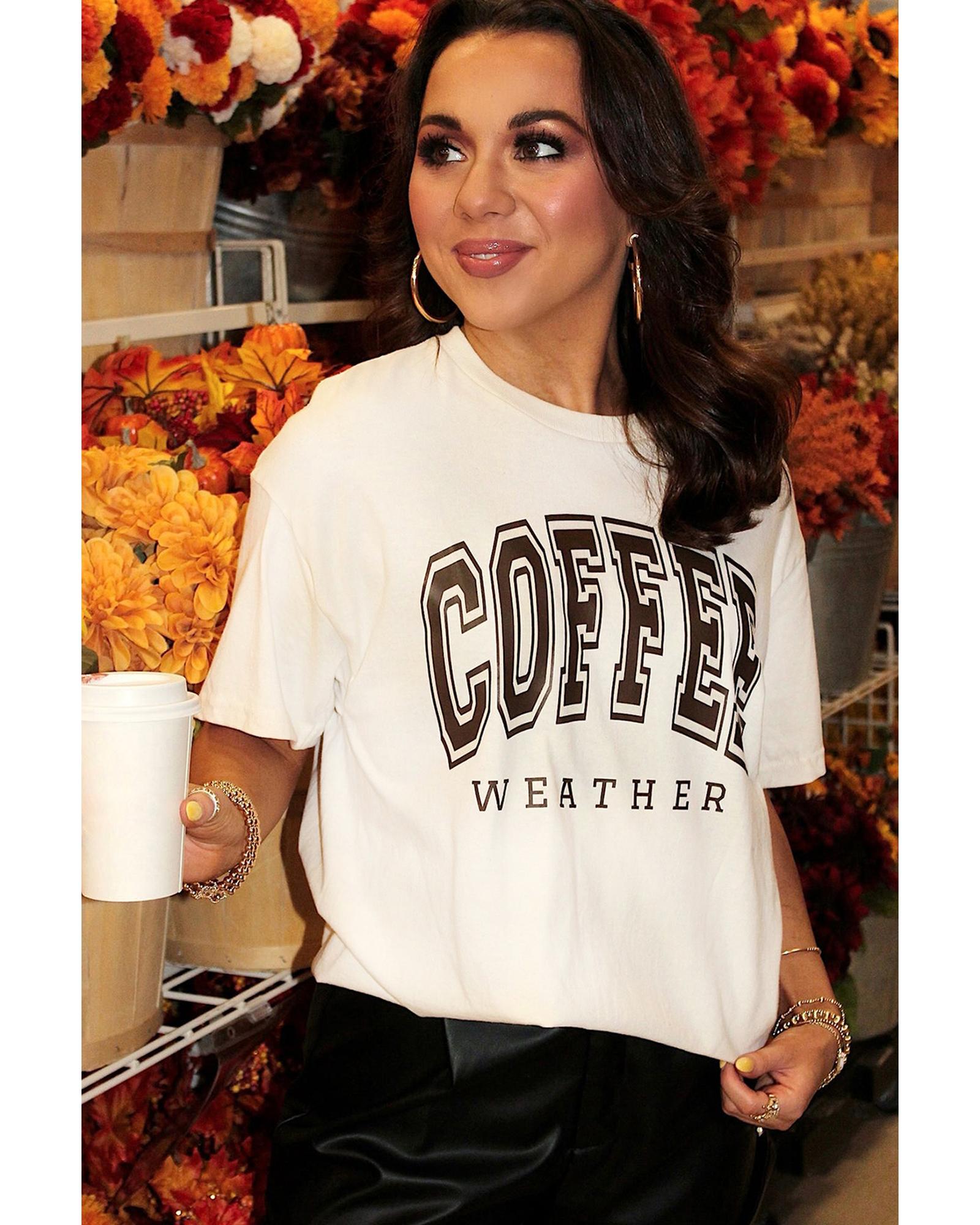 - COFFEE WEATHER graphic brings a fun and trendy touch