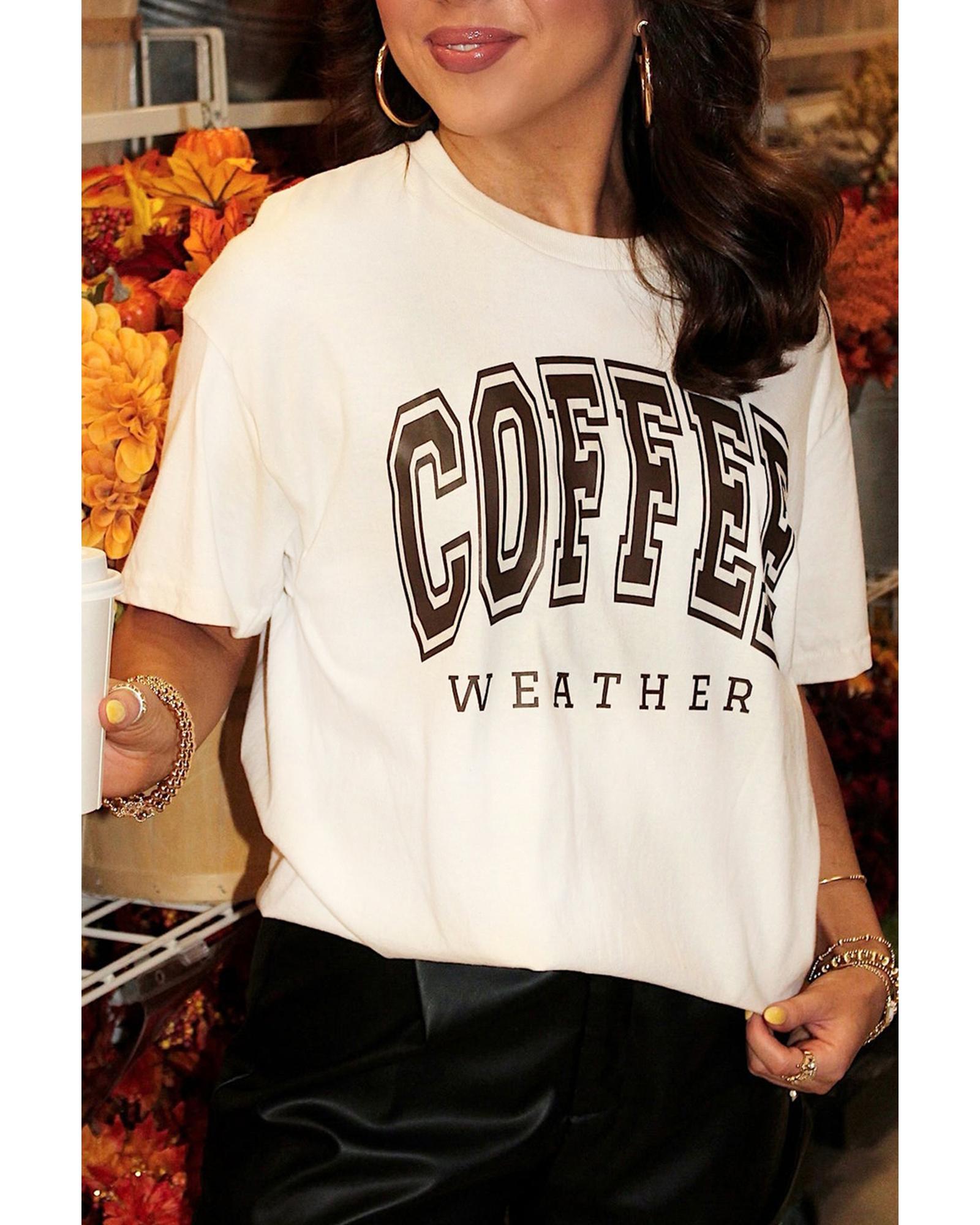 White COFFEE WEATHER Round Neck Graphic T Shirt – 2XL