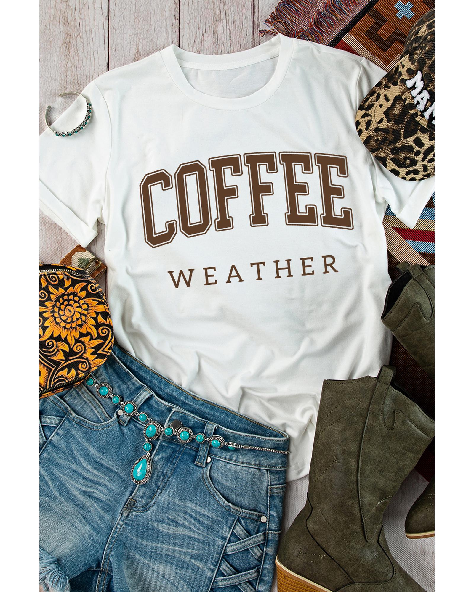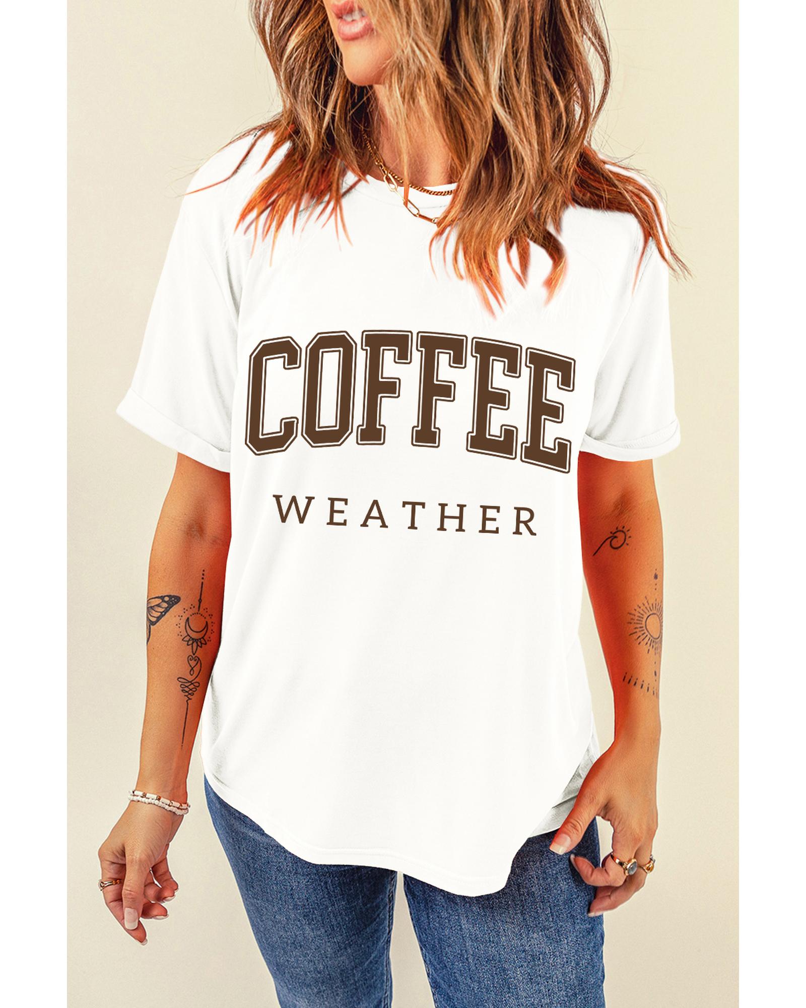 White COFFEE WEATHER Round Neck Graphic T Shirt – M