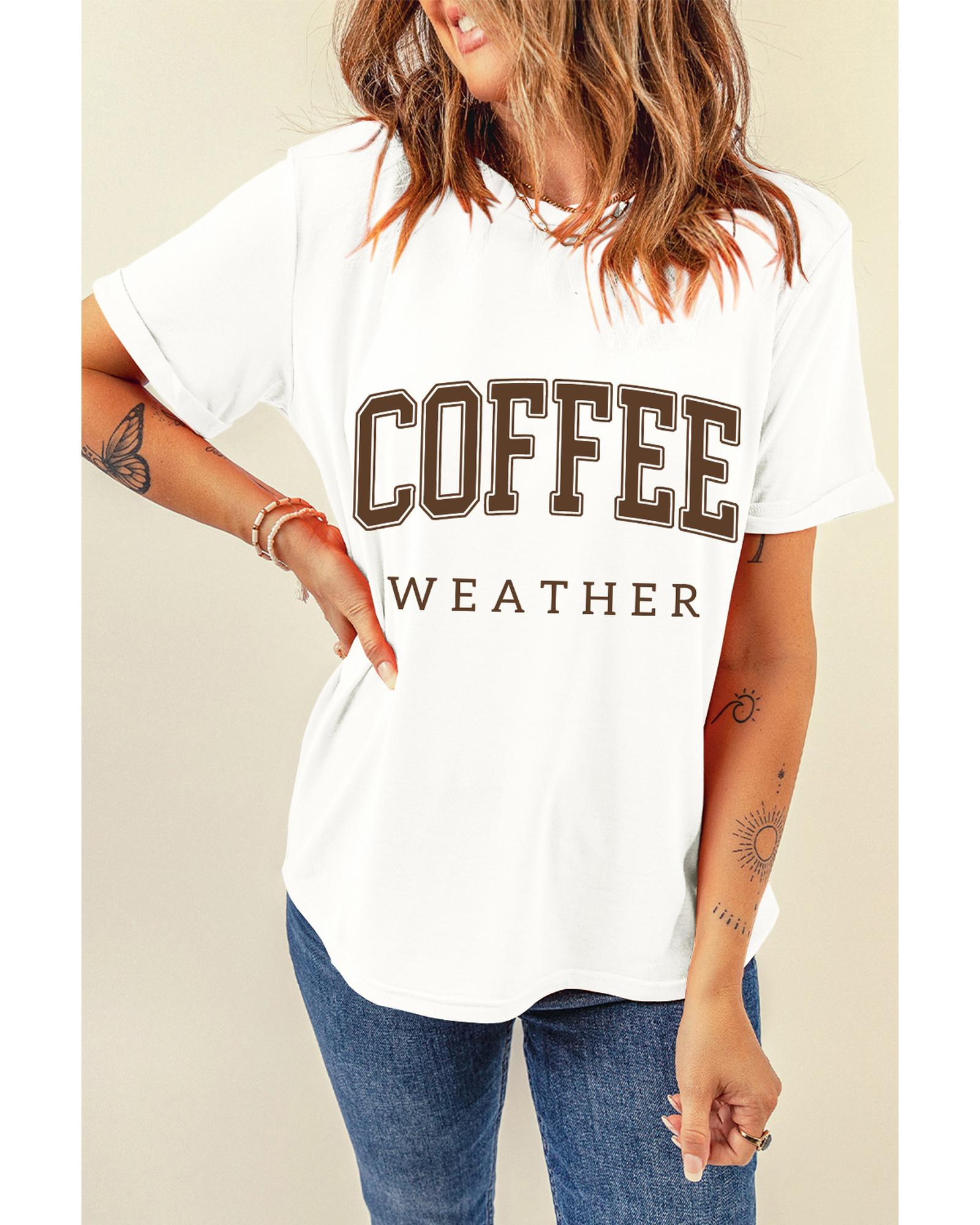 White COFFEE WEATHER Round Neck Graphic T Shirt – XL