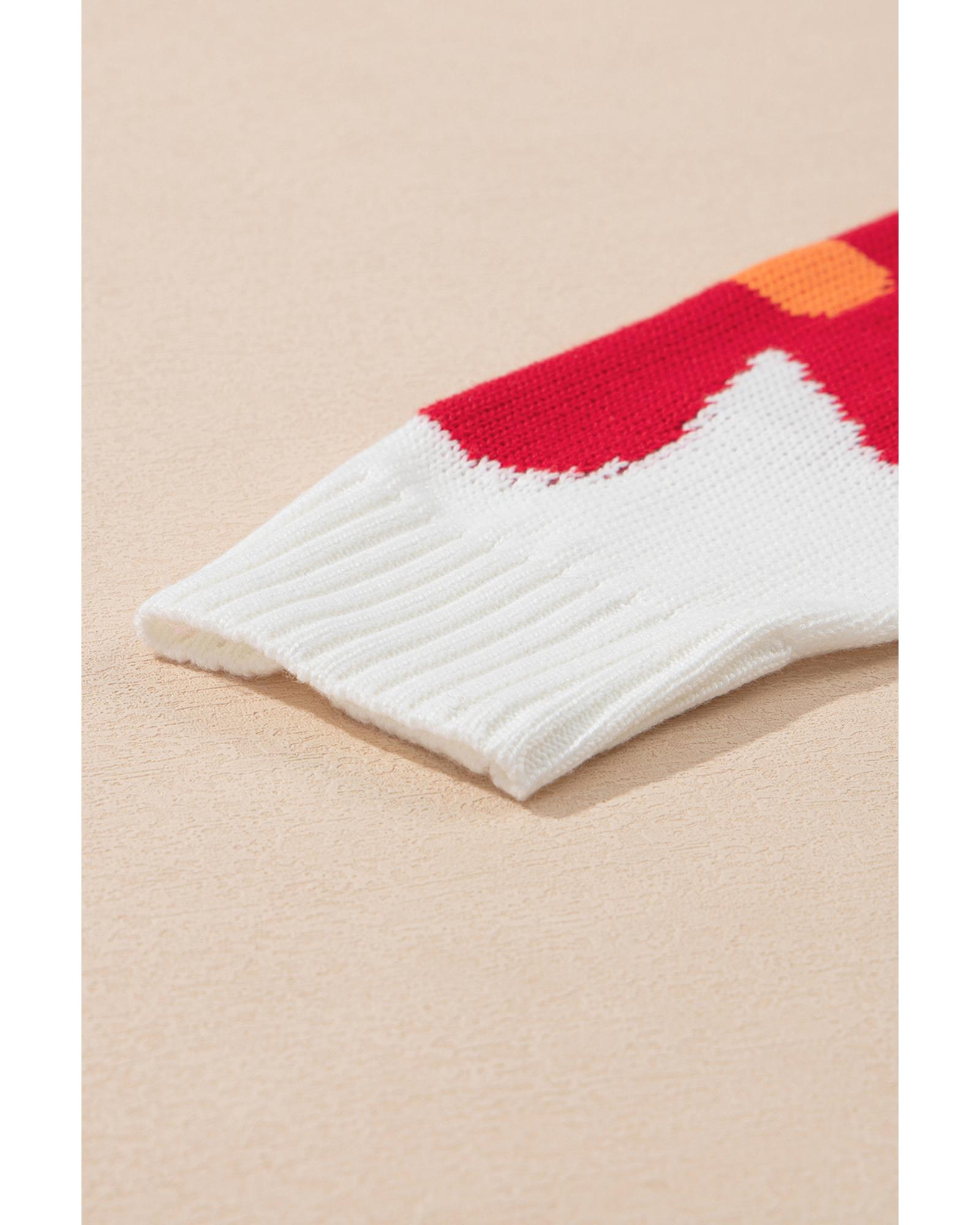 White Western Geometric Patterned Crew Neck Loose Sweater - M