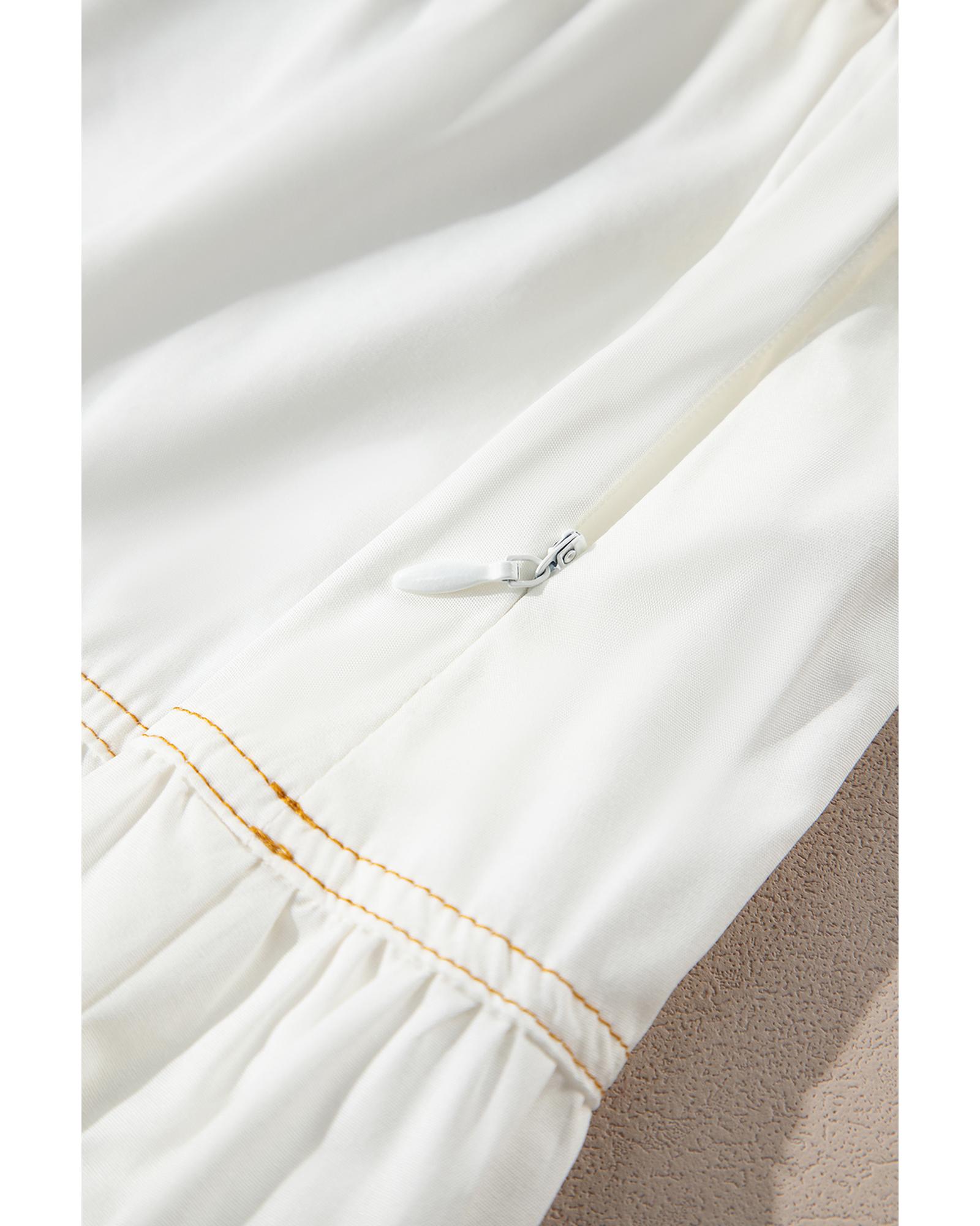 White Contrast Stitching Trim Knotted High Waist A-Line Mini Skirt – S