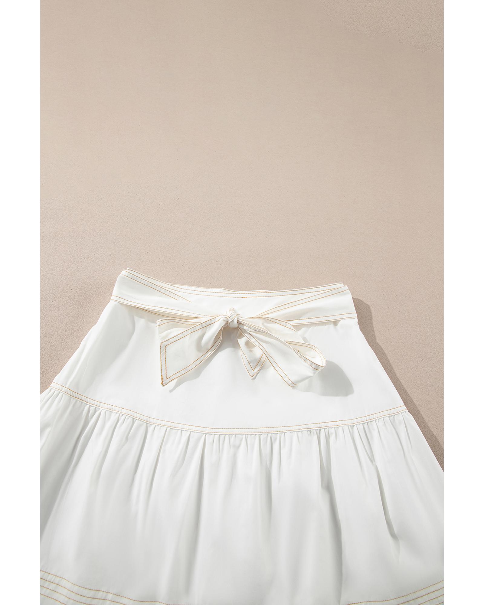 White Contrast Stitching Trim Knotted High Waist A-Line Mini Skirt – XL
