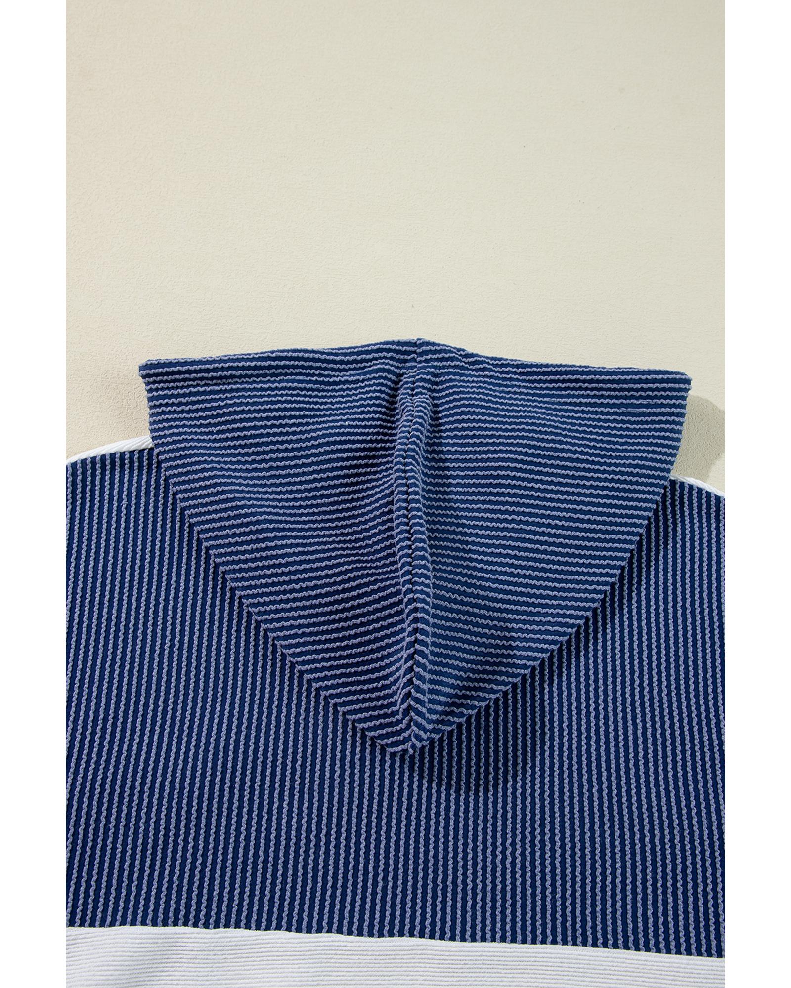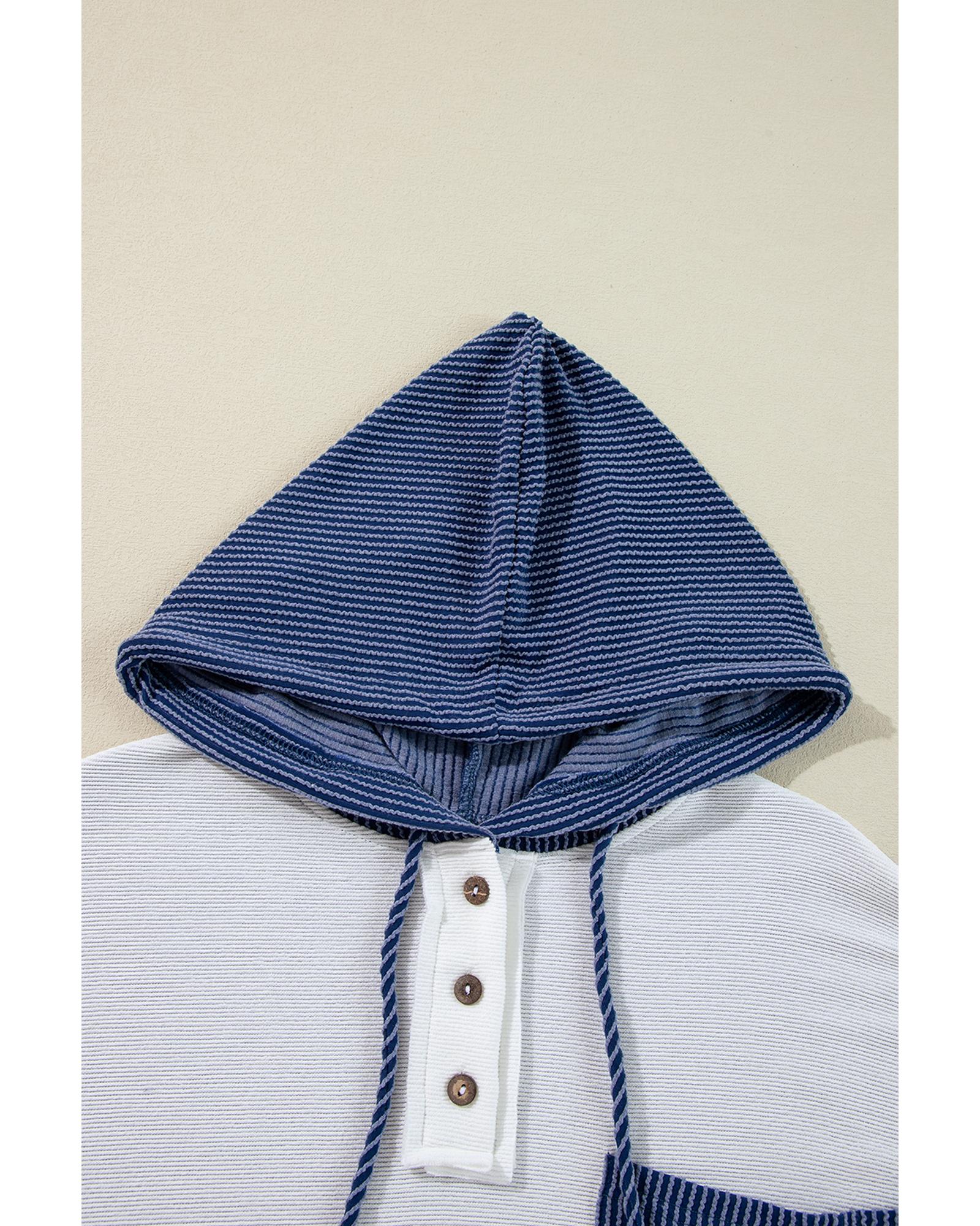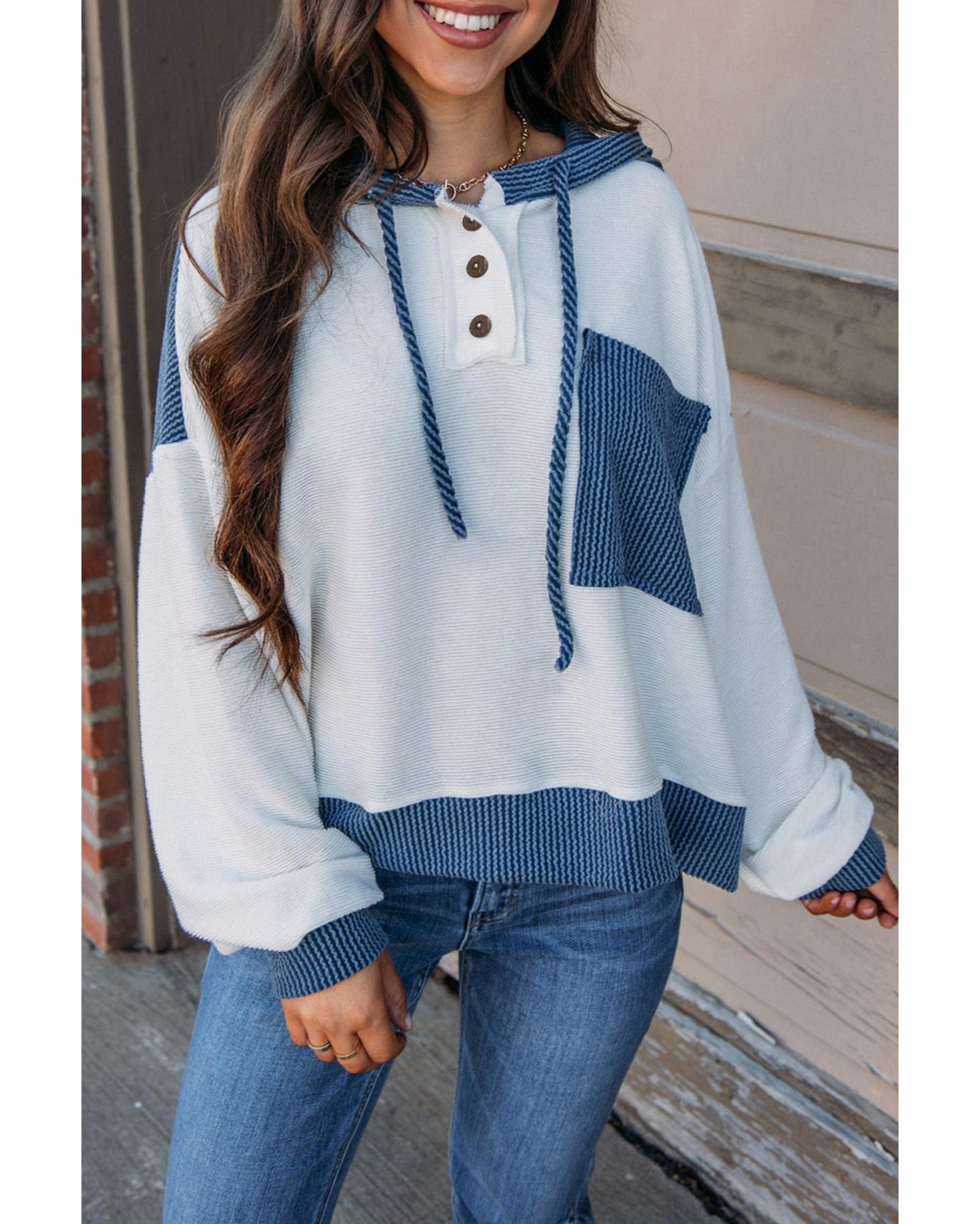 White Corded Colorblock Patch Pocket Drawstring Hooded Top – XL