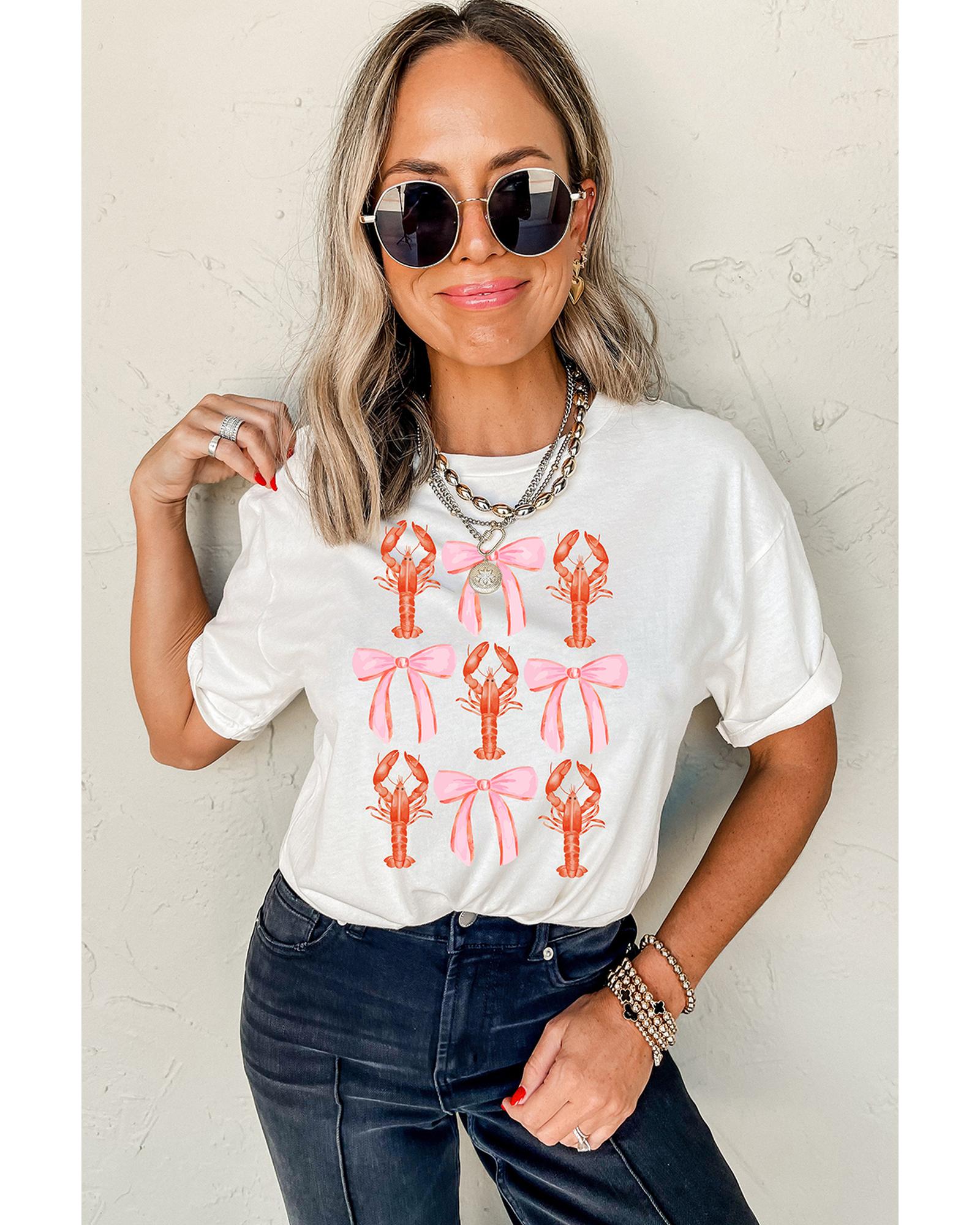 White Crawfish Bow Printed Summer T Shirt – XL