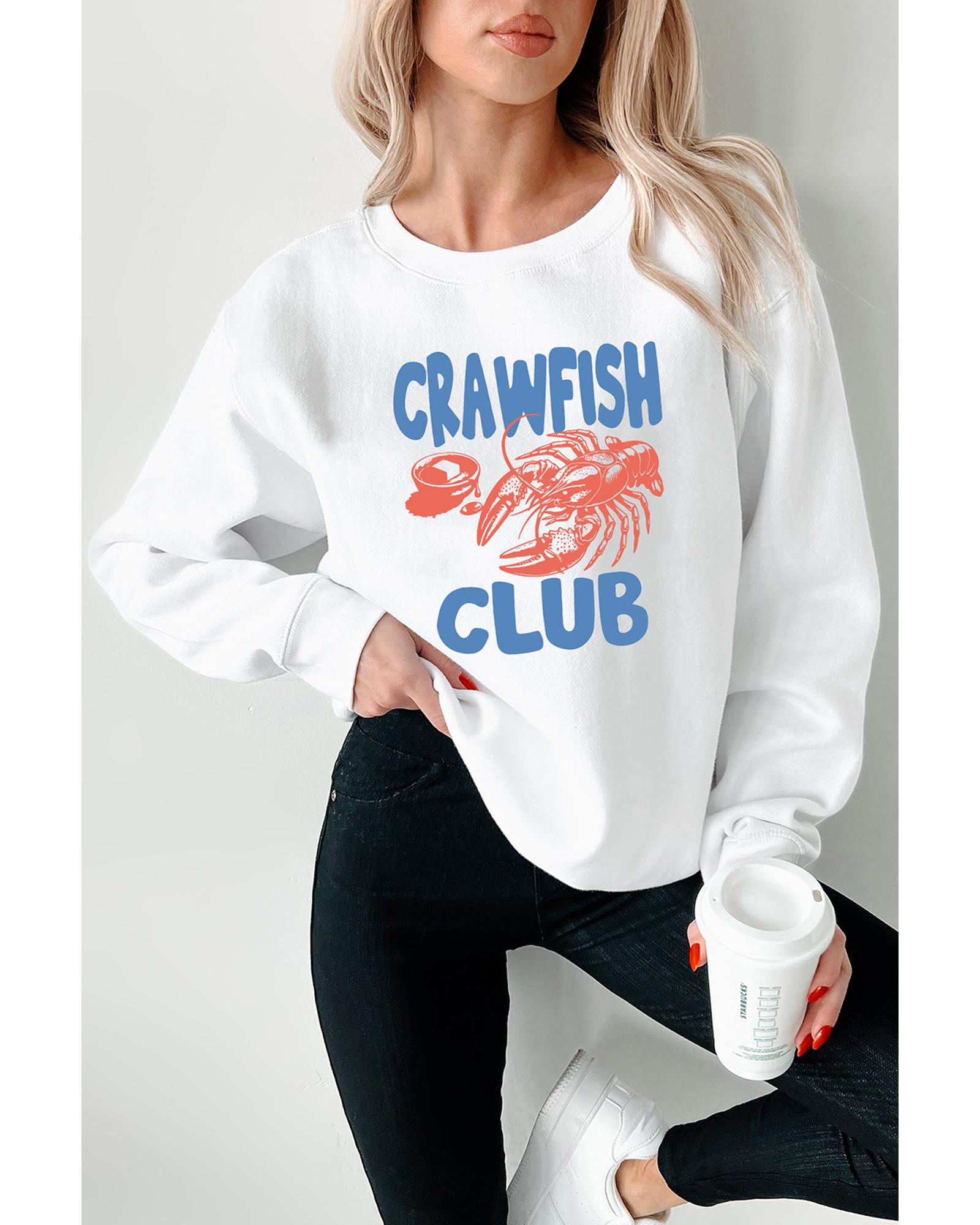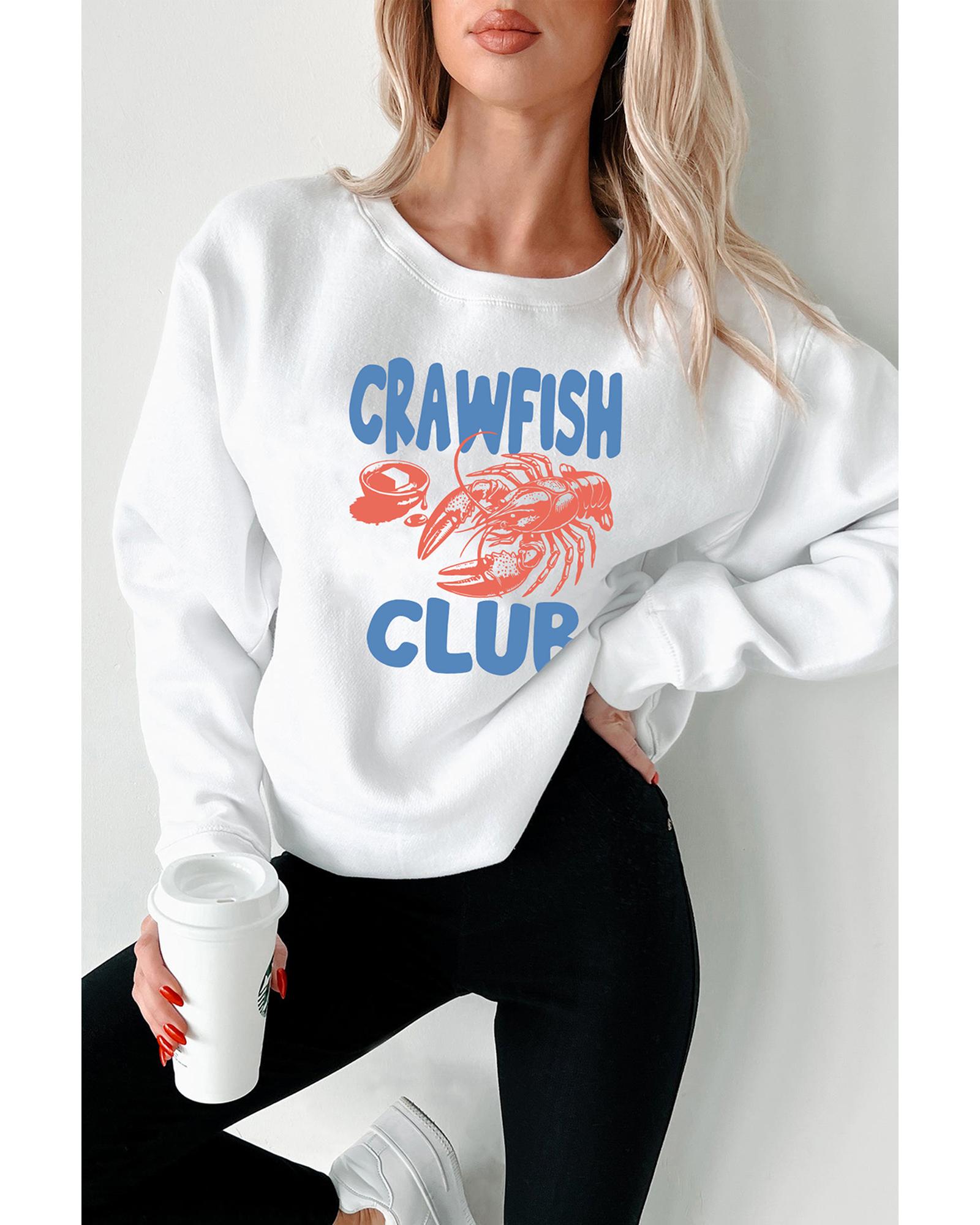 White CRAWFISH CLUB Printed Drop Shoulder Sweatshirt – 2XL
