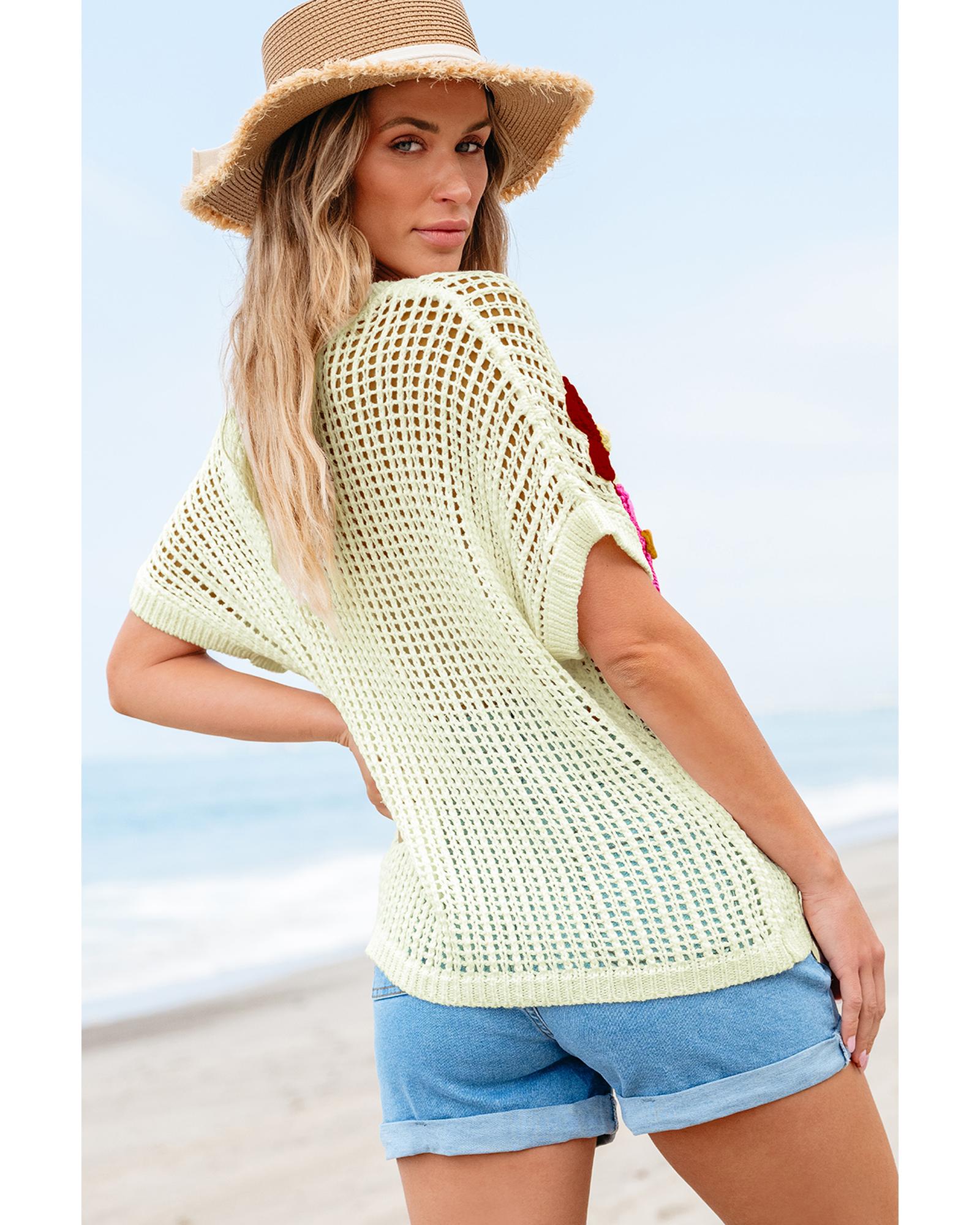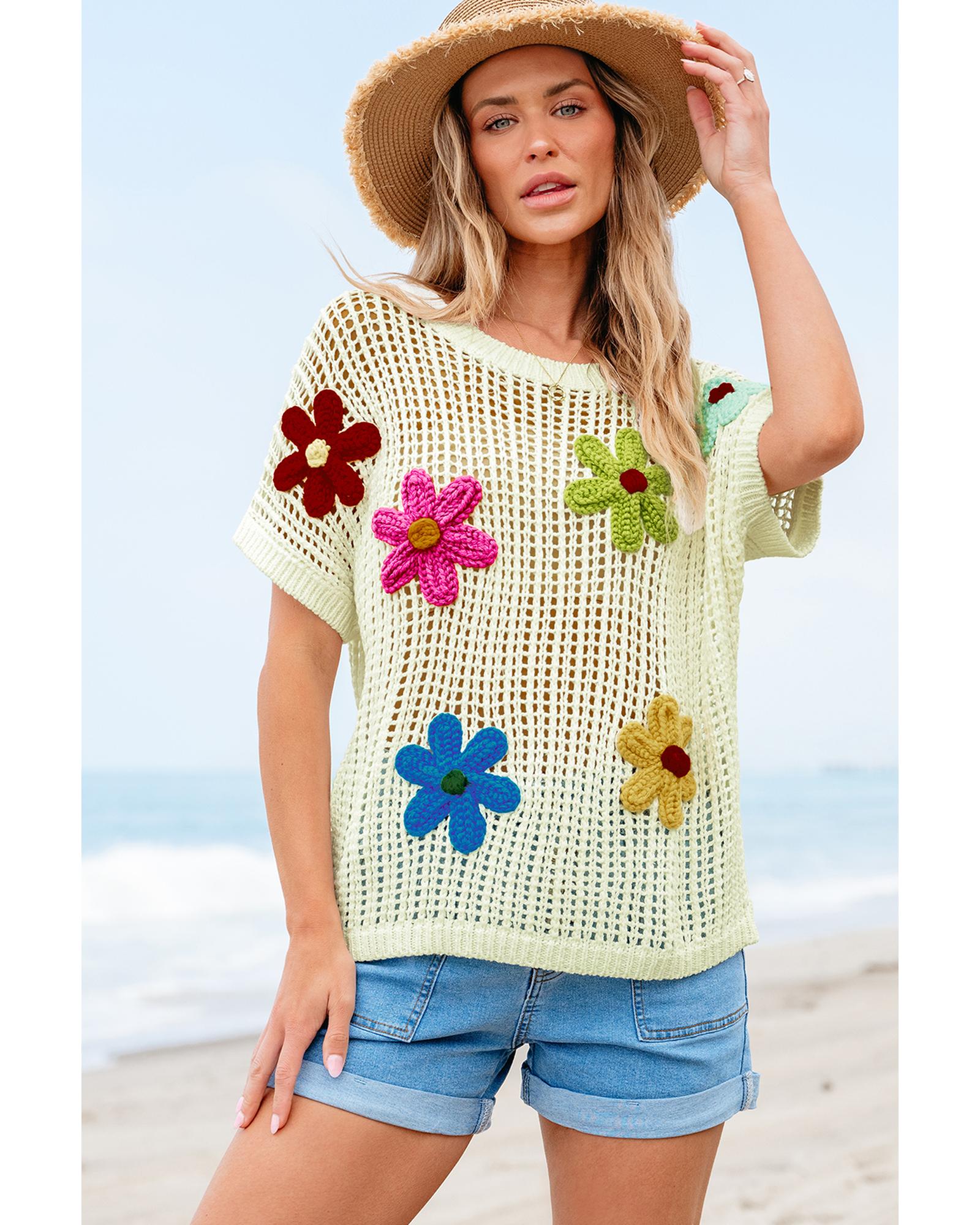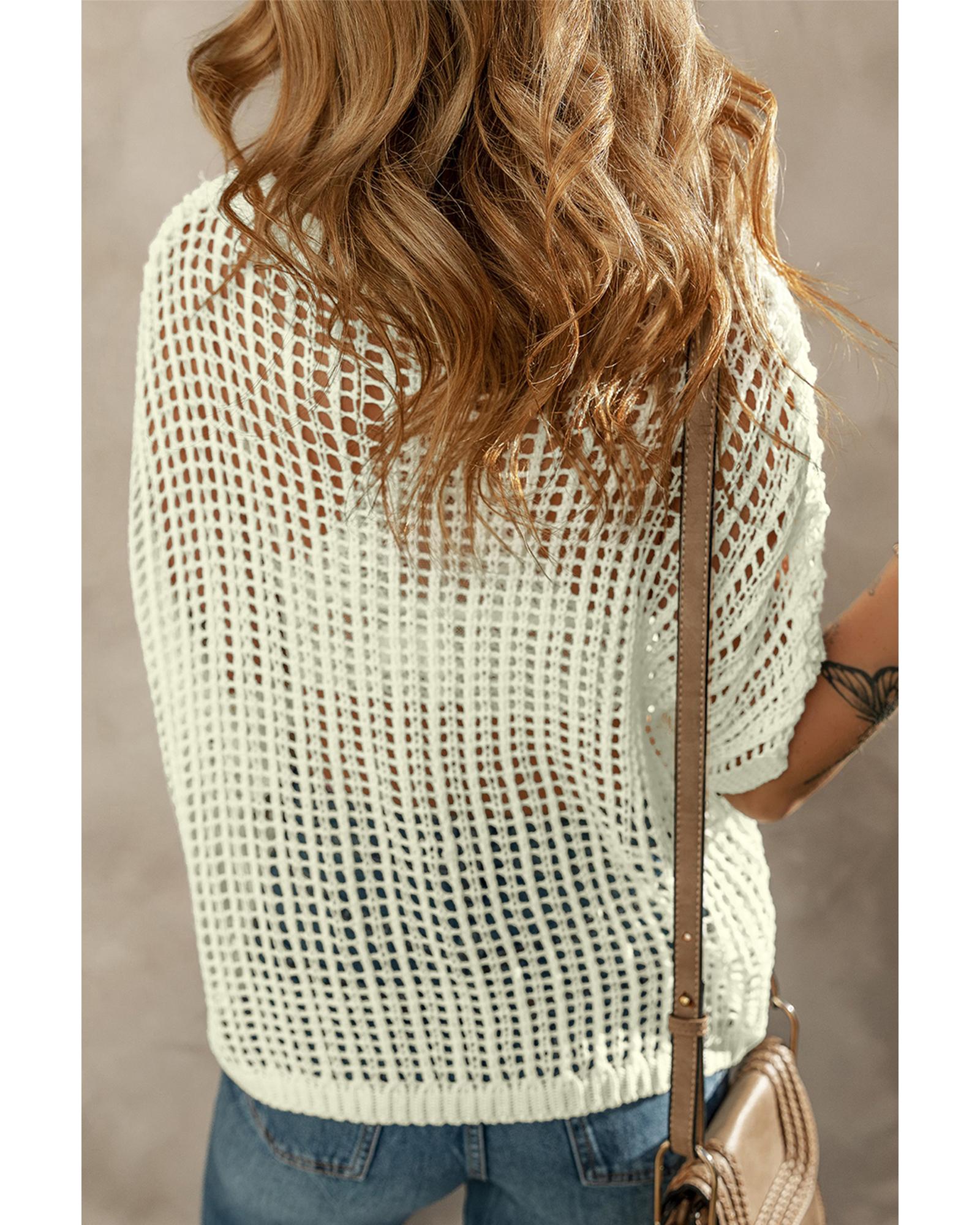 White Crochet Flower Hollow-out Sweater T Shirt – M