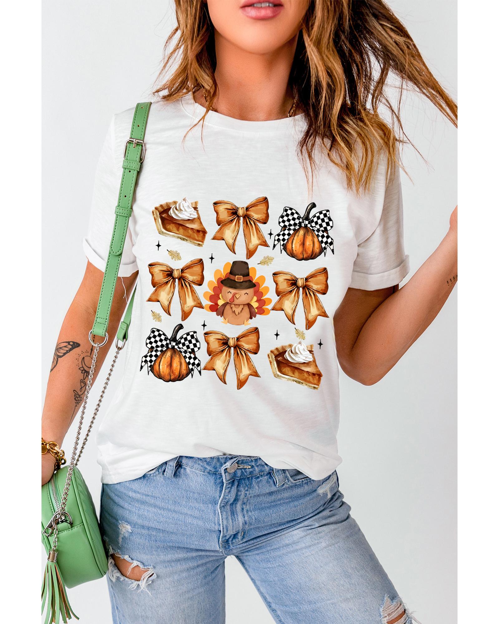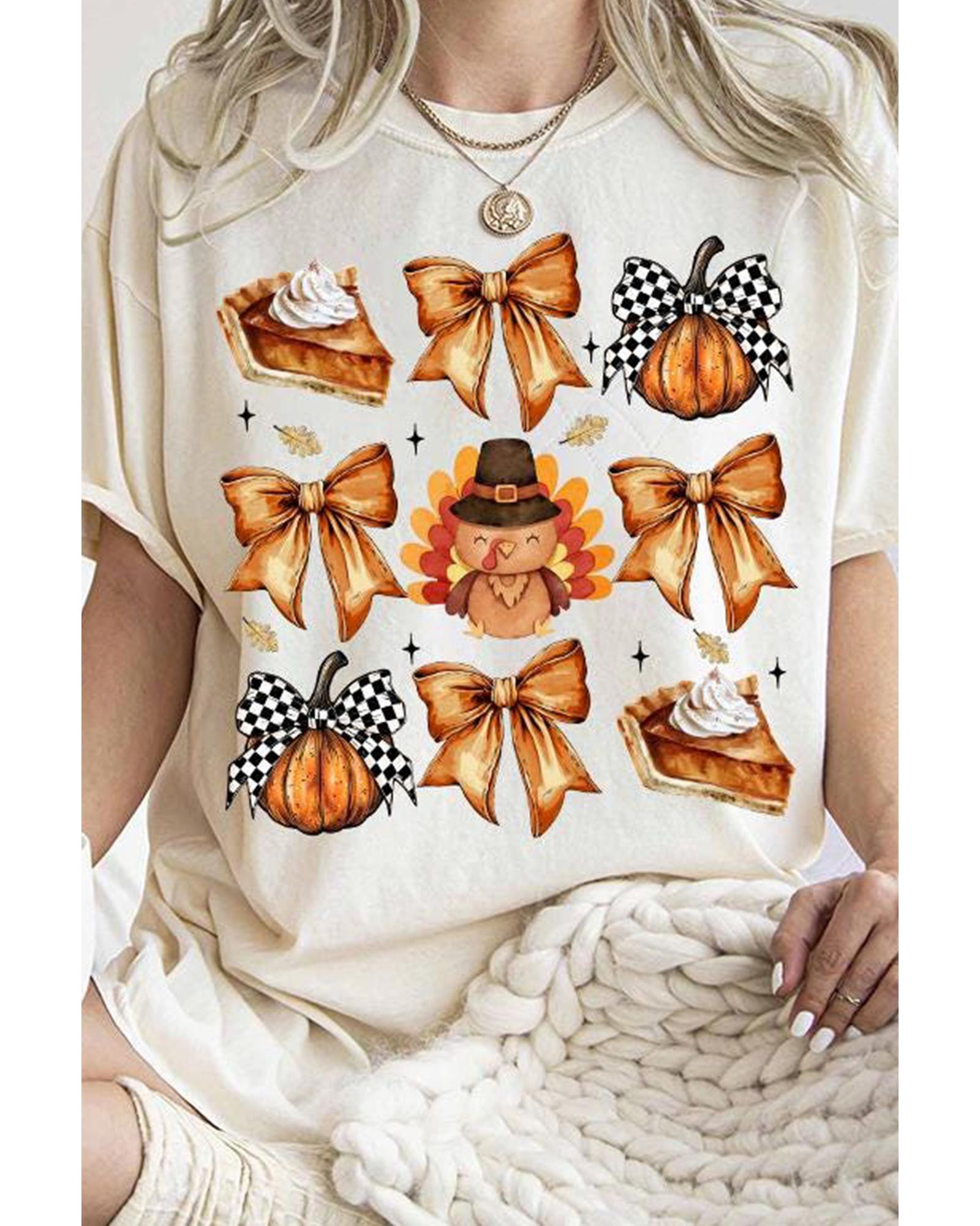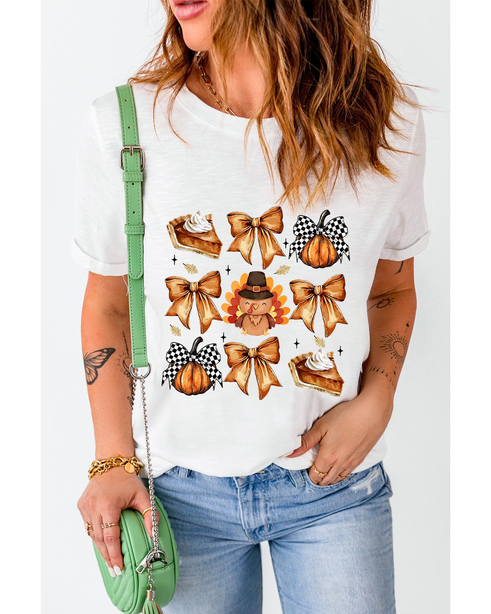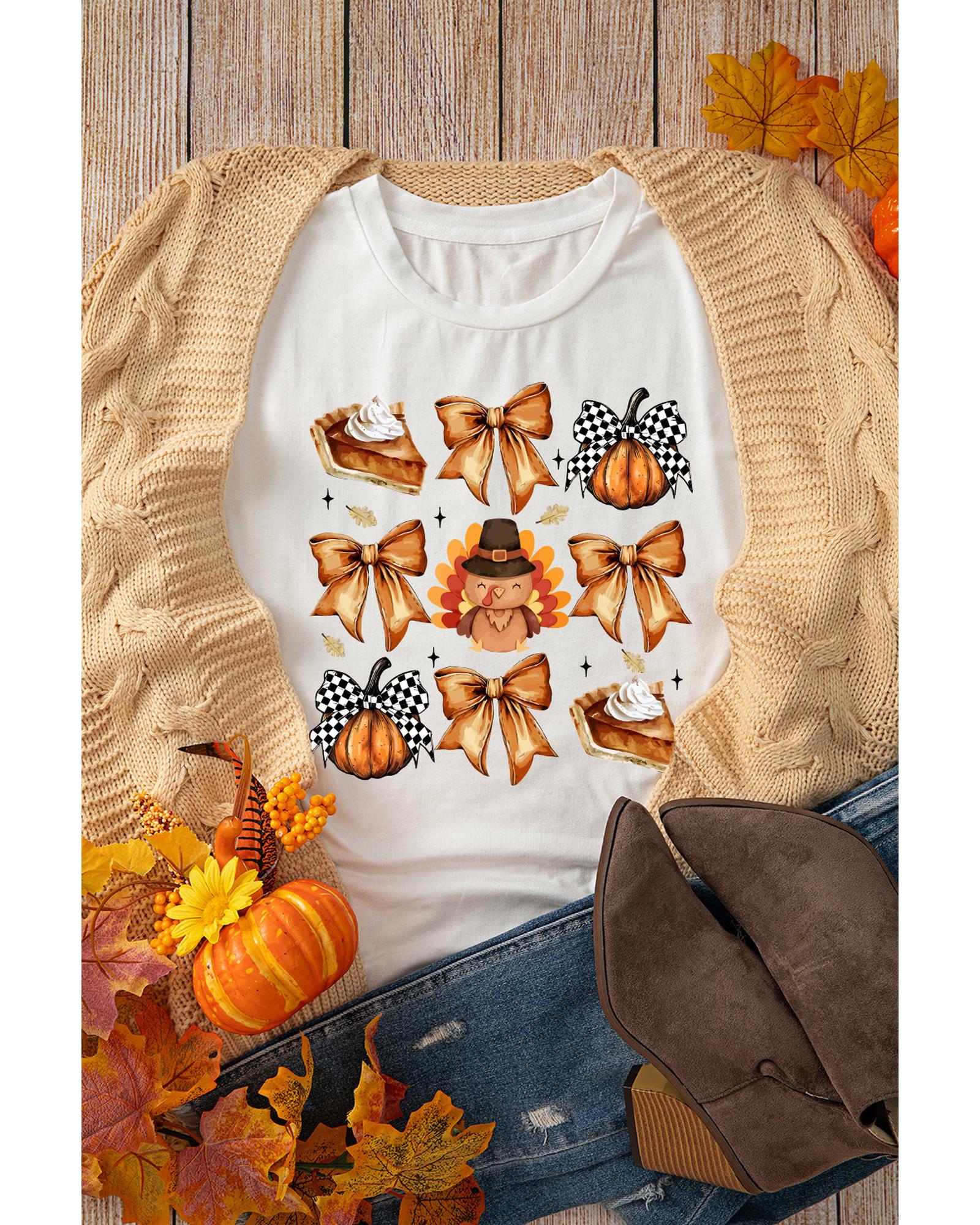 White Cute Bowknot Tanksgiving Graphic Crewneck T Shirt – 3XL