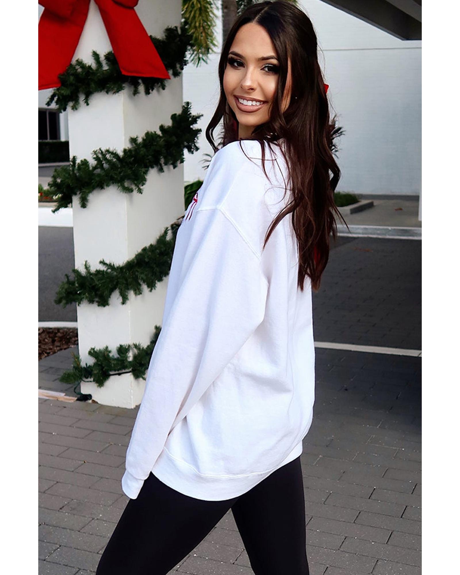 • White Diverse Bow Embroidery Drop Shoulder Sweatshirt