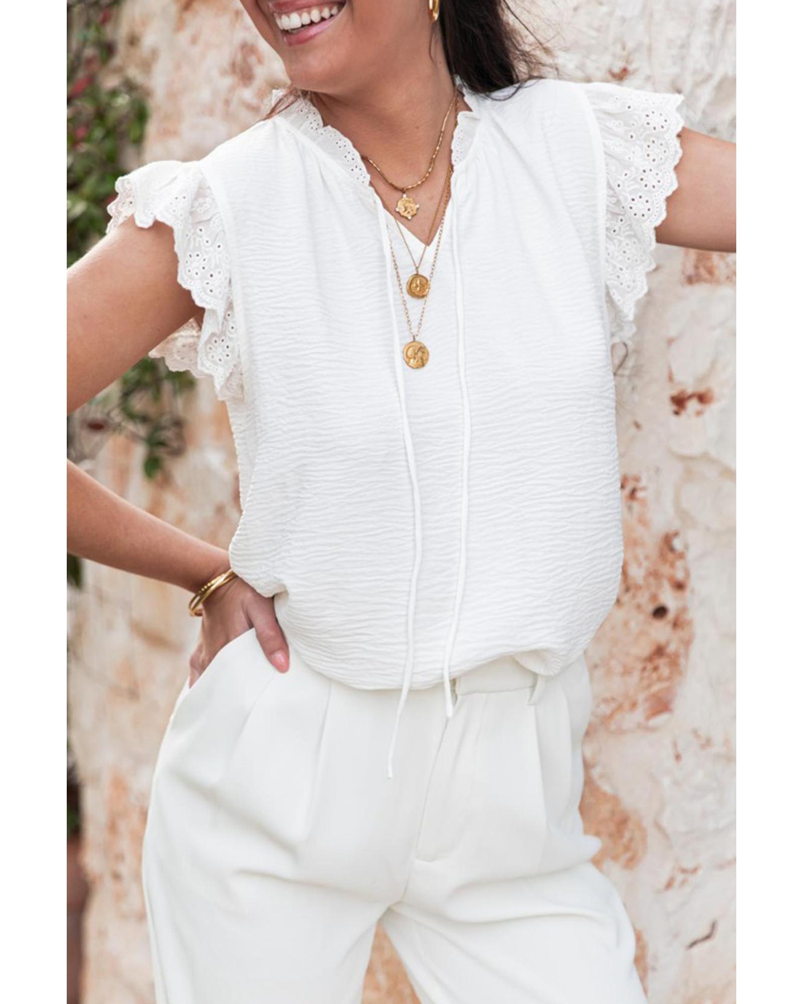 - Intricately embroidered edge adds an elegant twist to the blouse