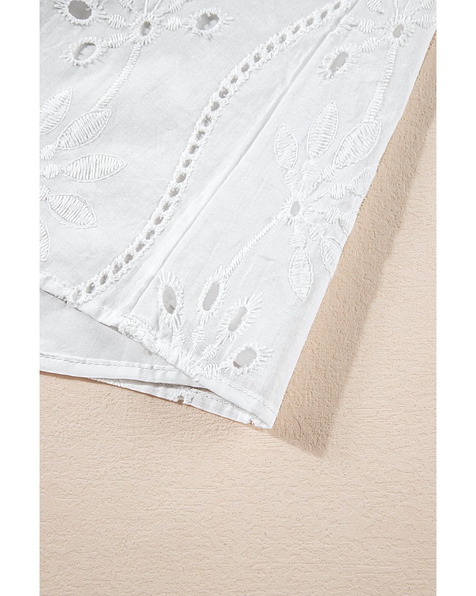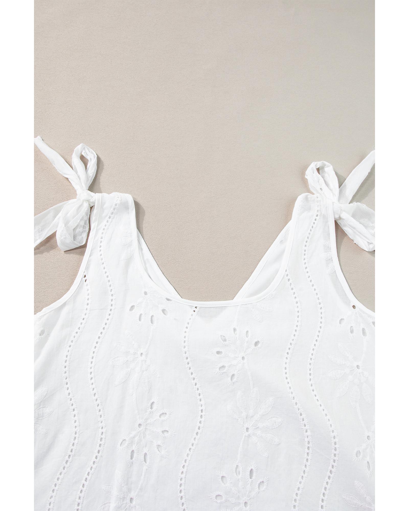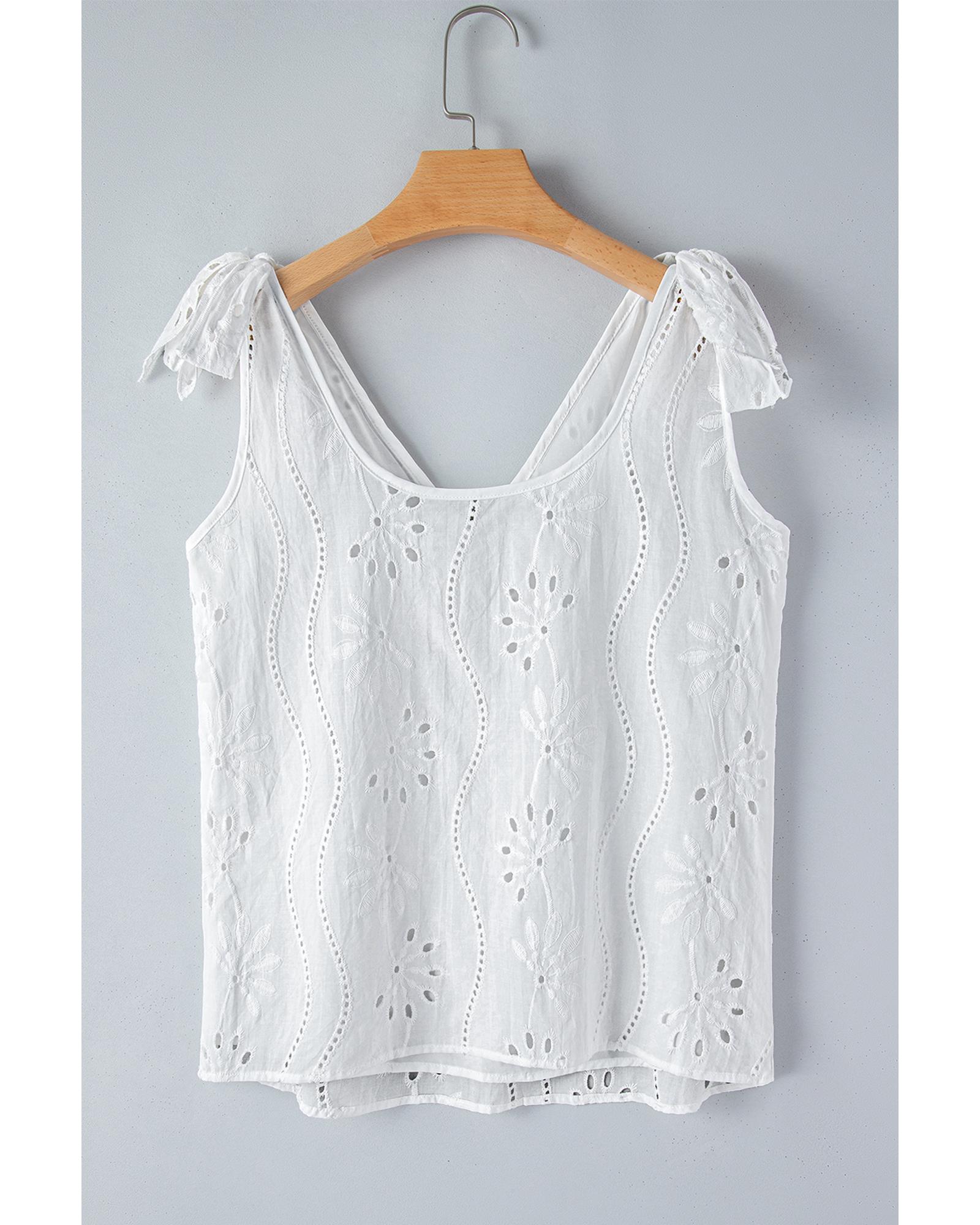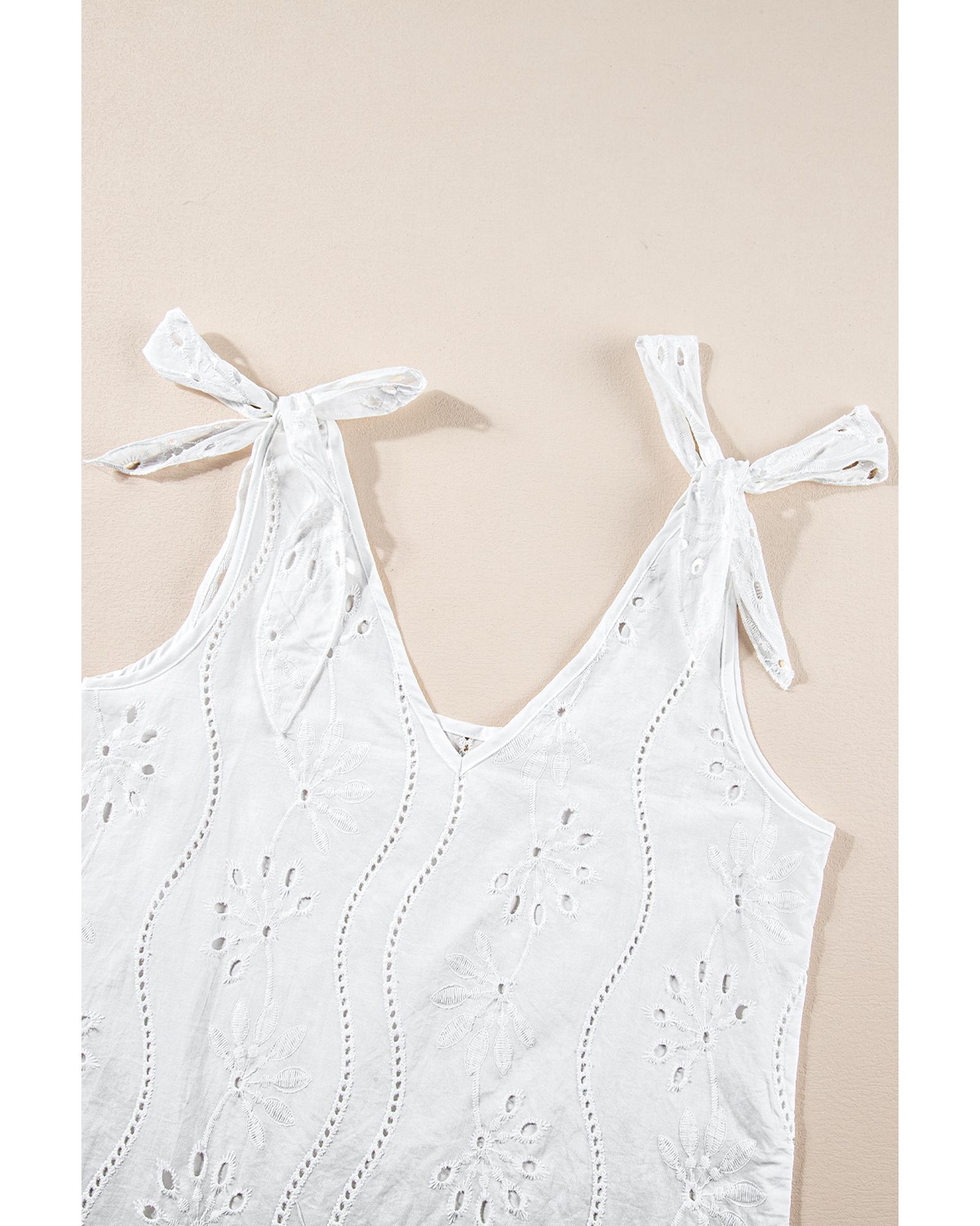 White Embroidery Patterned Knotted Straps V Neck Tank Top – XL