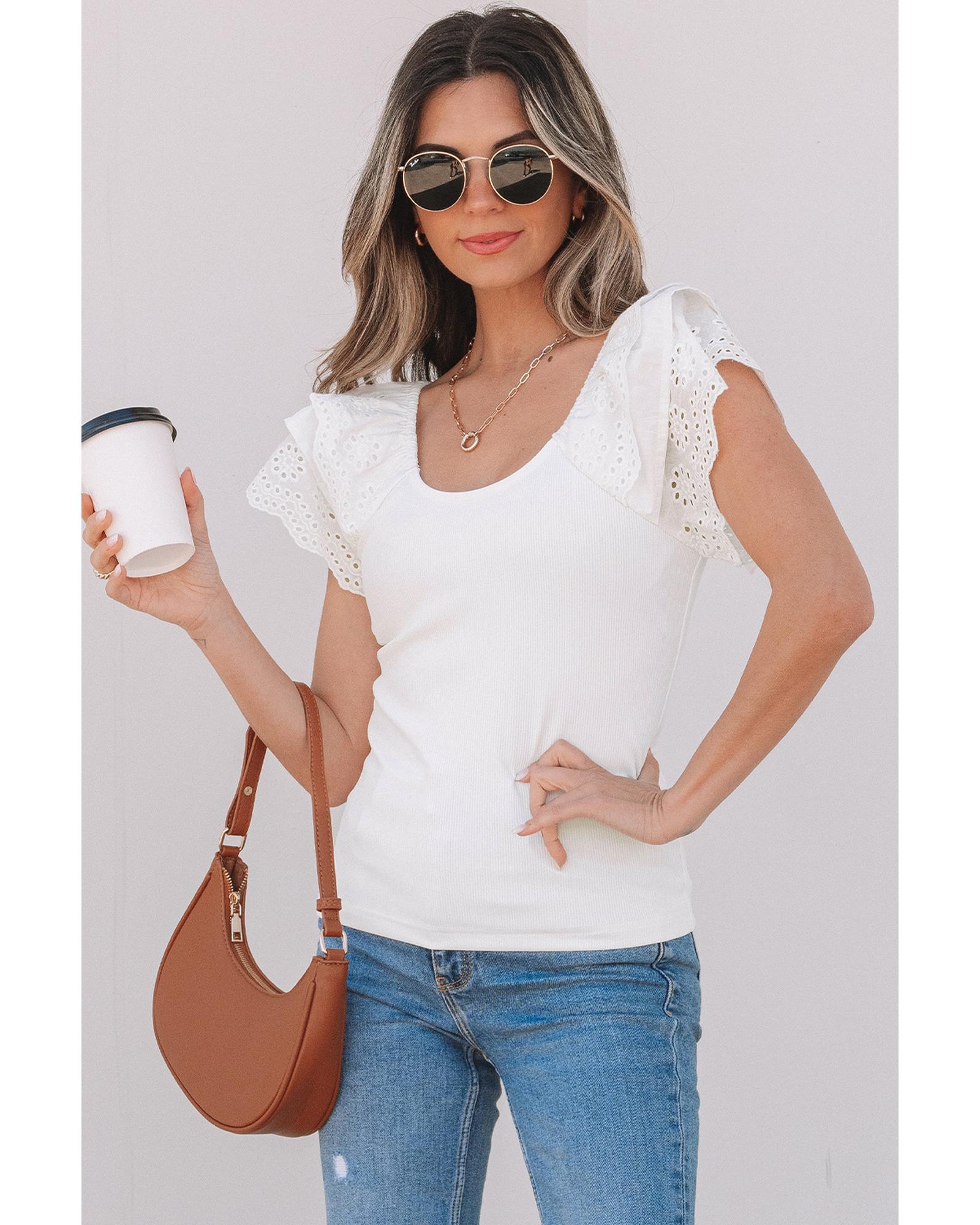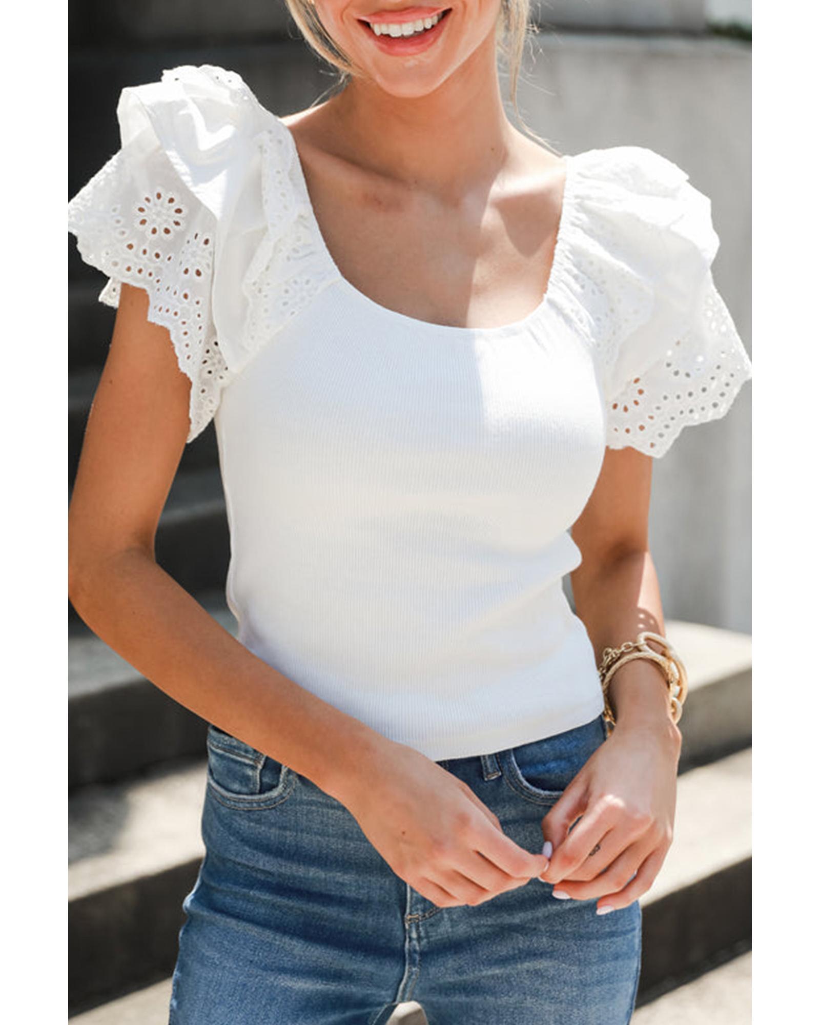 White Eyelet Ruffle Sleeve Slim Fitted Top – 2XL