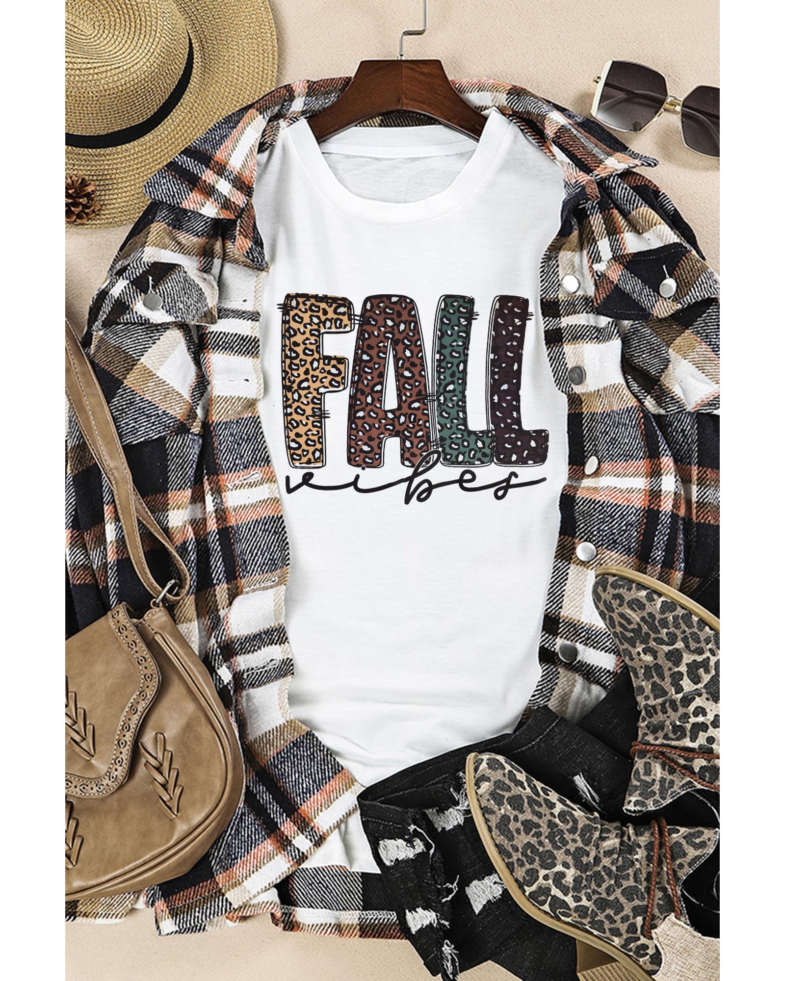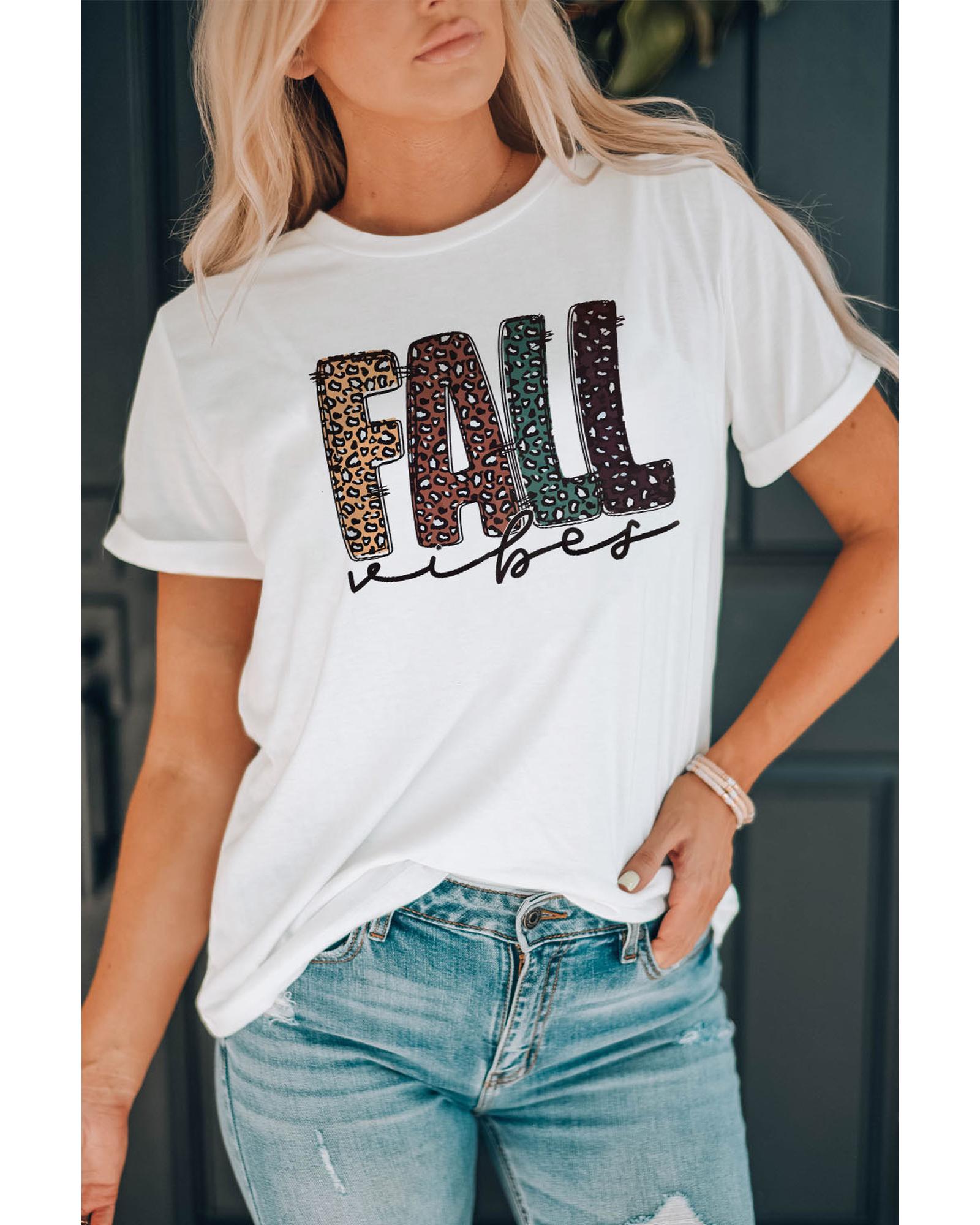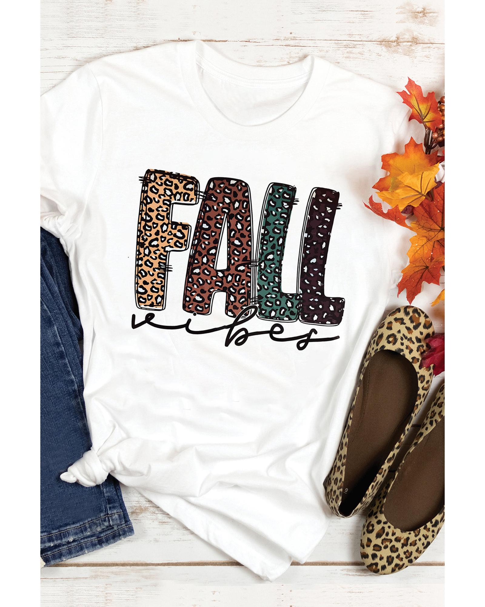 White FALL Vibe Leopard Print Crew Neck T Shirt – XL