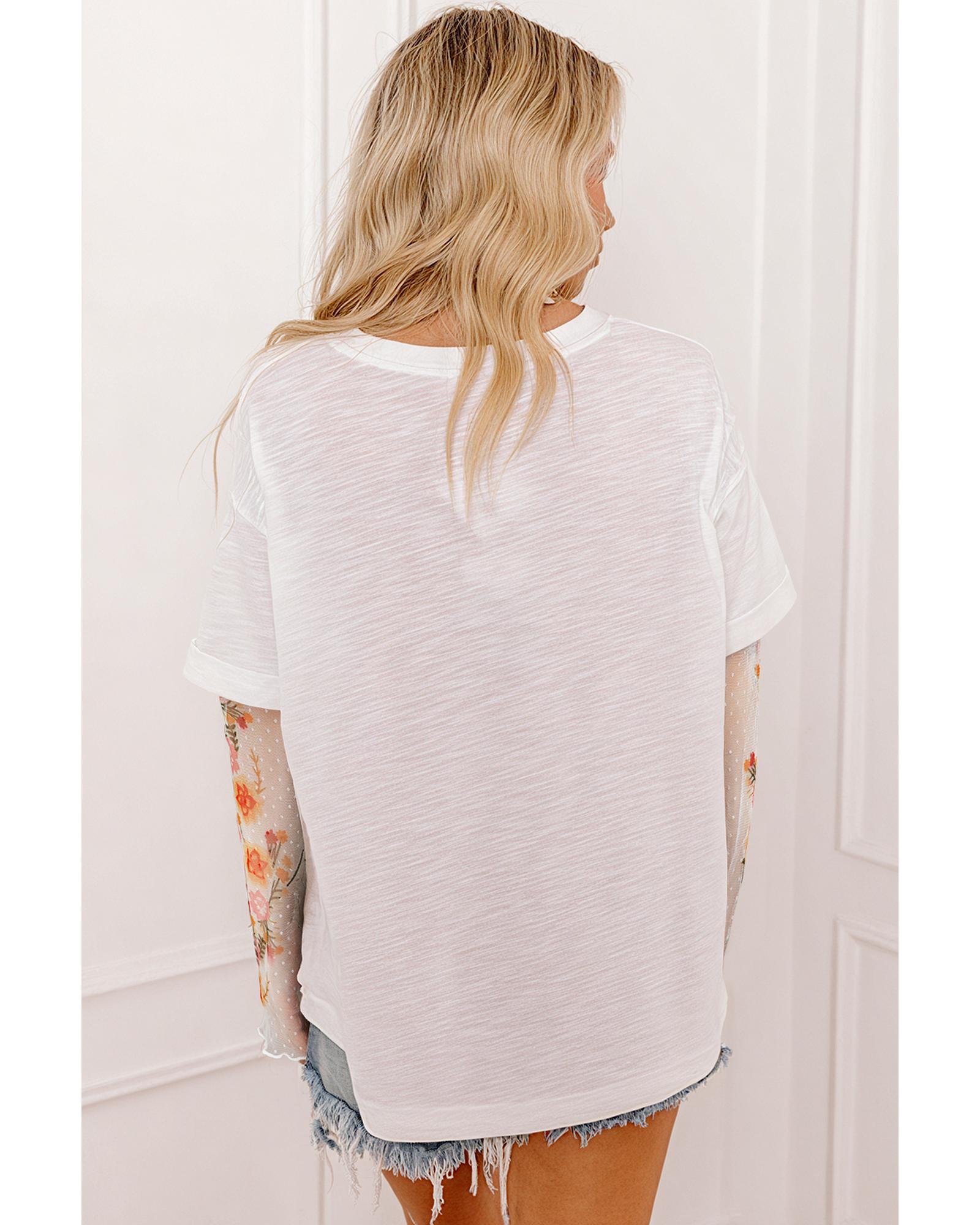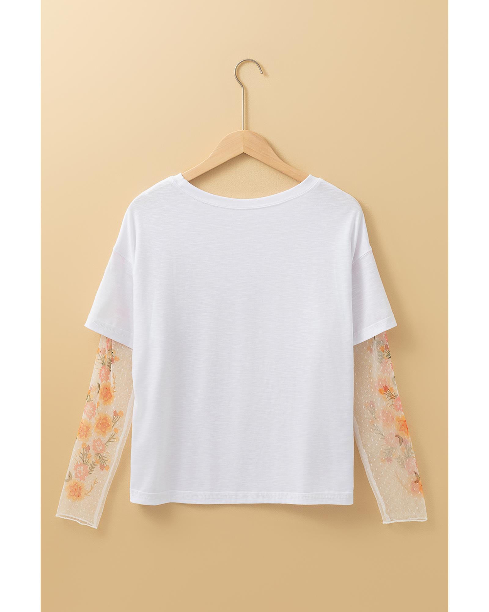 White Faux Two Piece Floral Long Sleeve Patchwork Tee – M