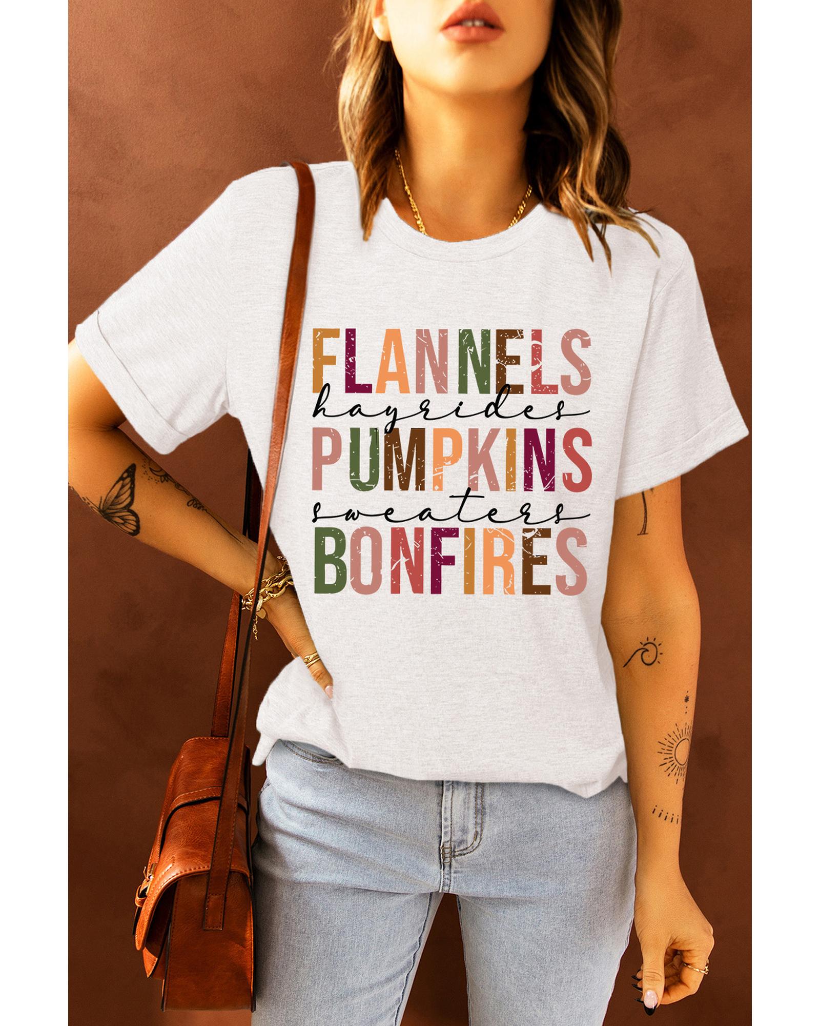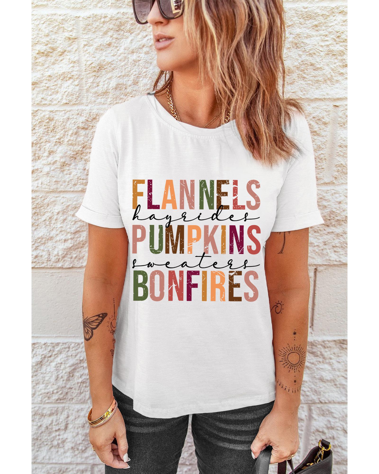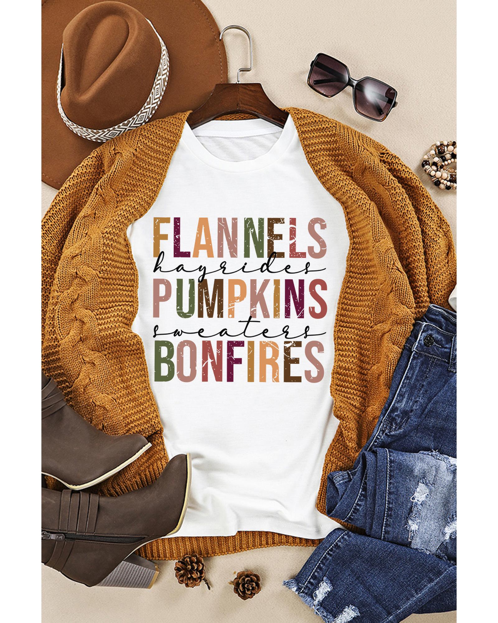 White FLANNELS PUMPKINS BONFIRES Crewneck Graphic Tee – M