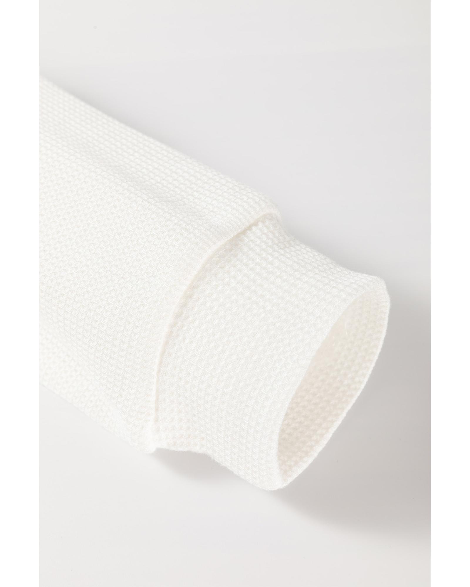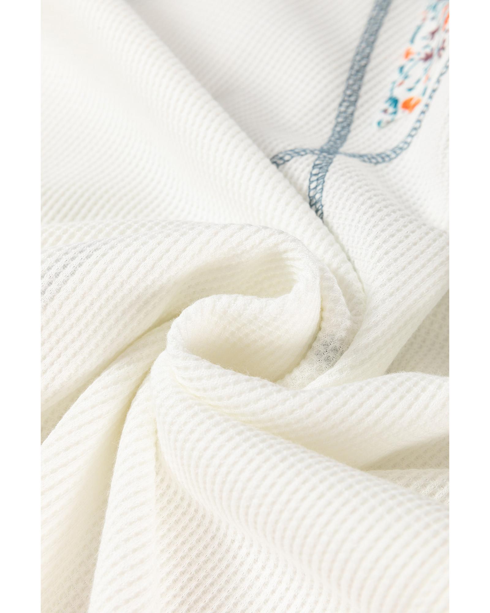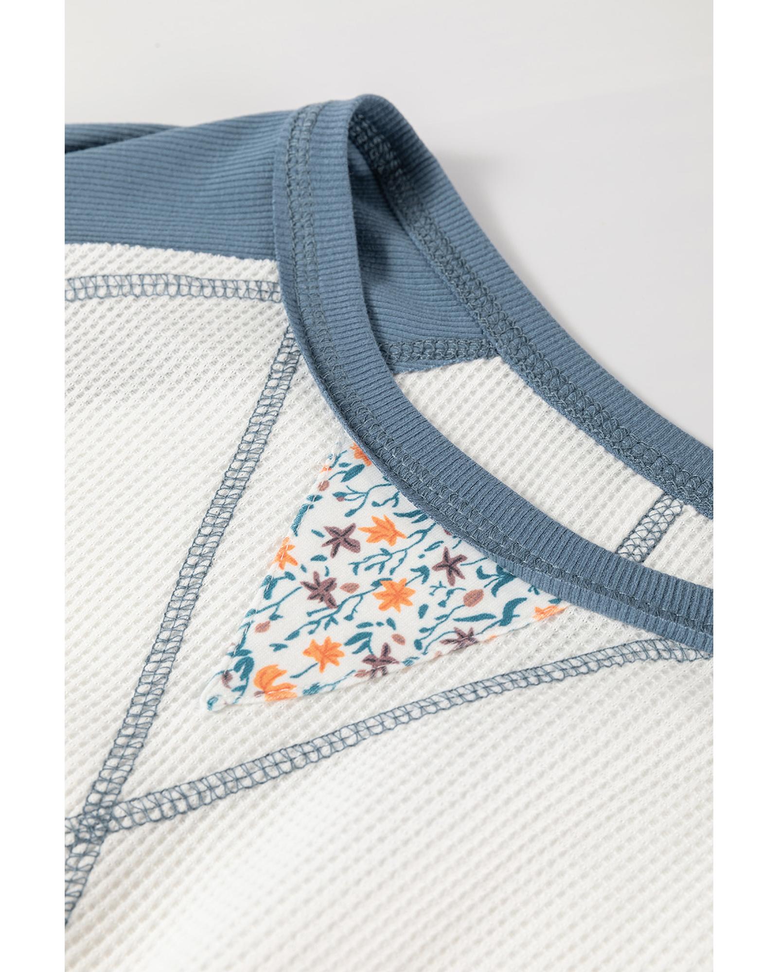 White Floral Patchwork Waffle Knit Raglan Top – L