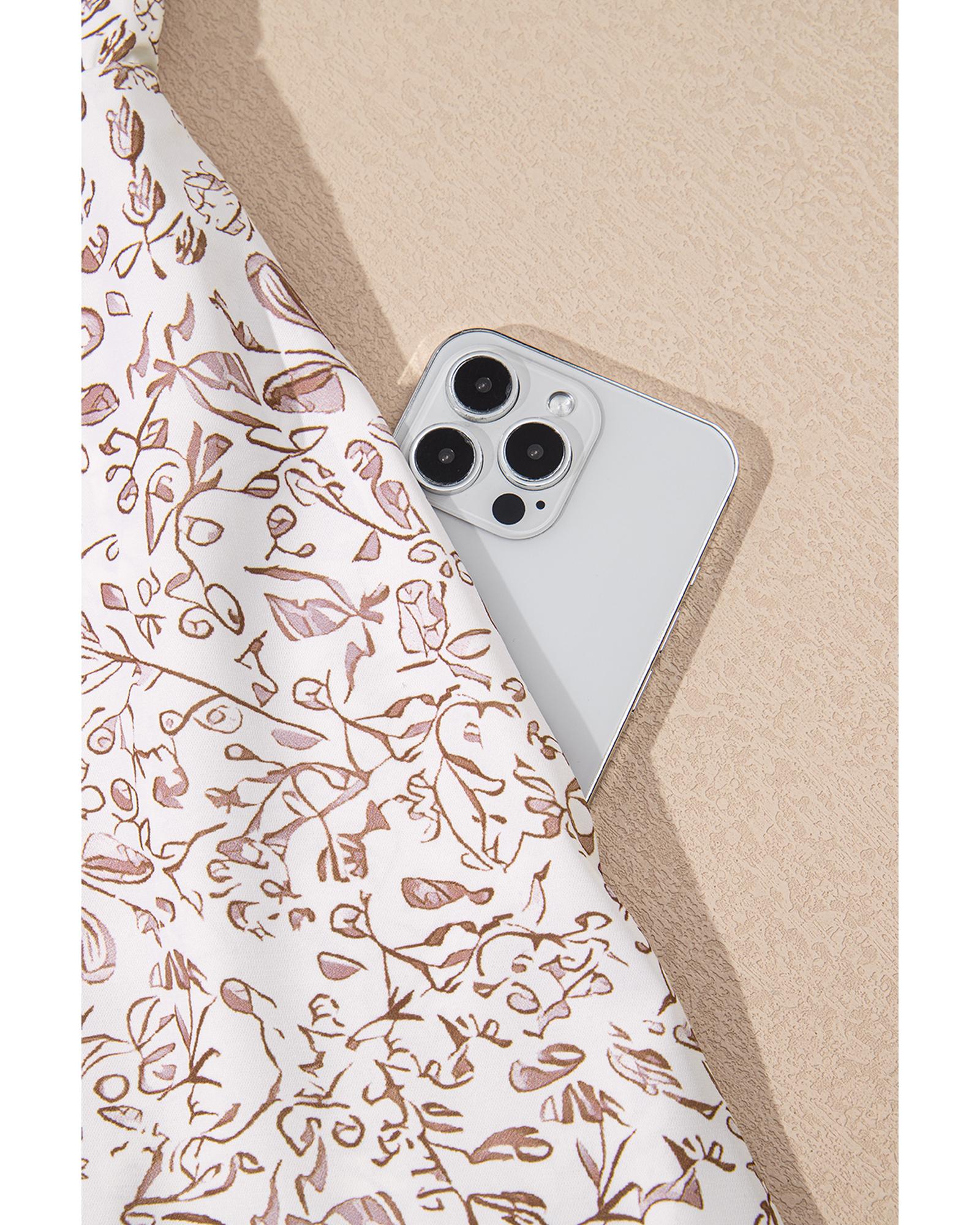- White Floral V Neck Ruffled Short Sleeve Plus Size Dress