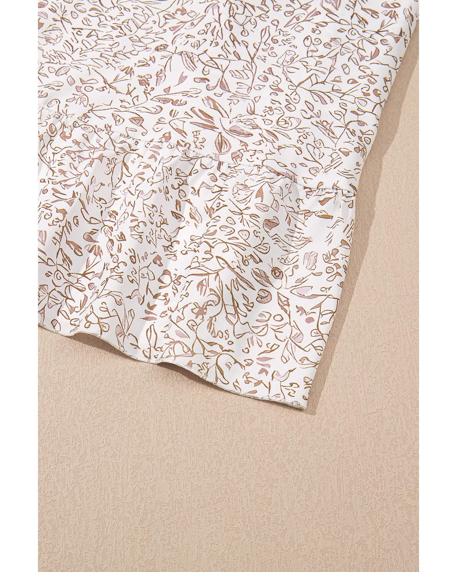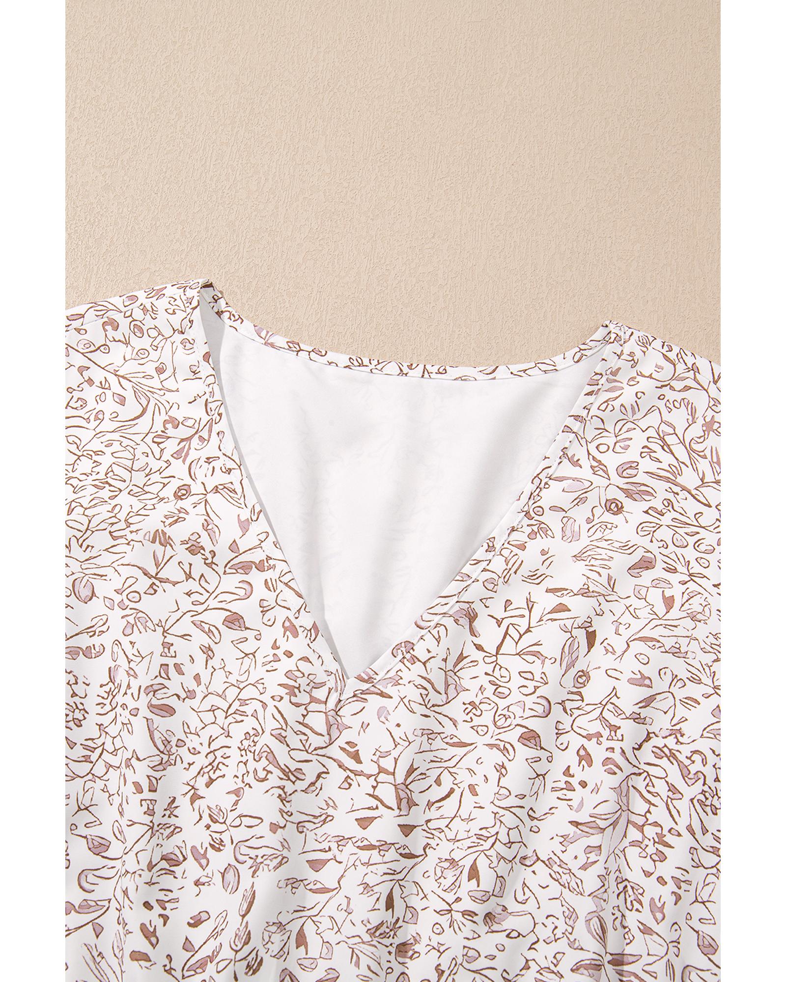 - White Floral V Neck Ruffled Short Sleeve Plus Size Dress