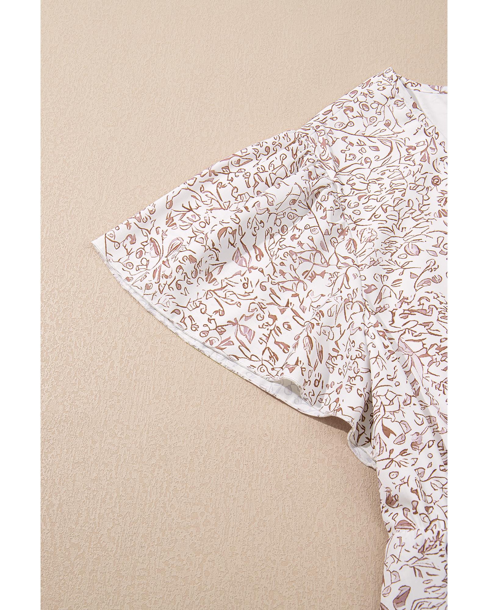 White Floral V Neck Ruffled Short Sleeve Plus Size Dress – 4X