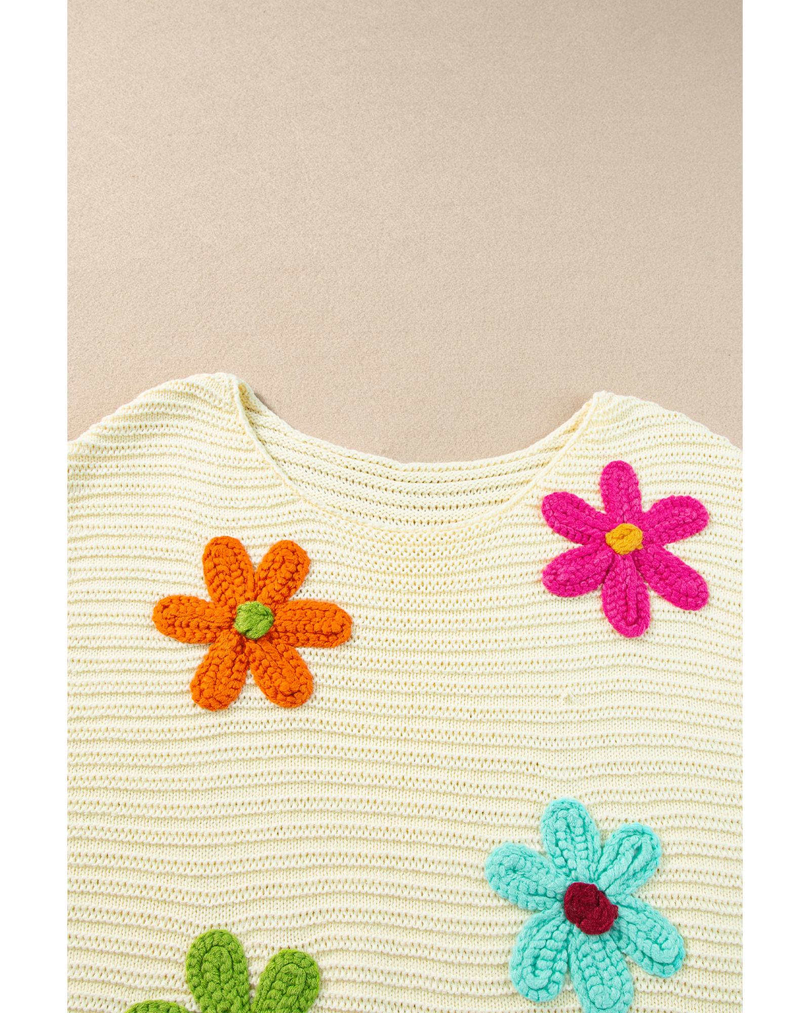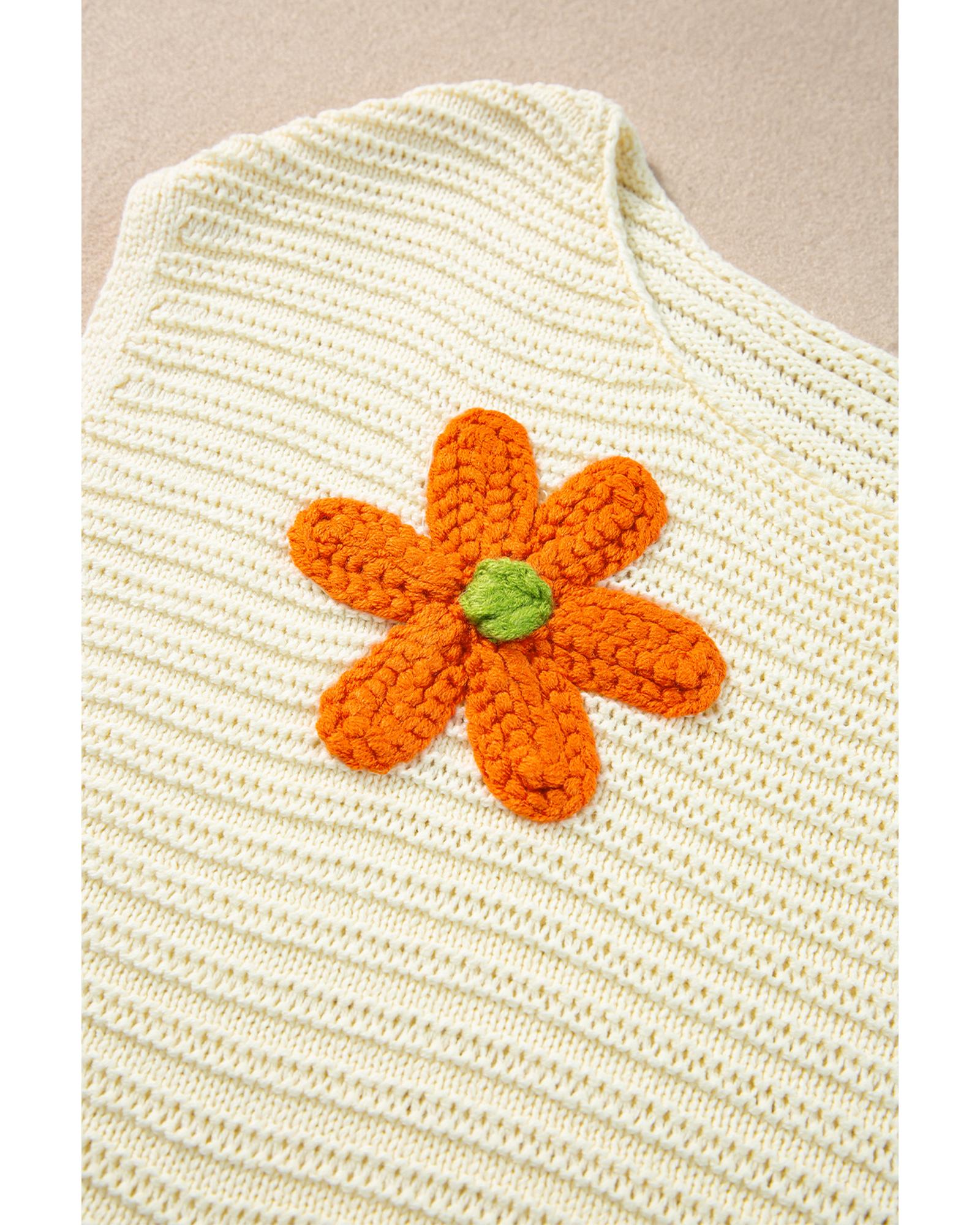 - White Flower Crochet Round Neck Knitted Top