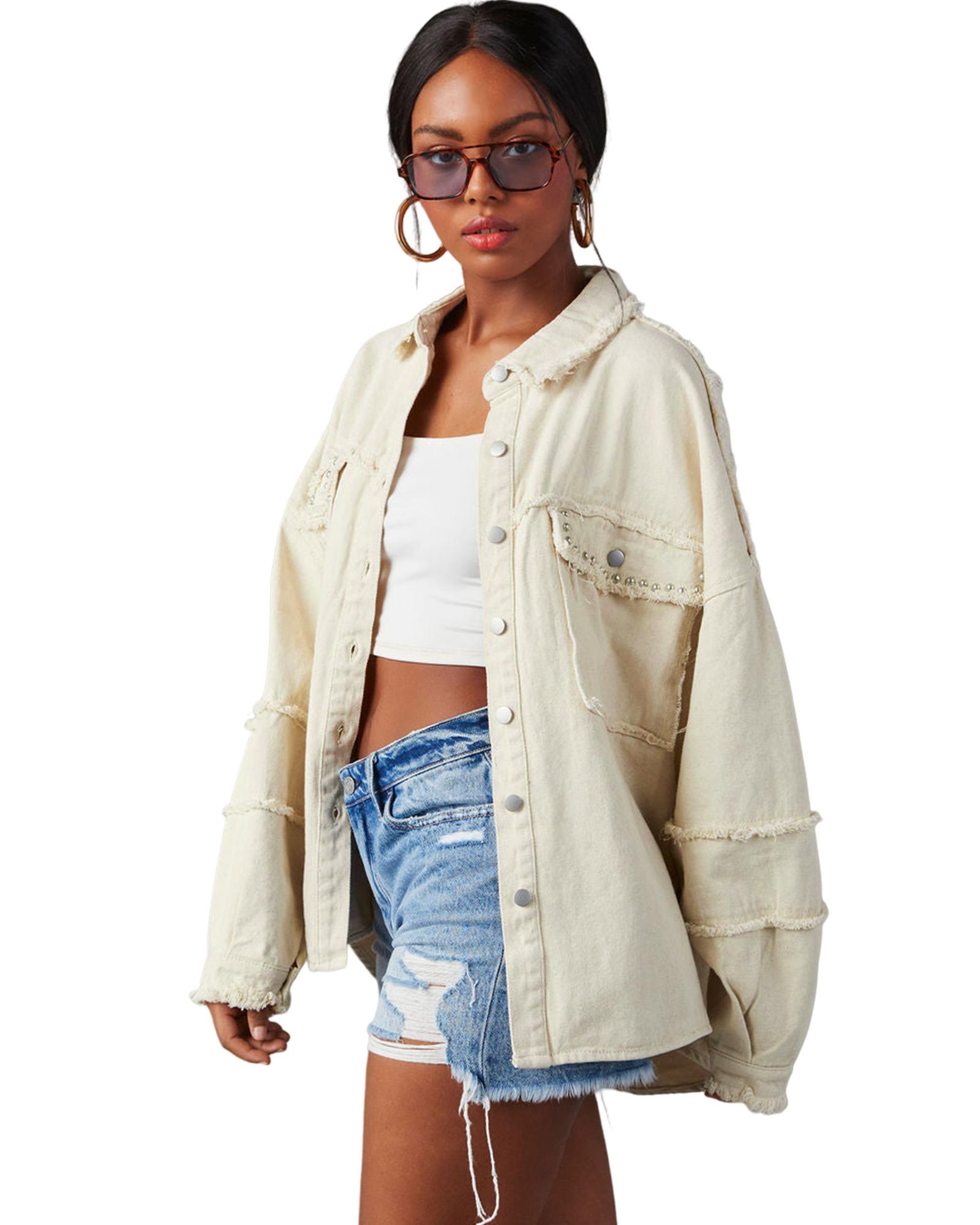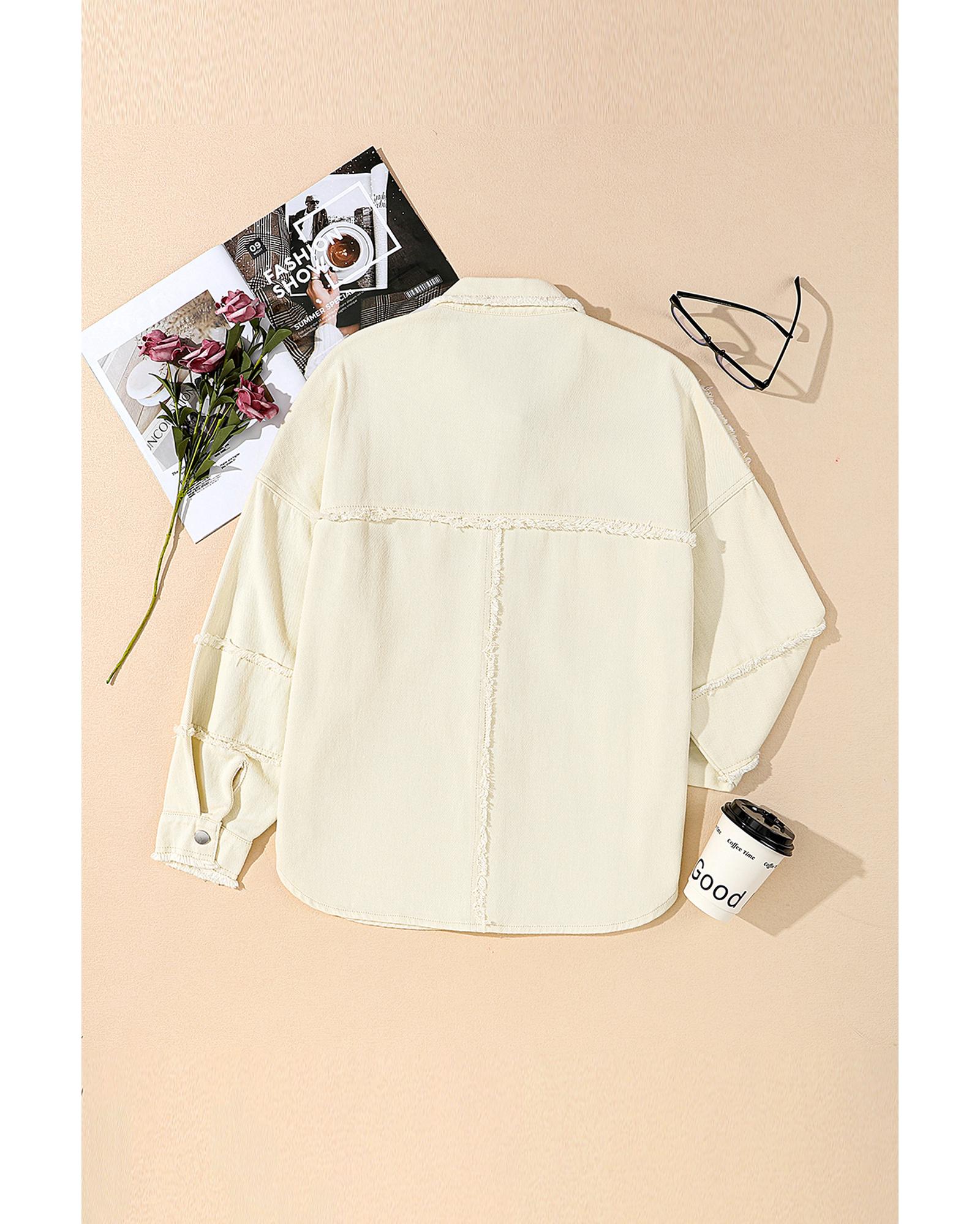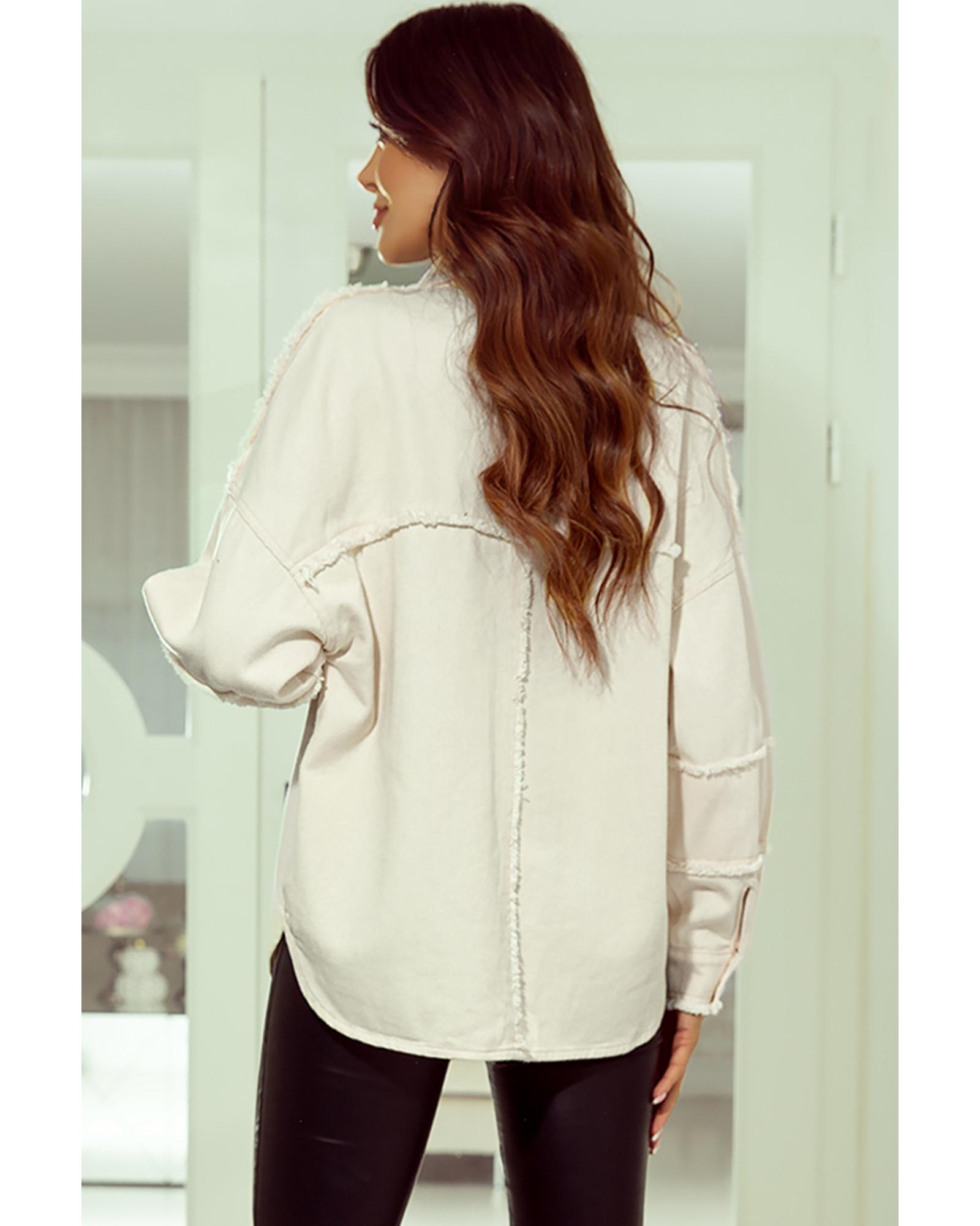 White Frayed Exposed Seam Denim Jacket – S