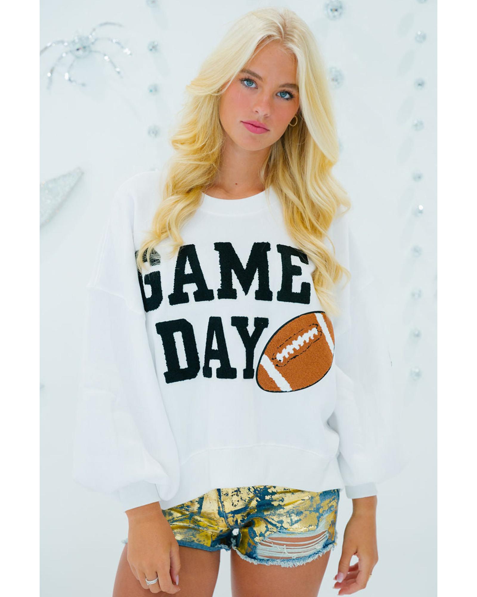 White GAME DAY Graphic Varsity Pullover Sweatshirt – L