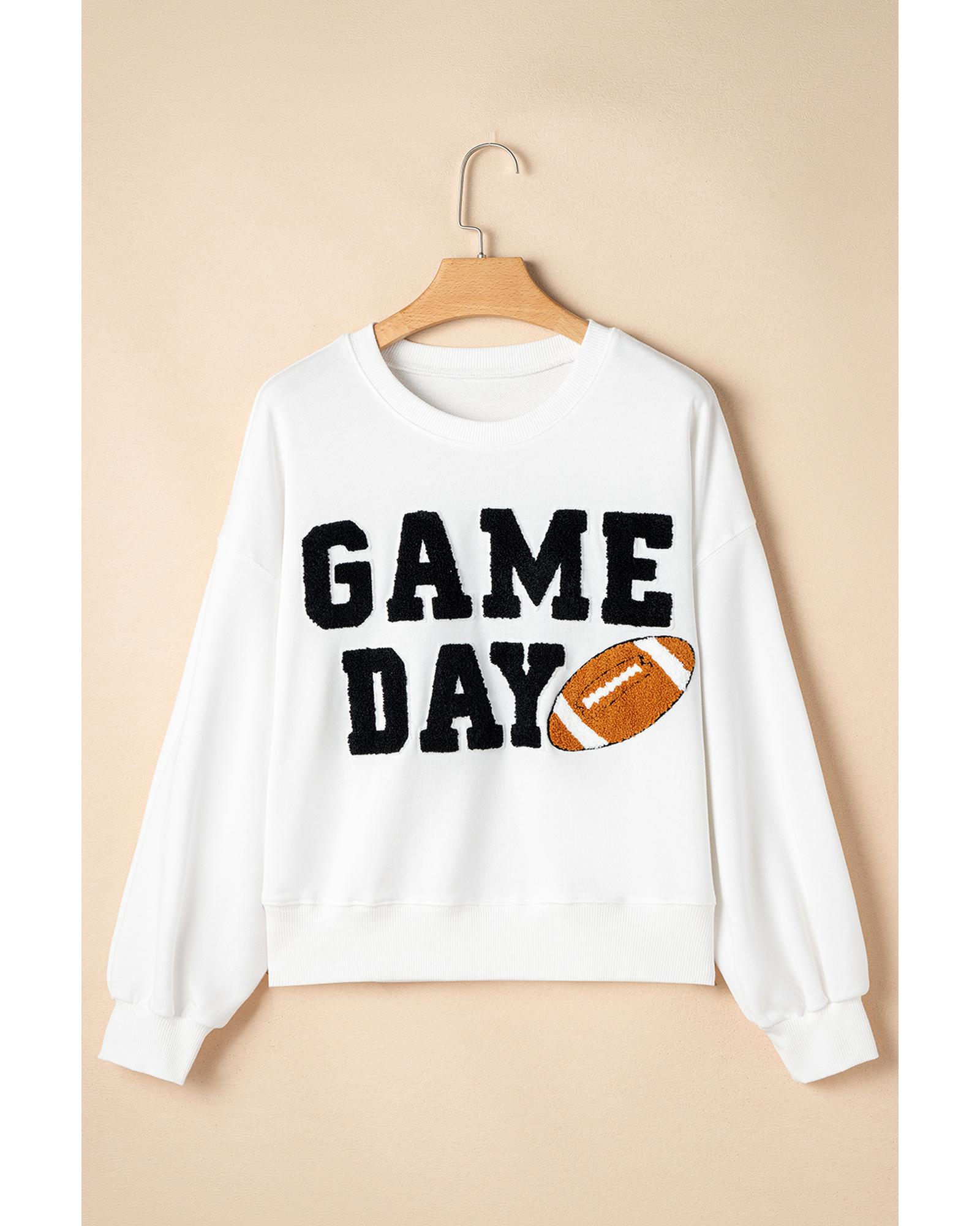 White GAME DAY Graphic Varsity Pullover Sweatshirt – M