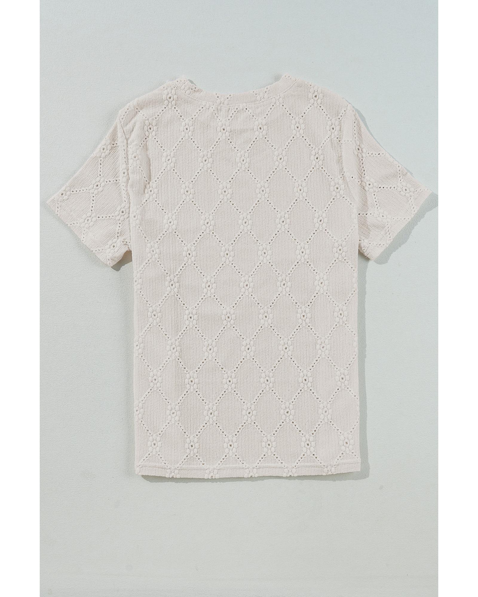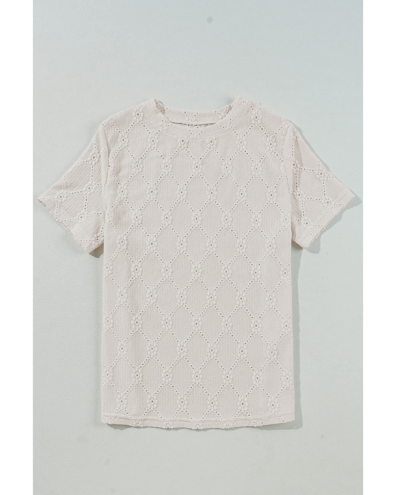 White Geometric Embroidered Slim Fit O Neck T Shirt – L