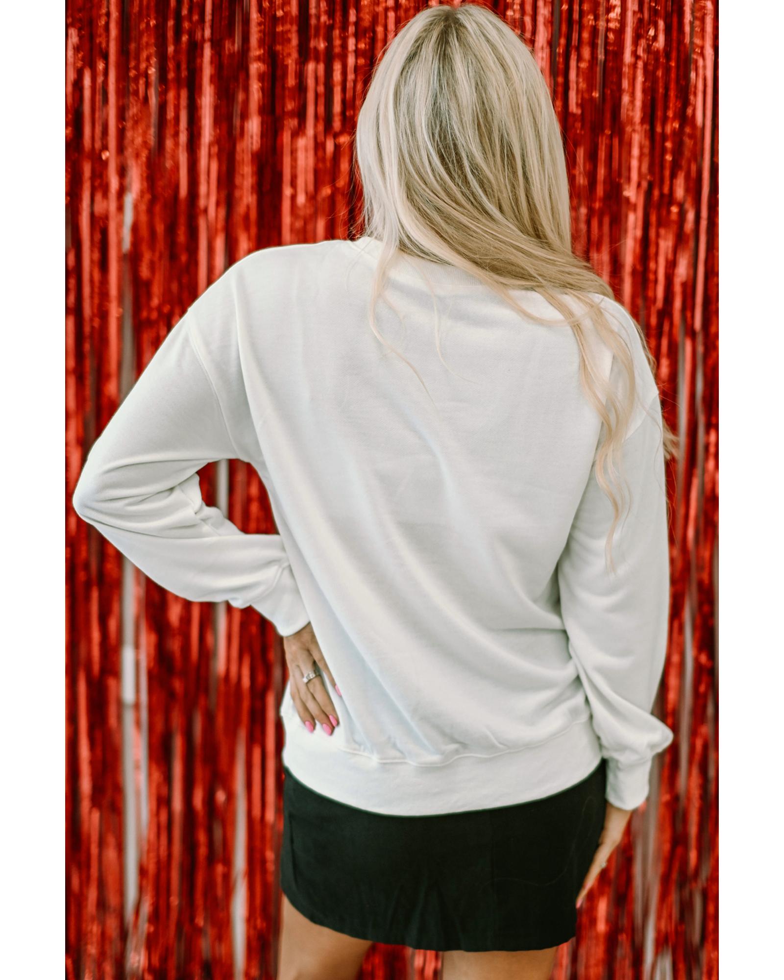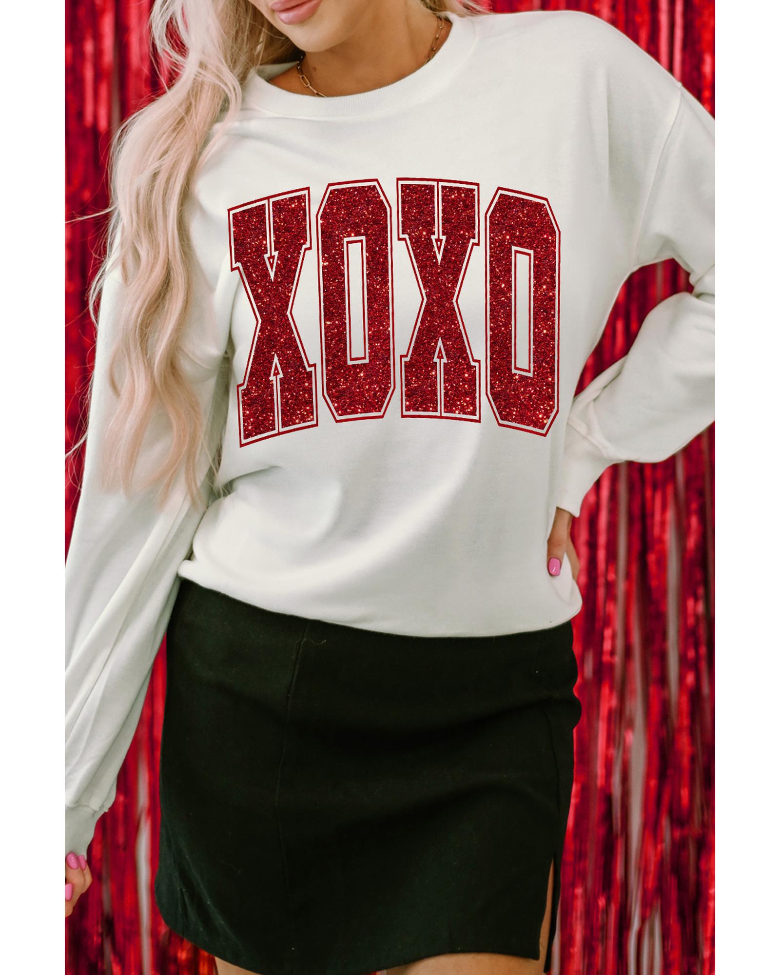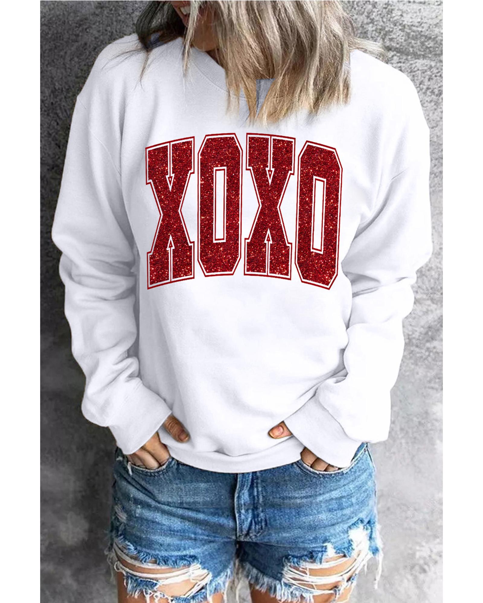 White Glitter XOXO Graphic Crewneck Valentines Pullover Sweatshirt – S