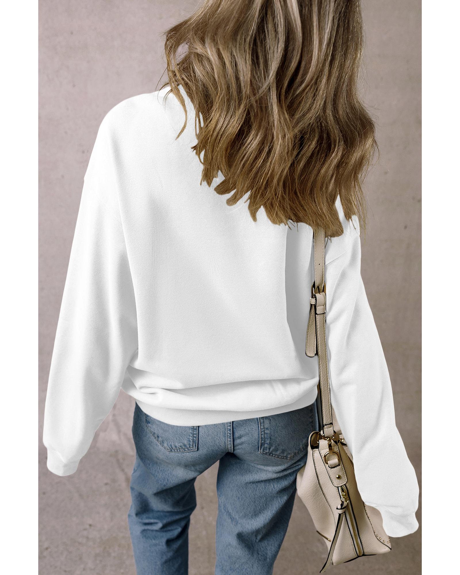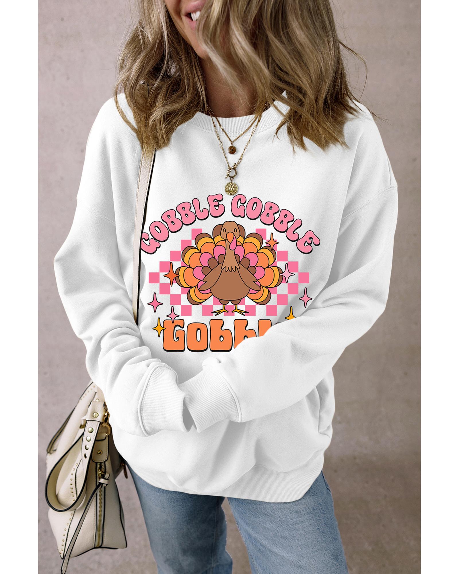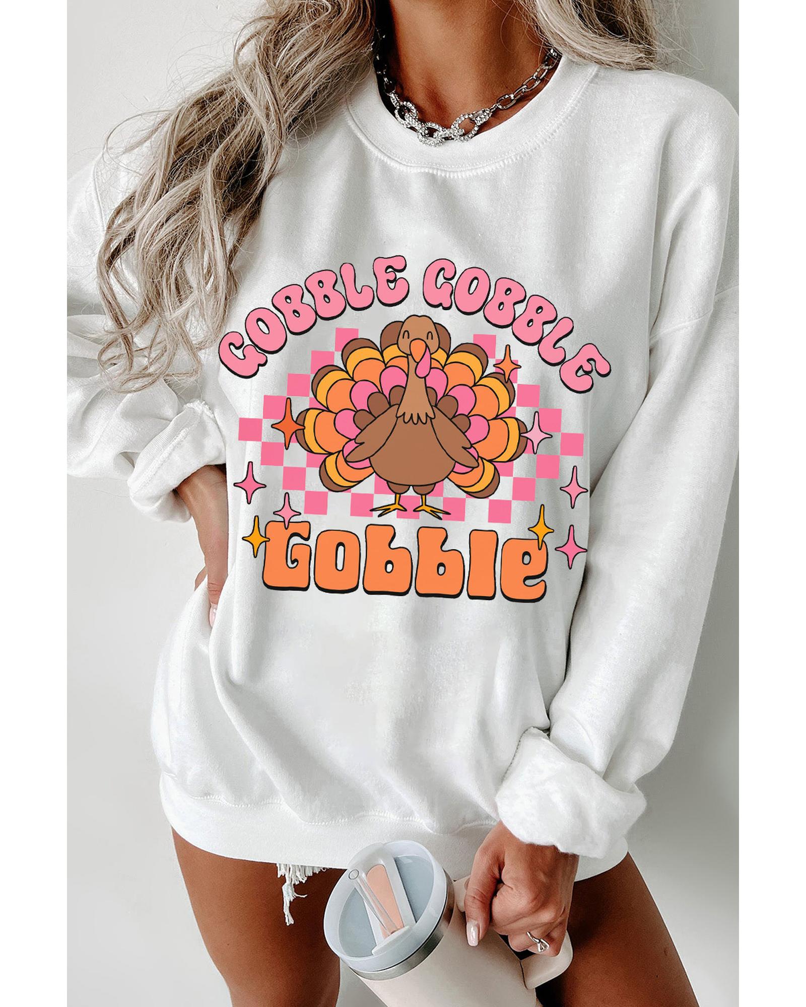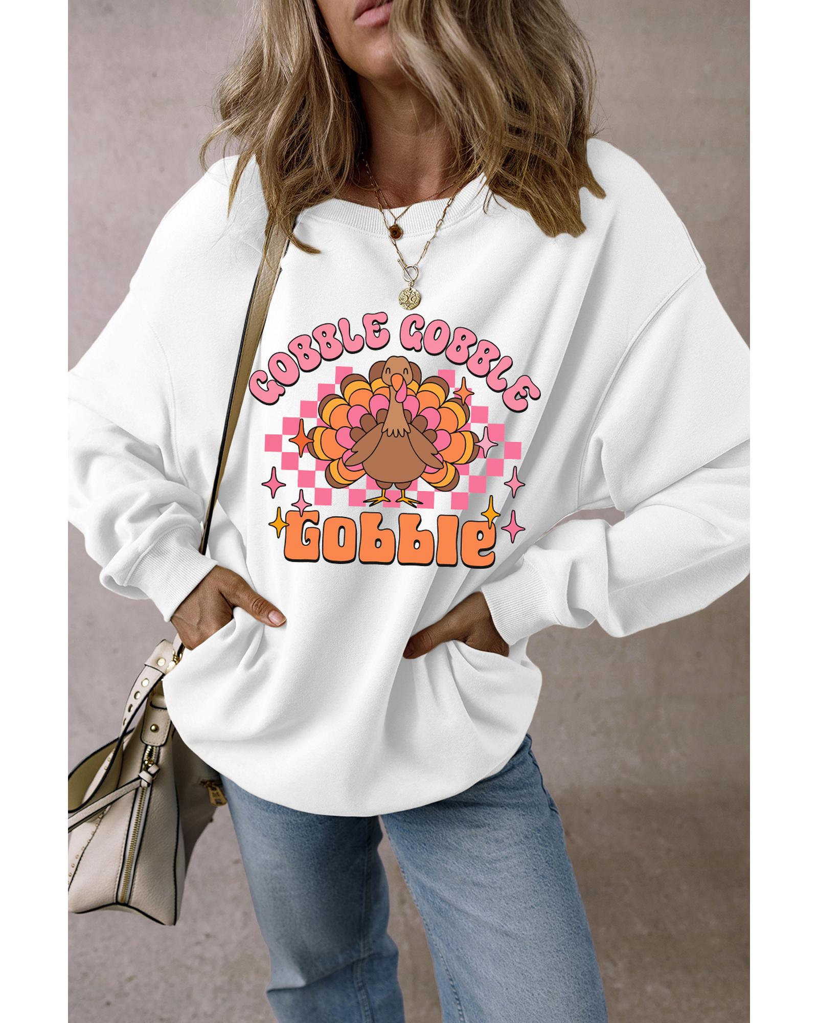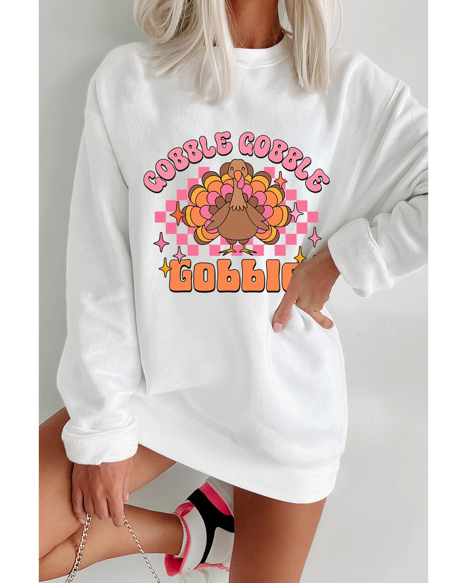 White Gobble Gobble Turkey Graphic Crewneck Thanksgiving Sweatshirt – S
