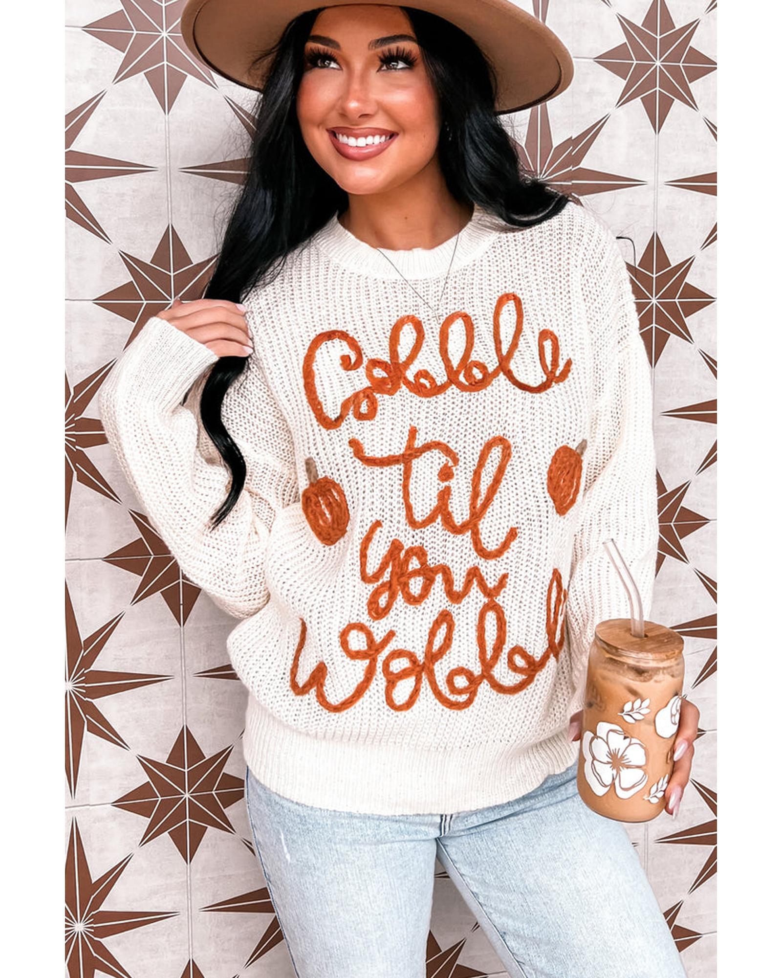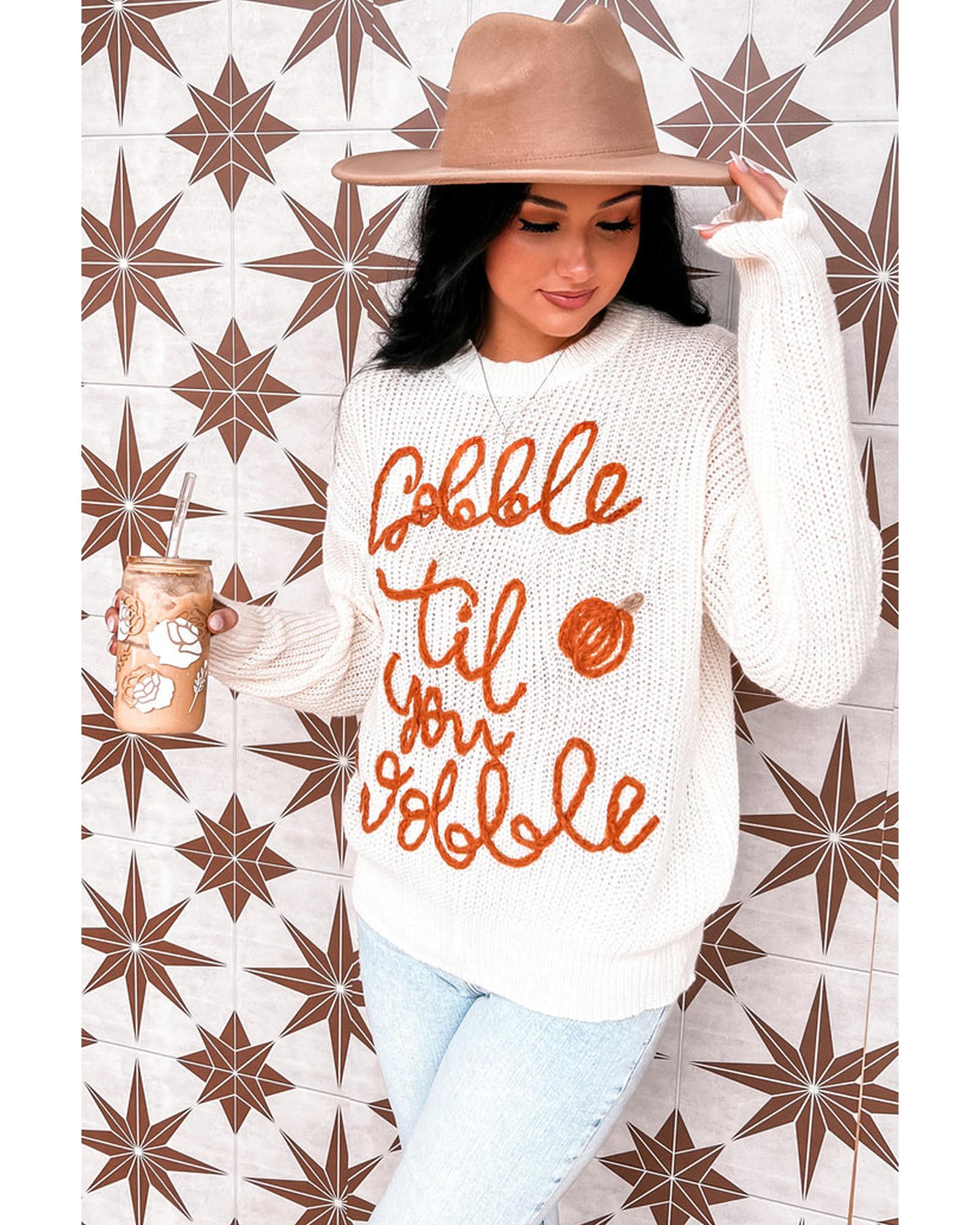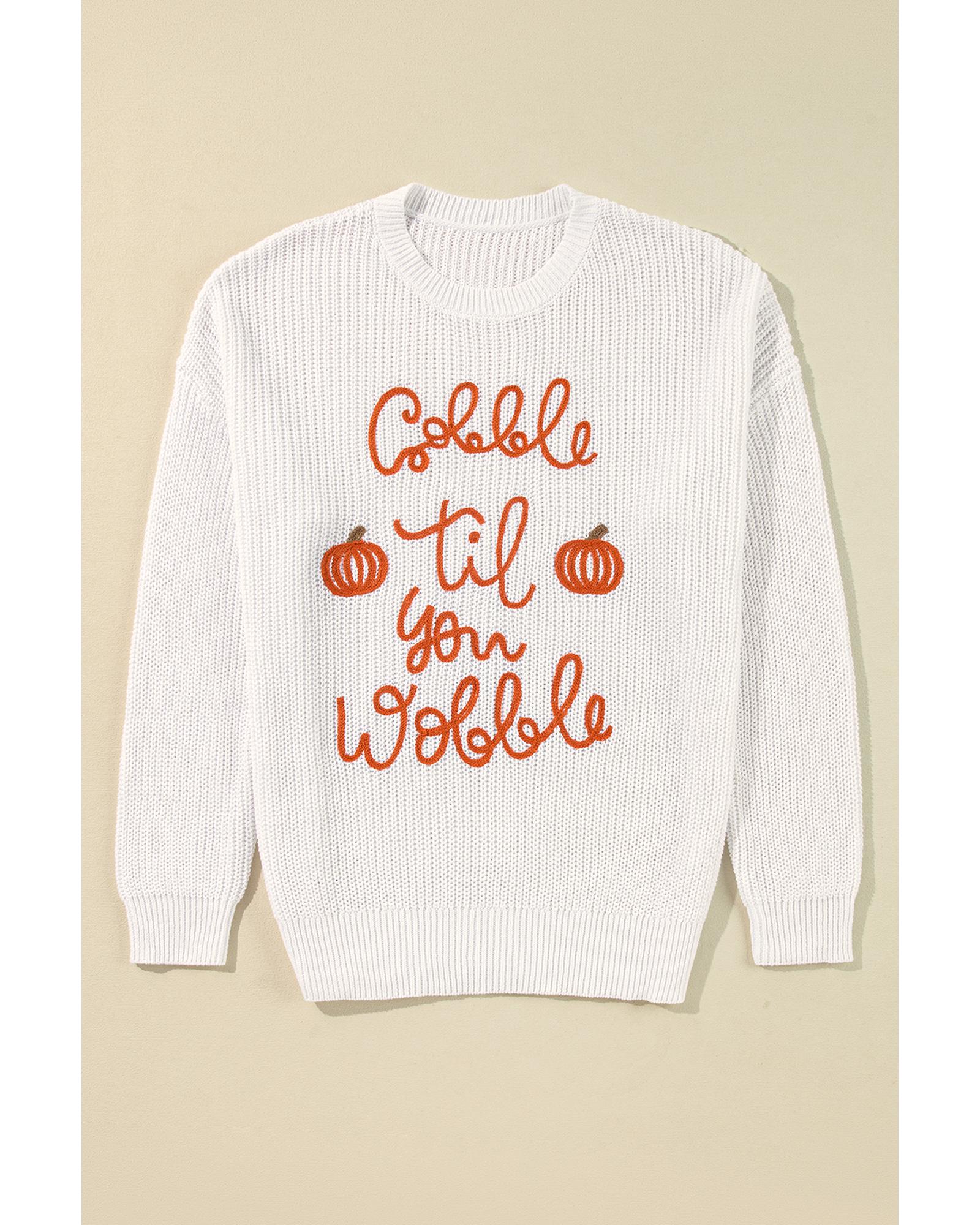 White Gobble Til You Wobble Pop Up Crochet Plus Size Sweater – 1X
